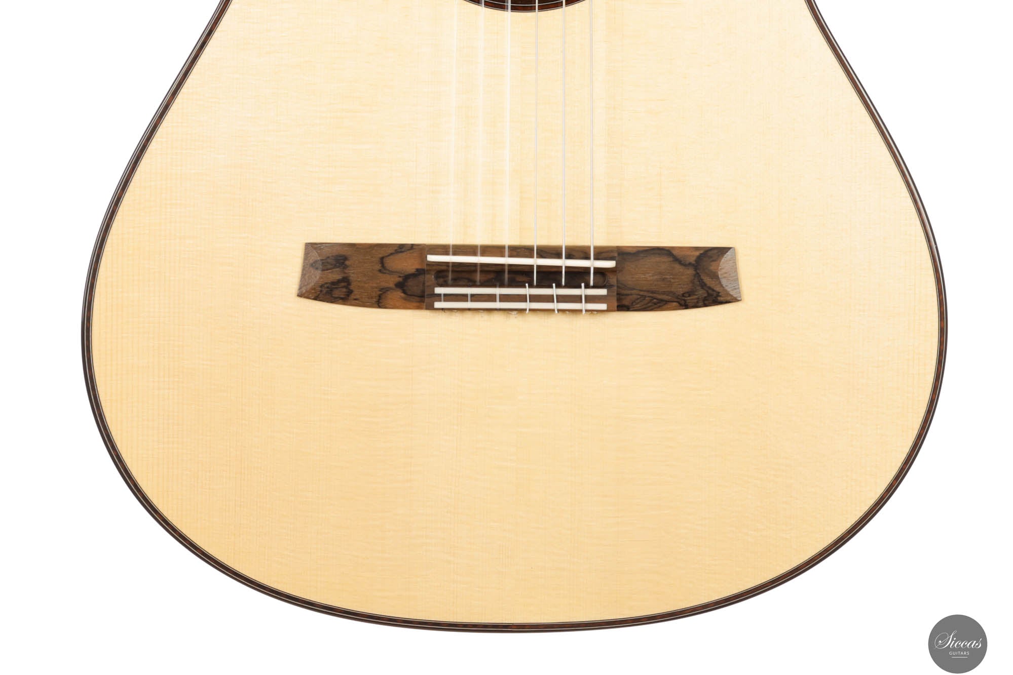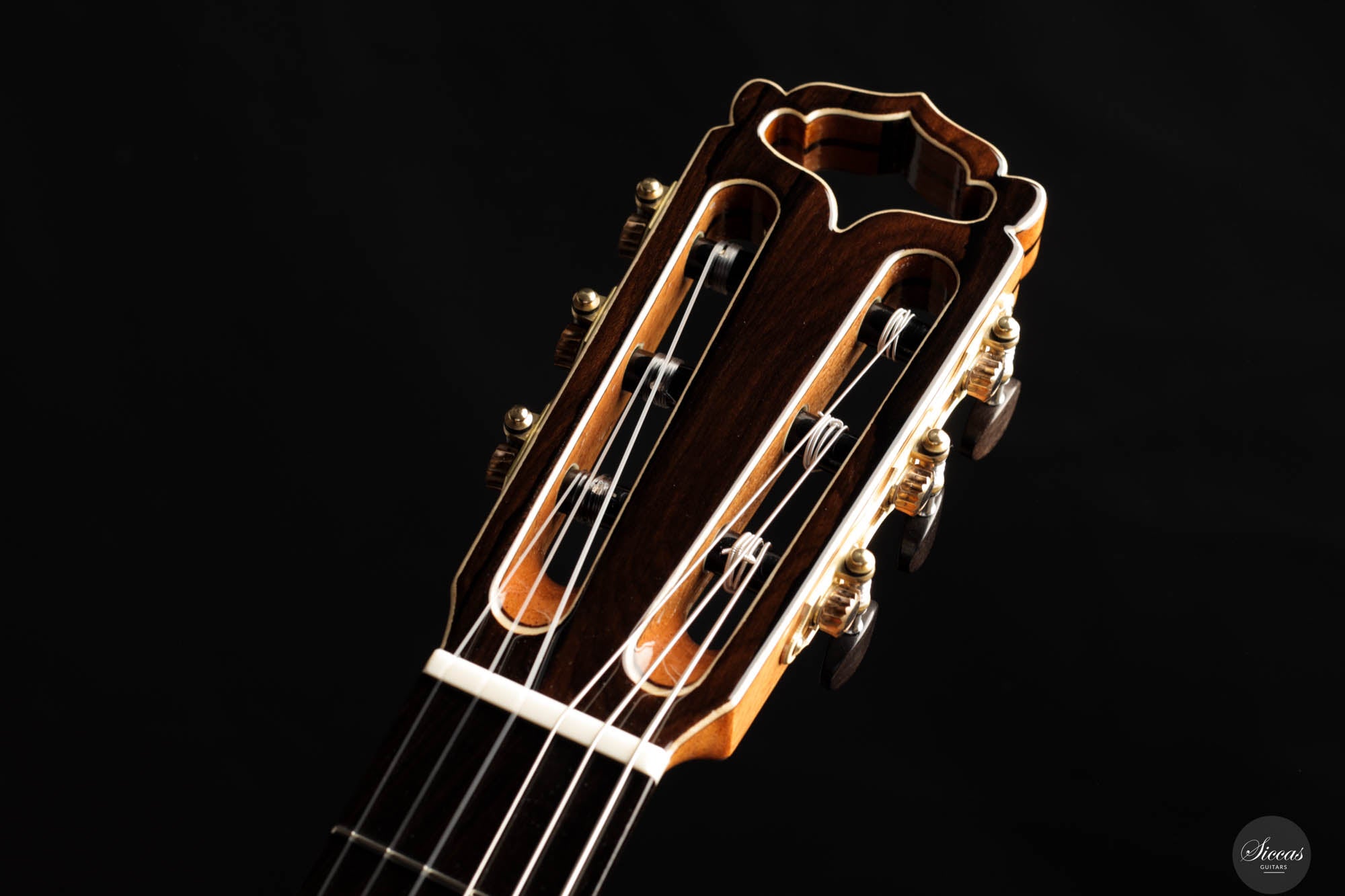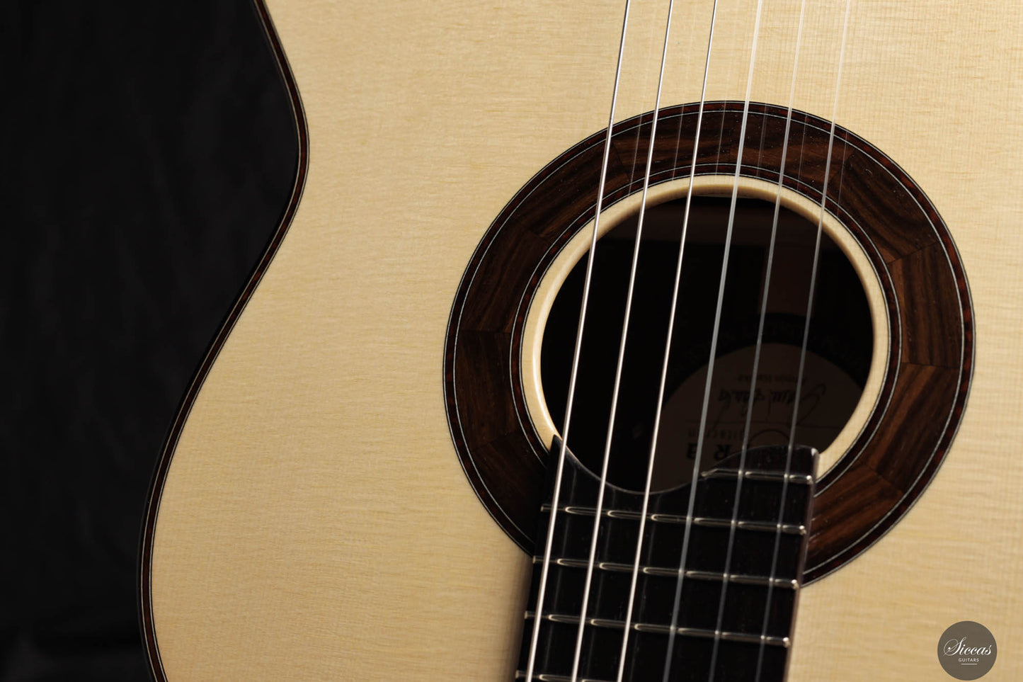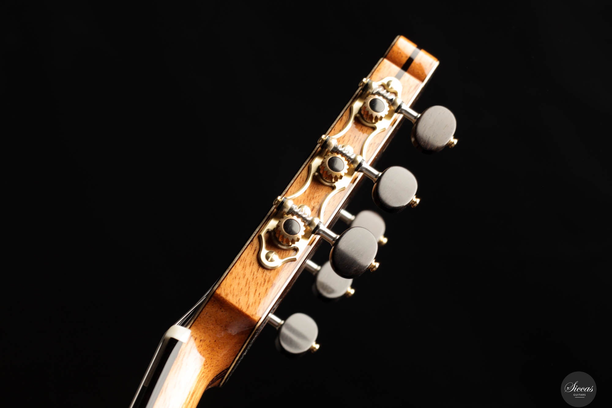 Be mindful when touching your instrument with greasy or unwashed hands: any skin contact is a small attack on the varnish. Of course, a guitar is made to be played, but taking a few precautions helps preserve its beauty: wash your hands before playing, wear long sleeves, and avoid unnecessary direct skin contact with the body of the instrument.