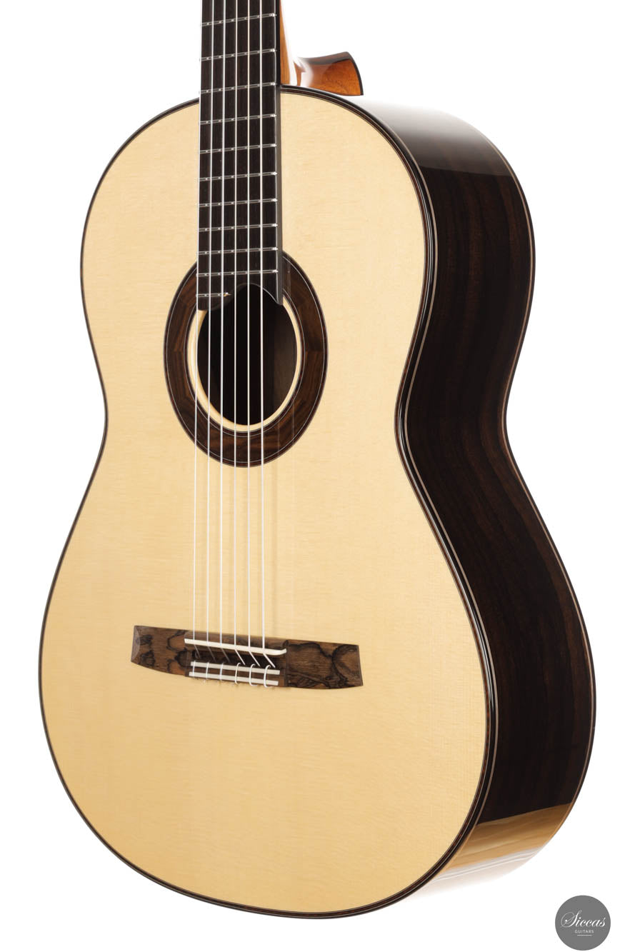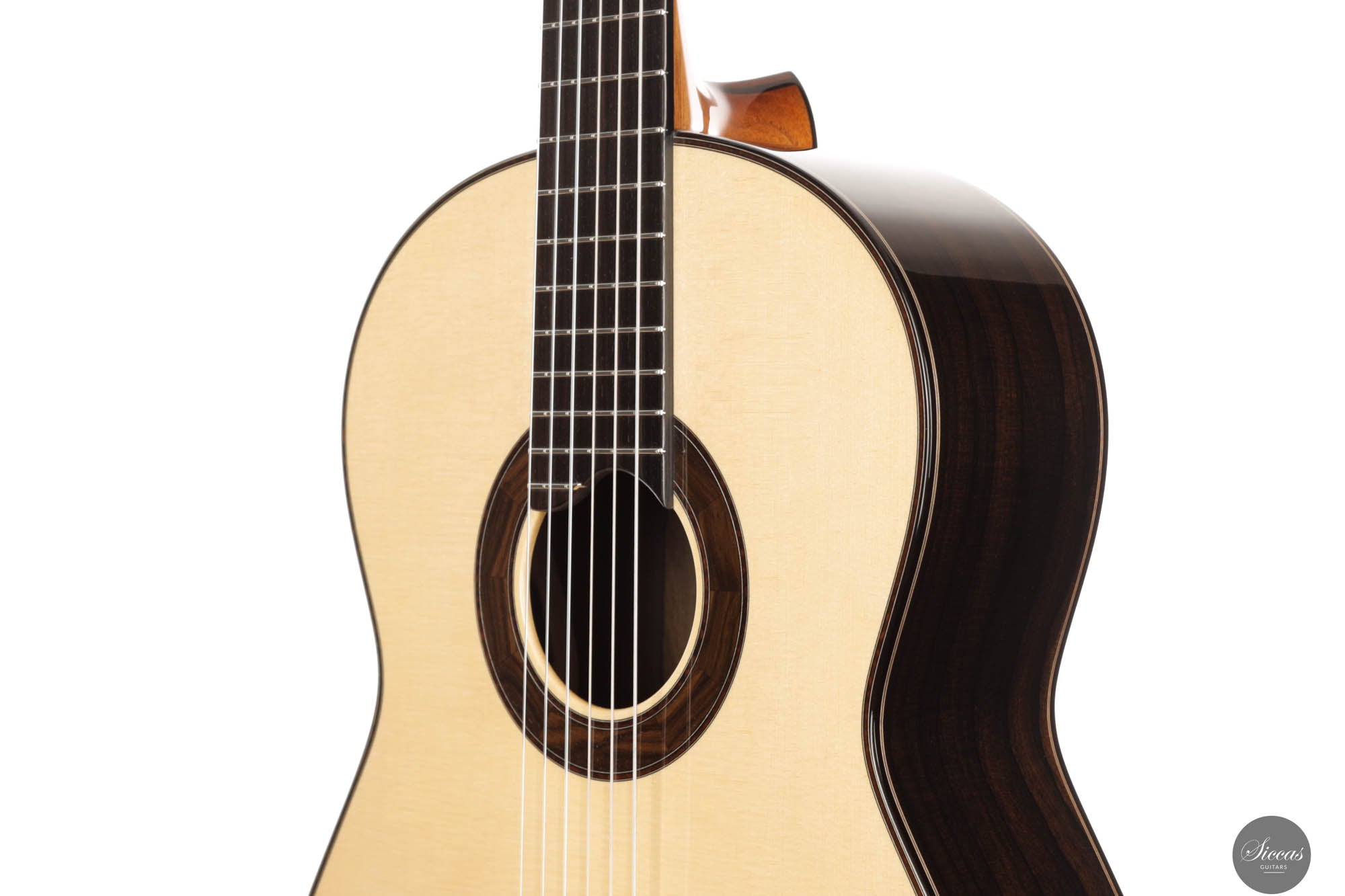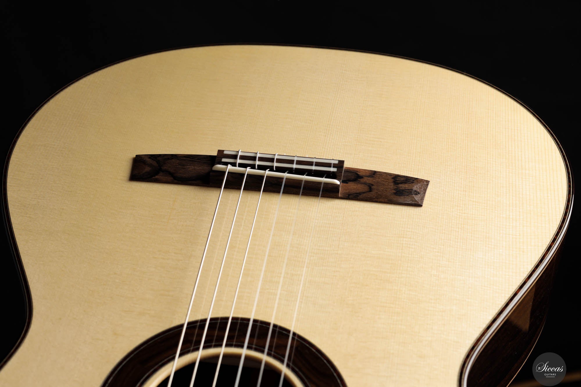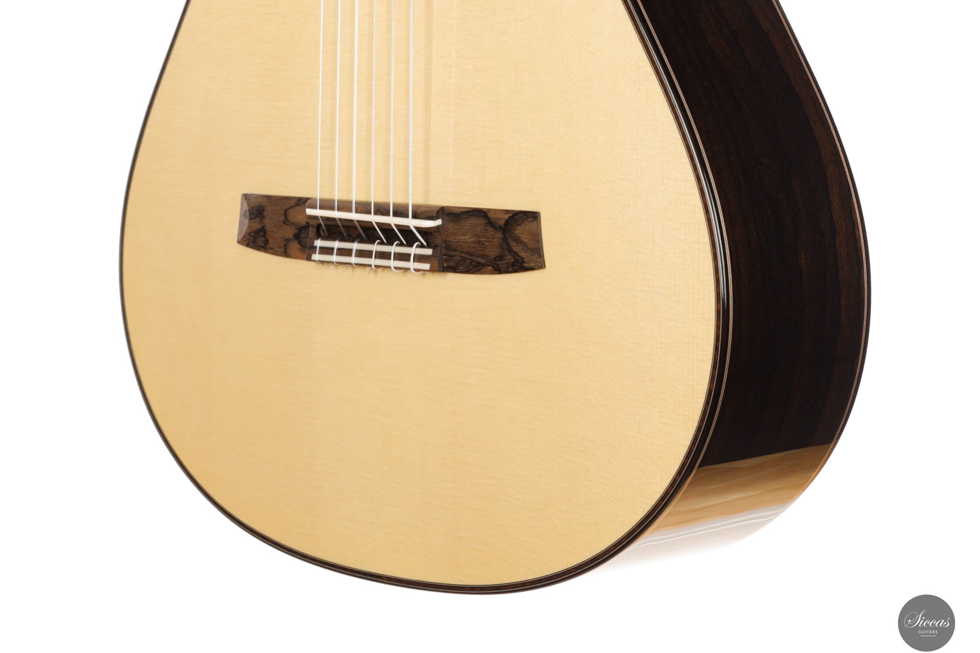 Be mindful when touching your instrument with greasy or unwashed hands: any skin contact is a small attack on the varnish. Of course, a guitar is made to be played, but taking a few precautions helps preserve its beauty: wash your hands before playing, wear long sleeves, and avoid unnecessary direct skin contact with the body of the instrument.