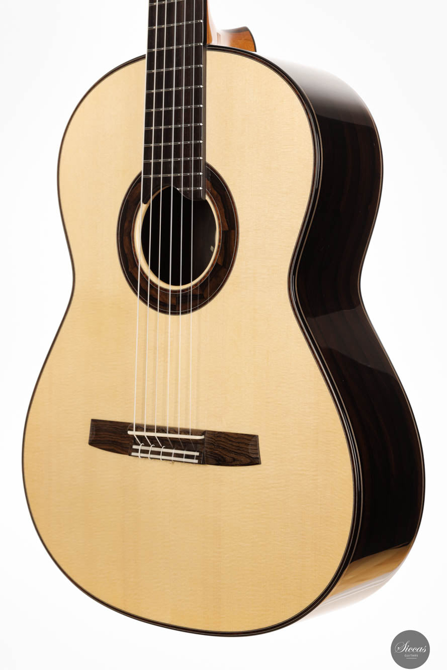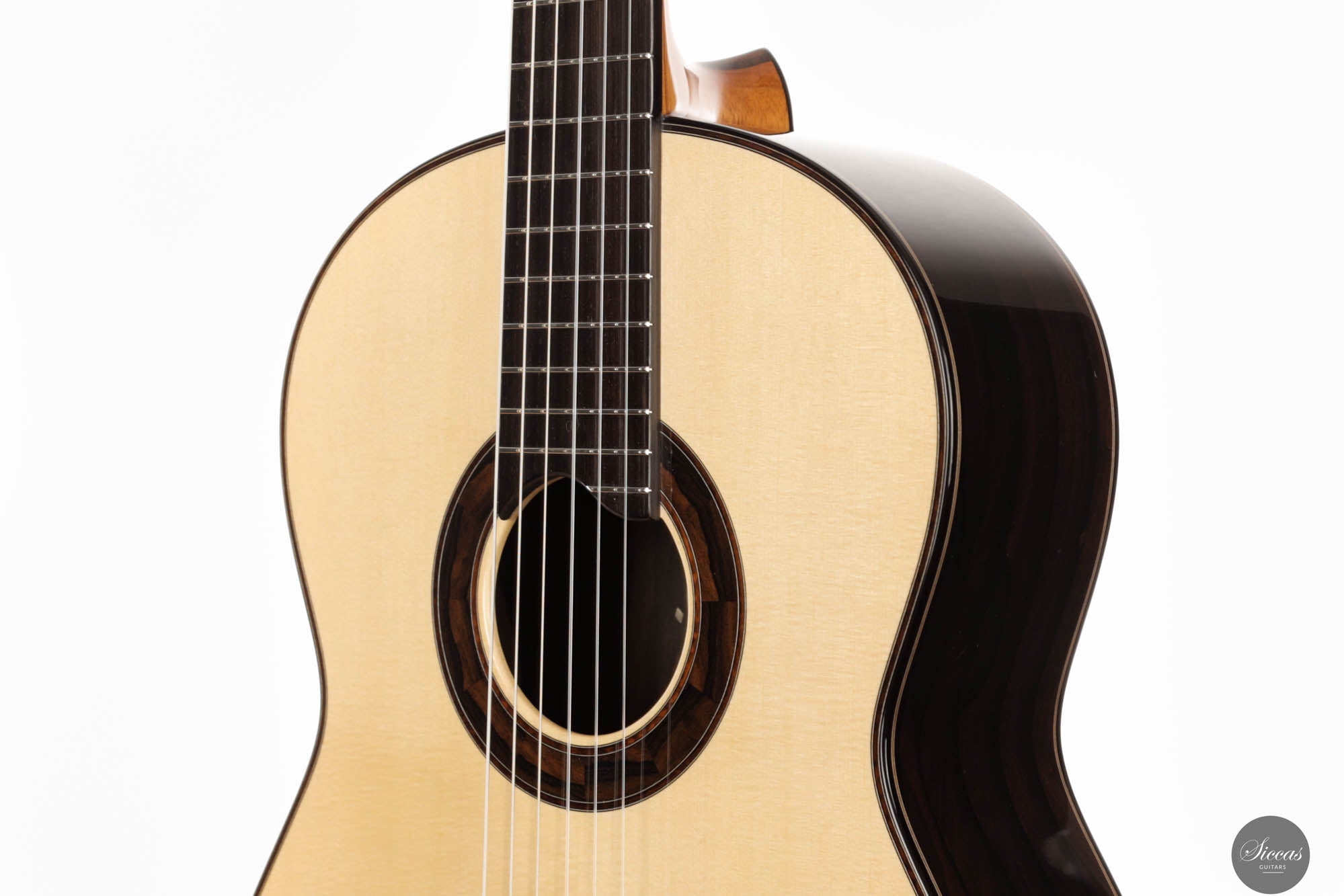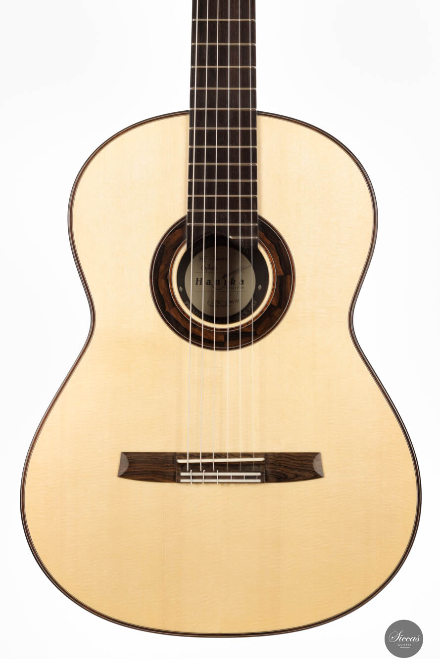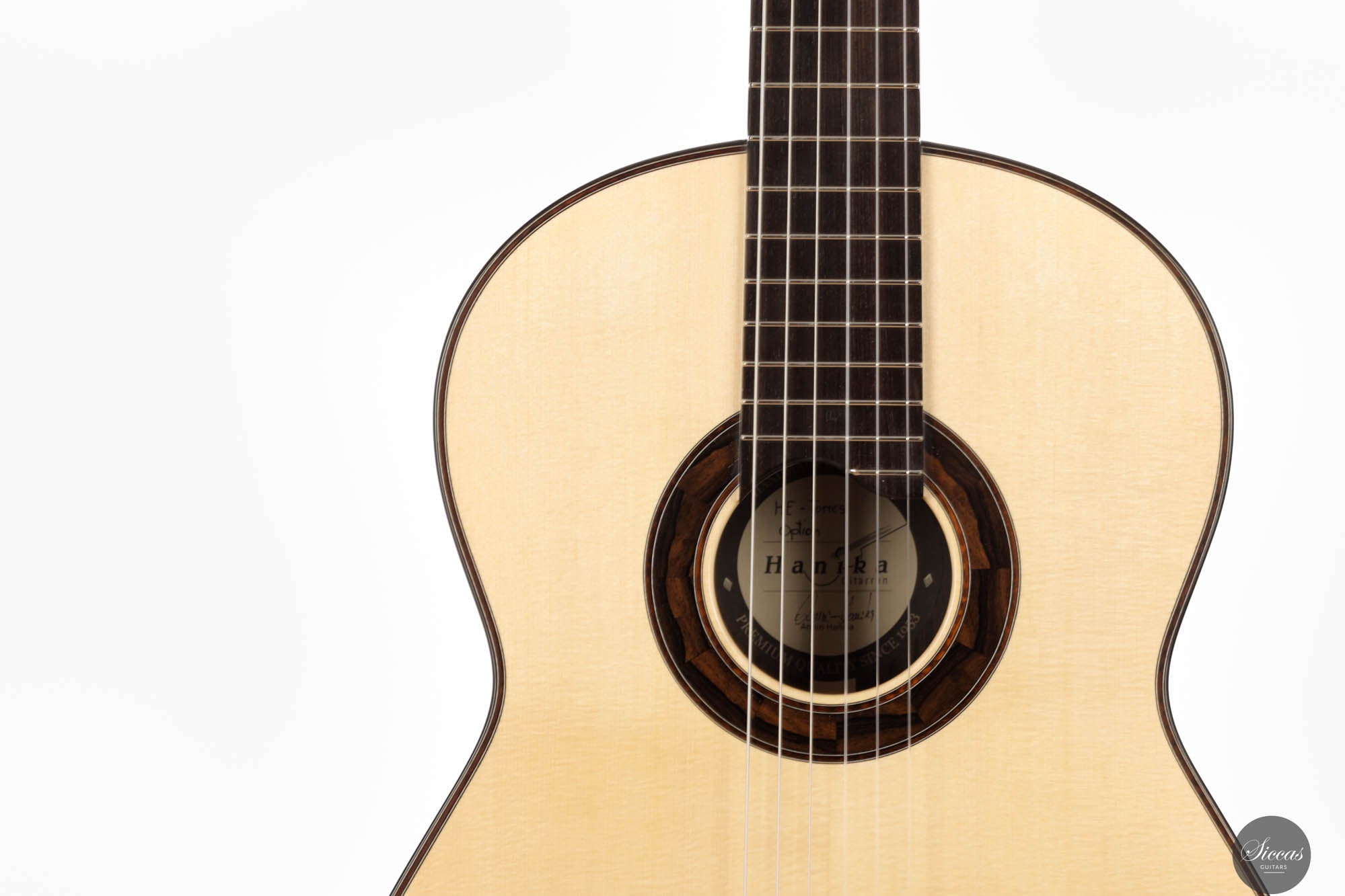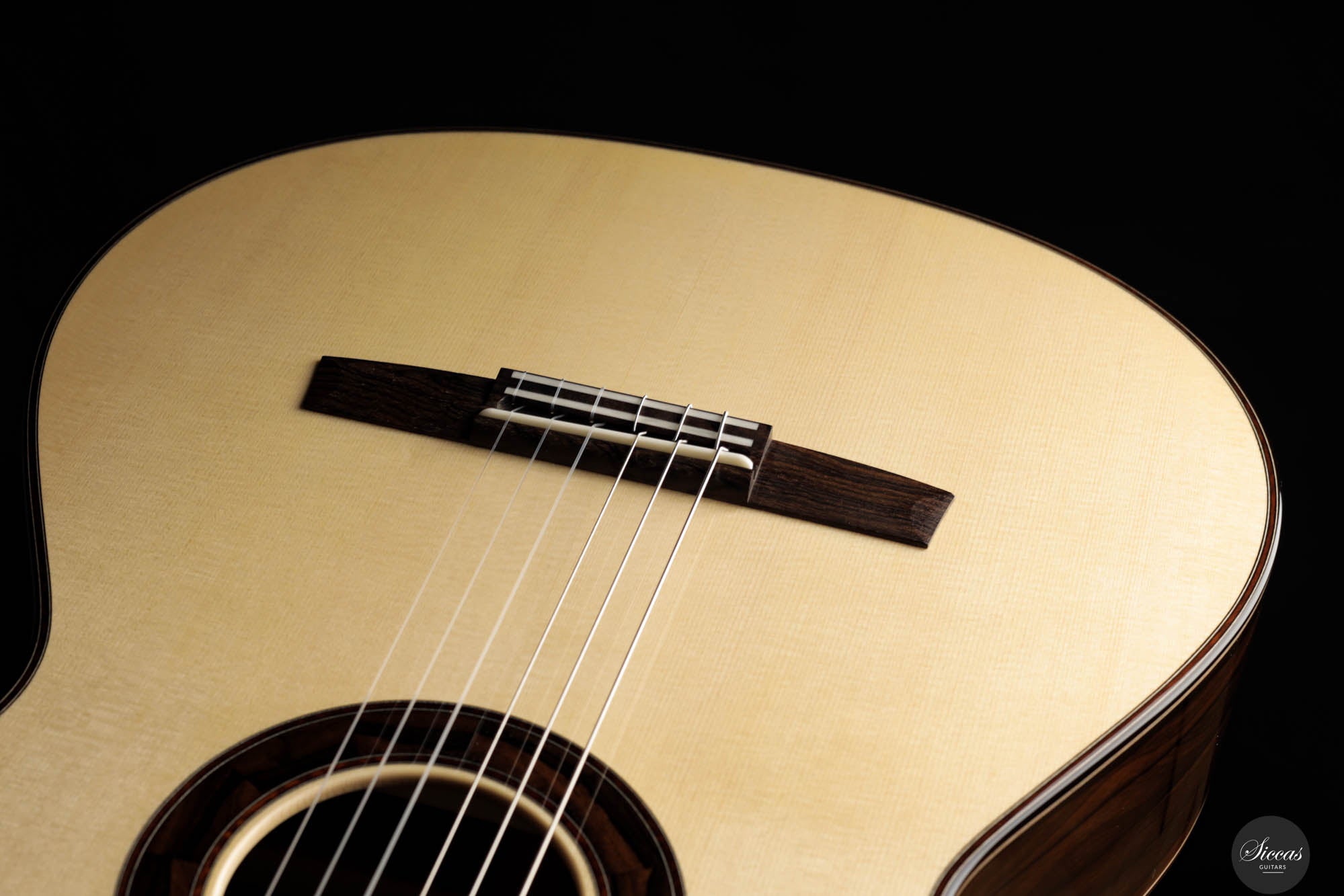 Be mindful when touching your instrument with greasy or unwashed hands: any skin contact is a small attack on the varnish. Of course, a guitar is made to be played, but taking a few precautions helps preserve its beauty: wash your hands before playing, wear long sleeves, and avoid unnecessary direct skin contact with the body of the instrument.