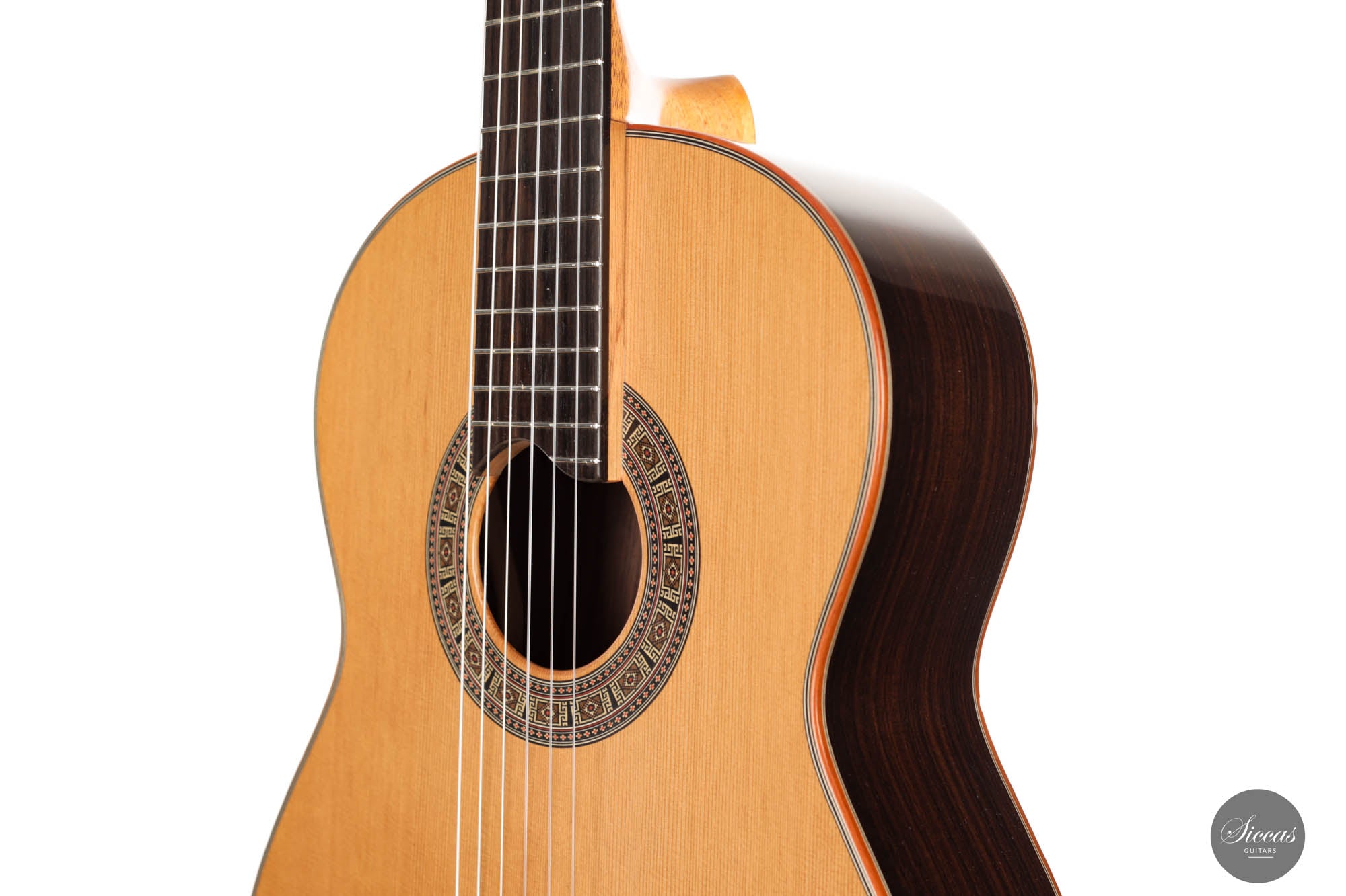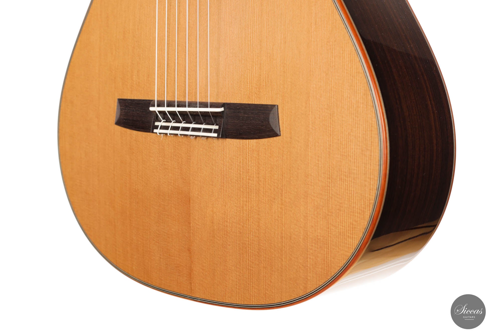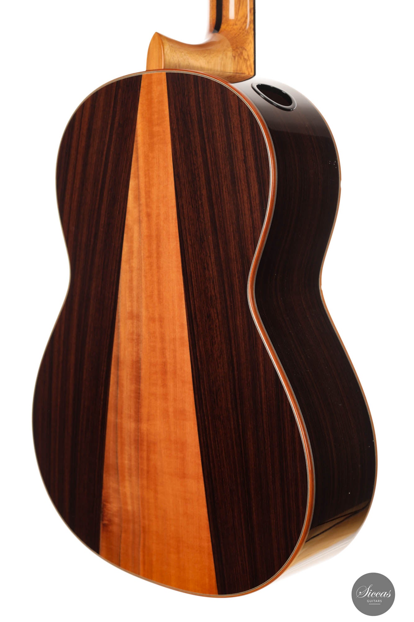 With a top made of solid cedar and a 3-part back made of rosewood, Tineo, and rosewood, this guitar offers an impressive aesthetic presence. The rosewood sides and Grenadil fretboard blend seamlessly into the design, while the C-1 neck profile ensures comfort and playability.