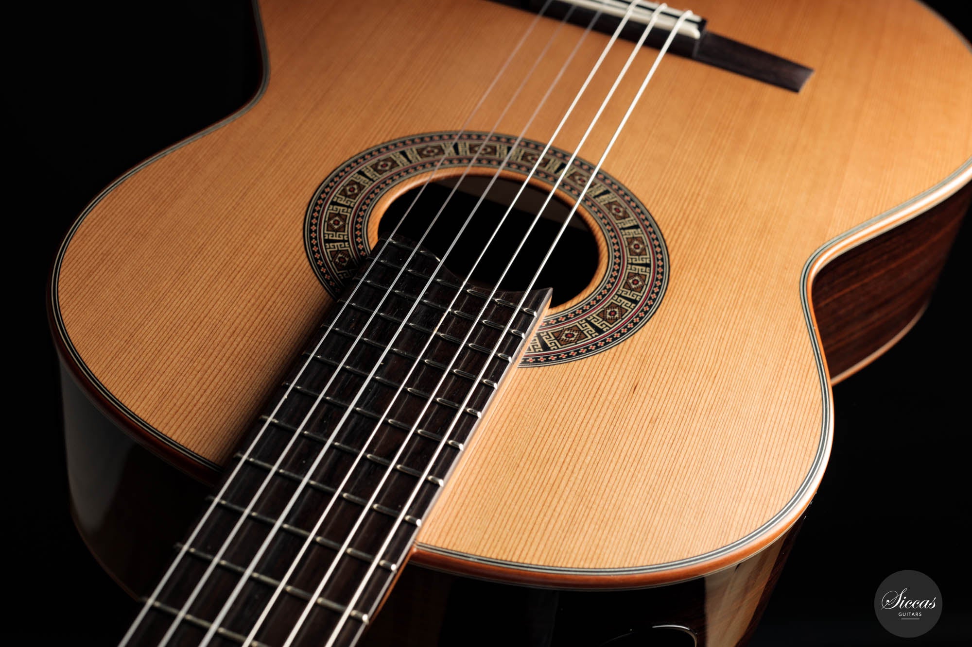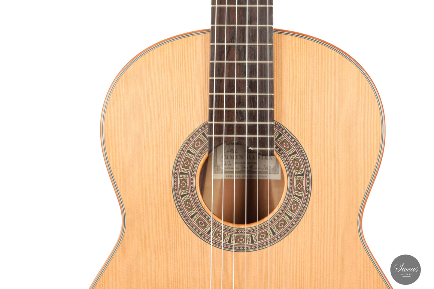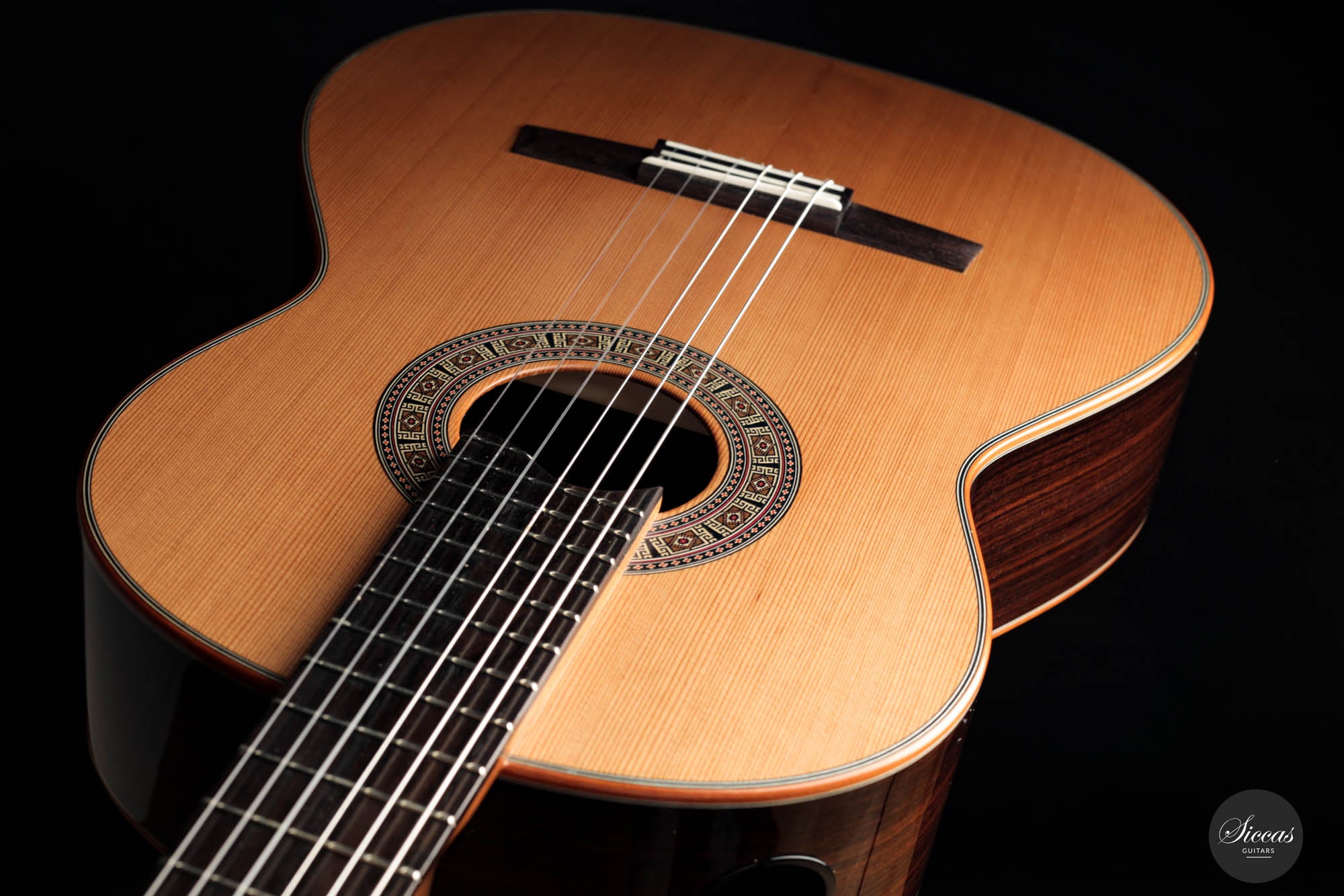 With a top made of solid cedar and a 3-part back made of rosewood, Tineo, and rosewood, this guitar offers an impressive aesthetic presence. The rosewood sides and Grenadil fretboard blend seamlessly into the design, while the C-1 neck profile ensures comfort and playability.