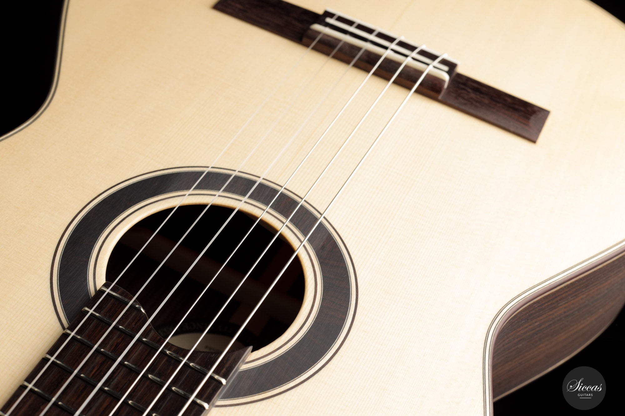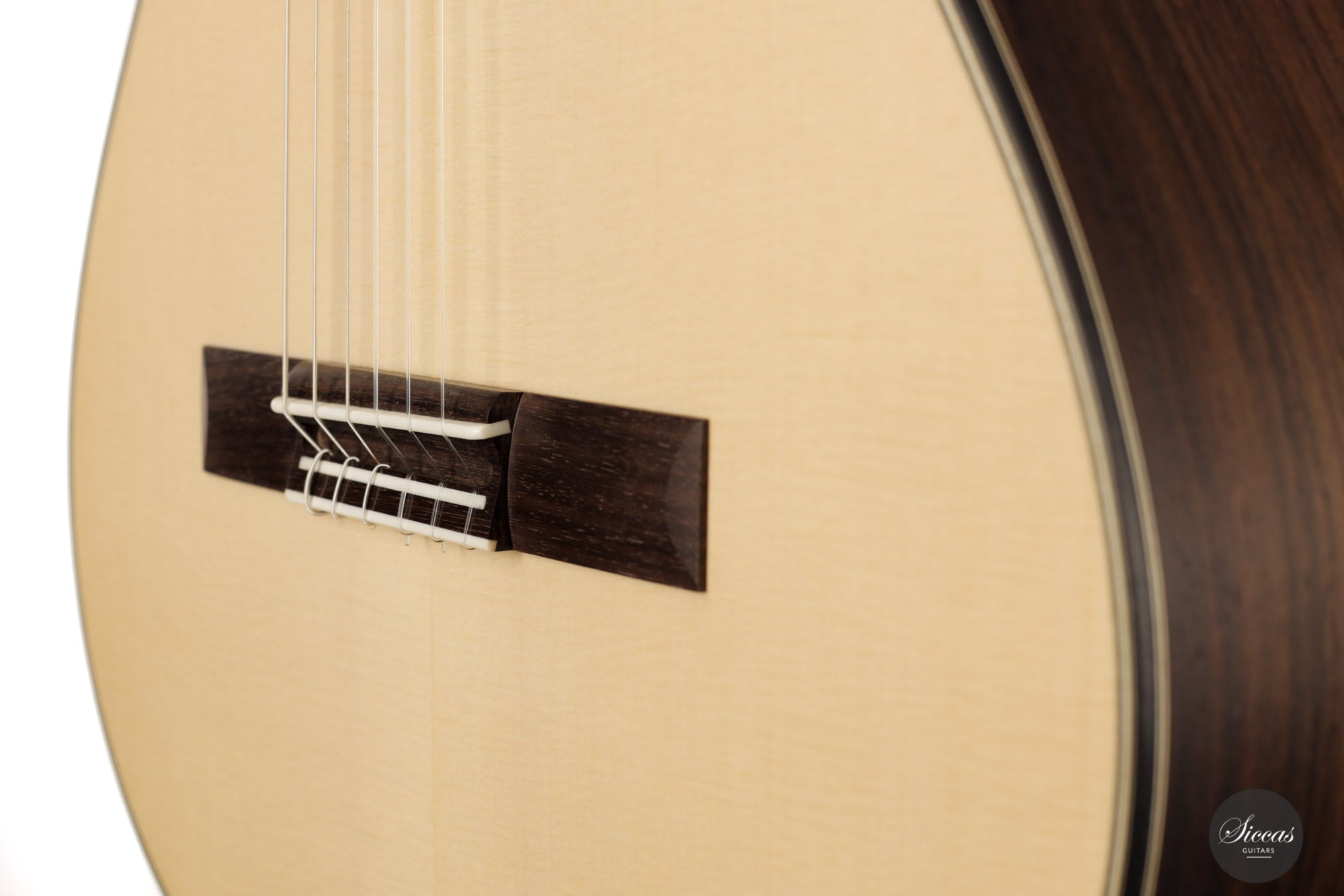 Back and sides of this guitar are made of high quality East Indian rosewood and the top is made of excellent spruce. Rosewood is considered one of the most universal tone woods for guitars, along with the thin spruce top the Natural PF gets a very good attack with full sound and a separated sharp sound. Response and sustain in of this guitar are perfectly balanced, what makes it the perfect instrument for many different type of players. Special feature of this guitar is the HANIKA "NATURAL" surface. This very thin varnish/wax sealing makes the surface more resistant to typical playing loads and yet the thin sealing creates a particularly open and transparent sound.
