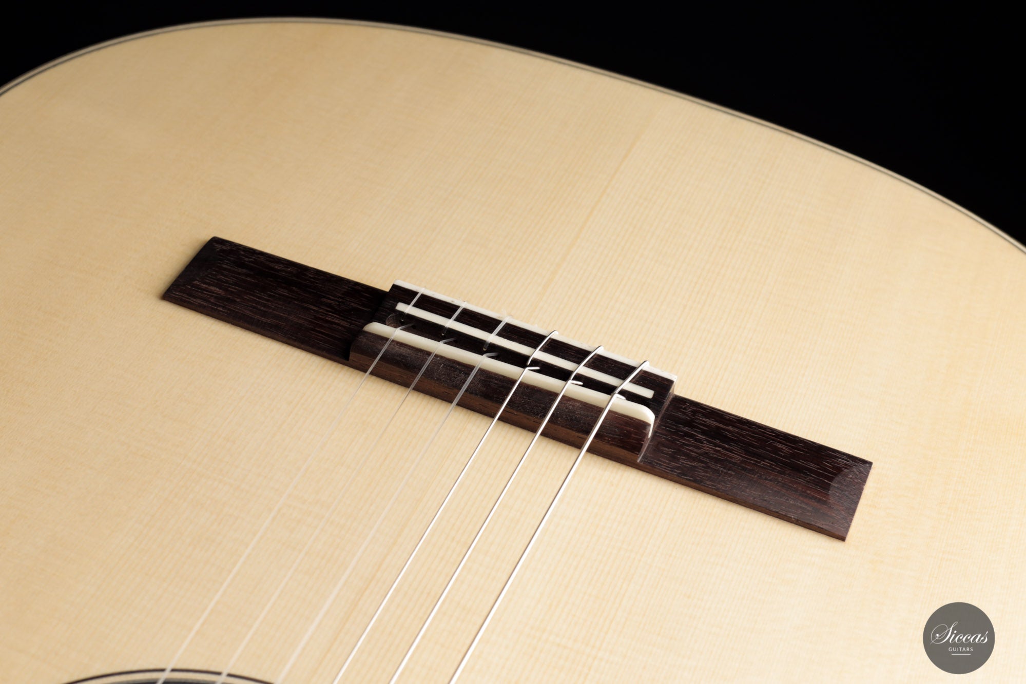 For almost five years now, HANIKA has offered a model in each of its quality classes that is built exclusively from domestic woods (partly thermo-modified). In contrast to tropical woods, domestic woods have the advantage of short transport routes, better utilisation of the raw material and come almost exclusively from certified forests. That is why Hanika has built a test batch of the very popular model "Hanika Natural-PF" with six different neck variations - made of thermo spruce, thermo maple, thermo alder, thermo birch, thermo cherry and, as before, cedro. Everything else, especially the neck reinforcement and the fingerboard, is identical to the standard model. This guitar has a thermo spruce (Picea abies) neck.