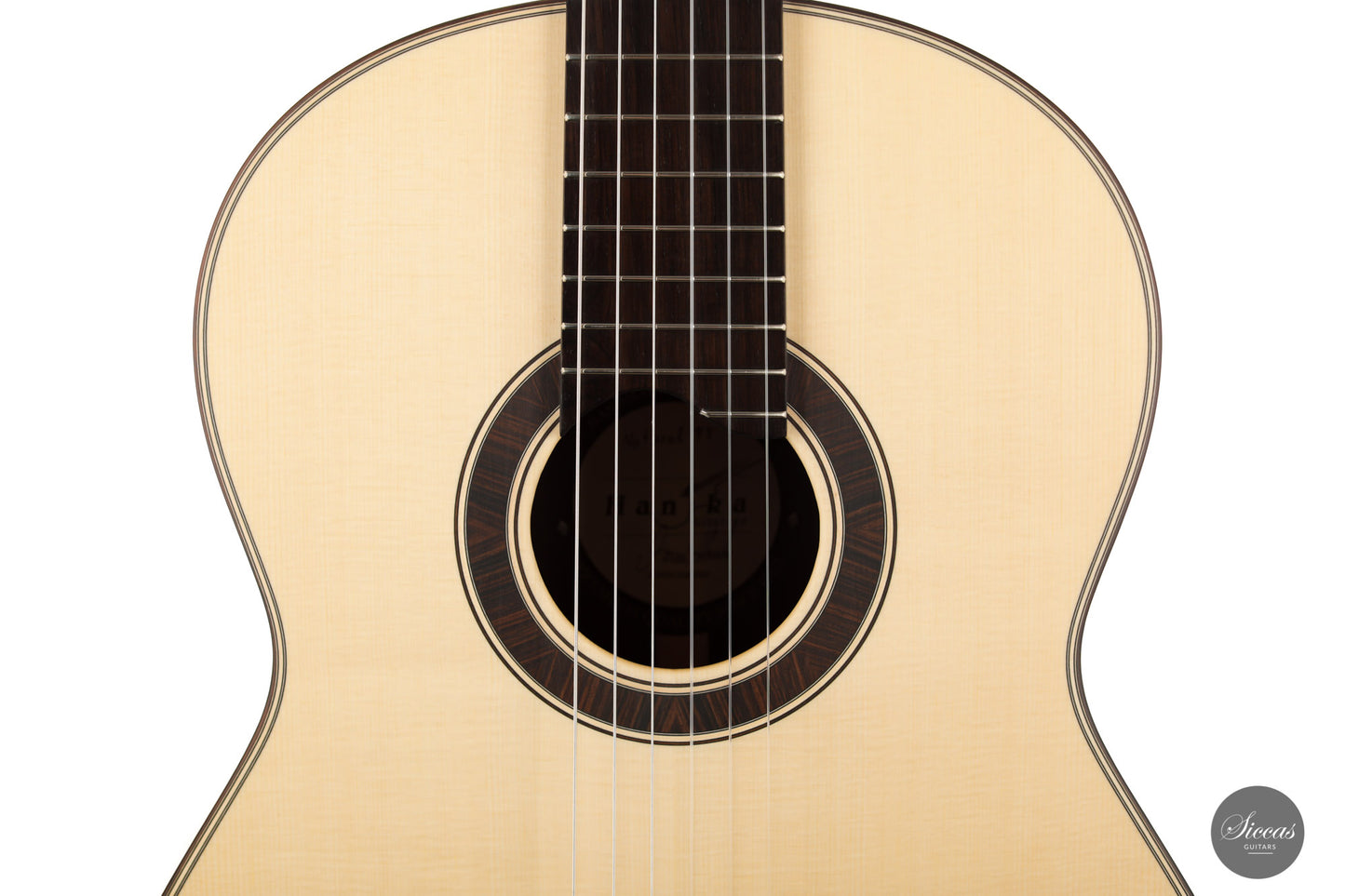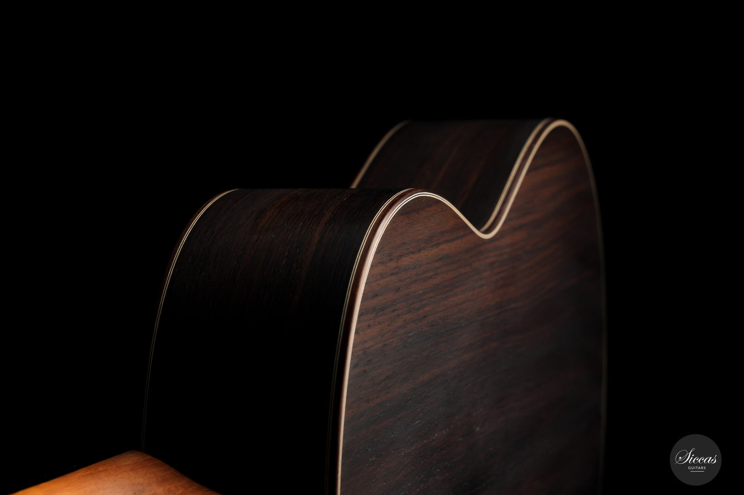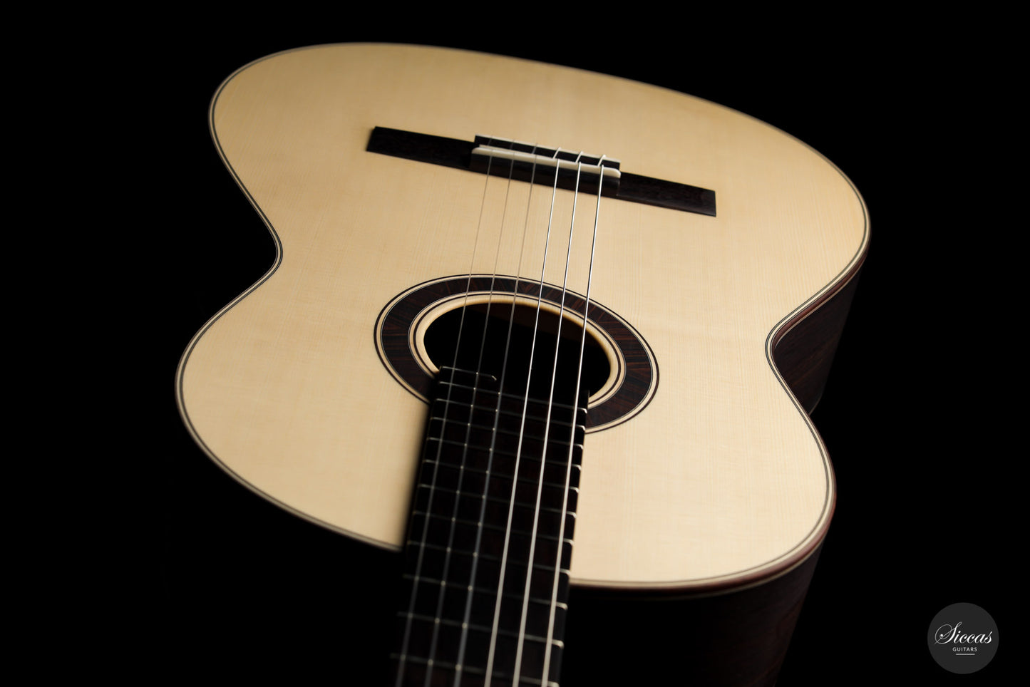 Be mindful when touching your instrument with greasy or unwashed hands: any skin contact is a small attack on the varnish. Of course, a guitar is made to be played, but taking a few precautions helps preserve its beauty: wash your hands before playing, wear long sleeves, and avoid unnecessary direct skin contact with the body of the instrument.
