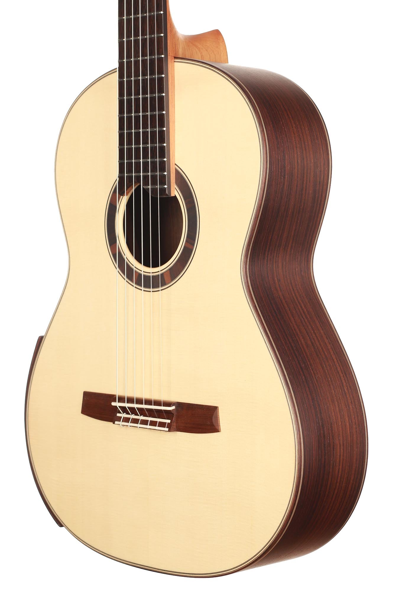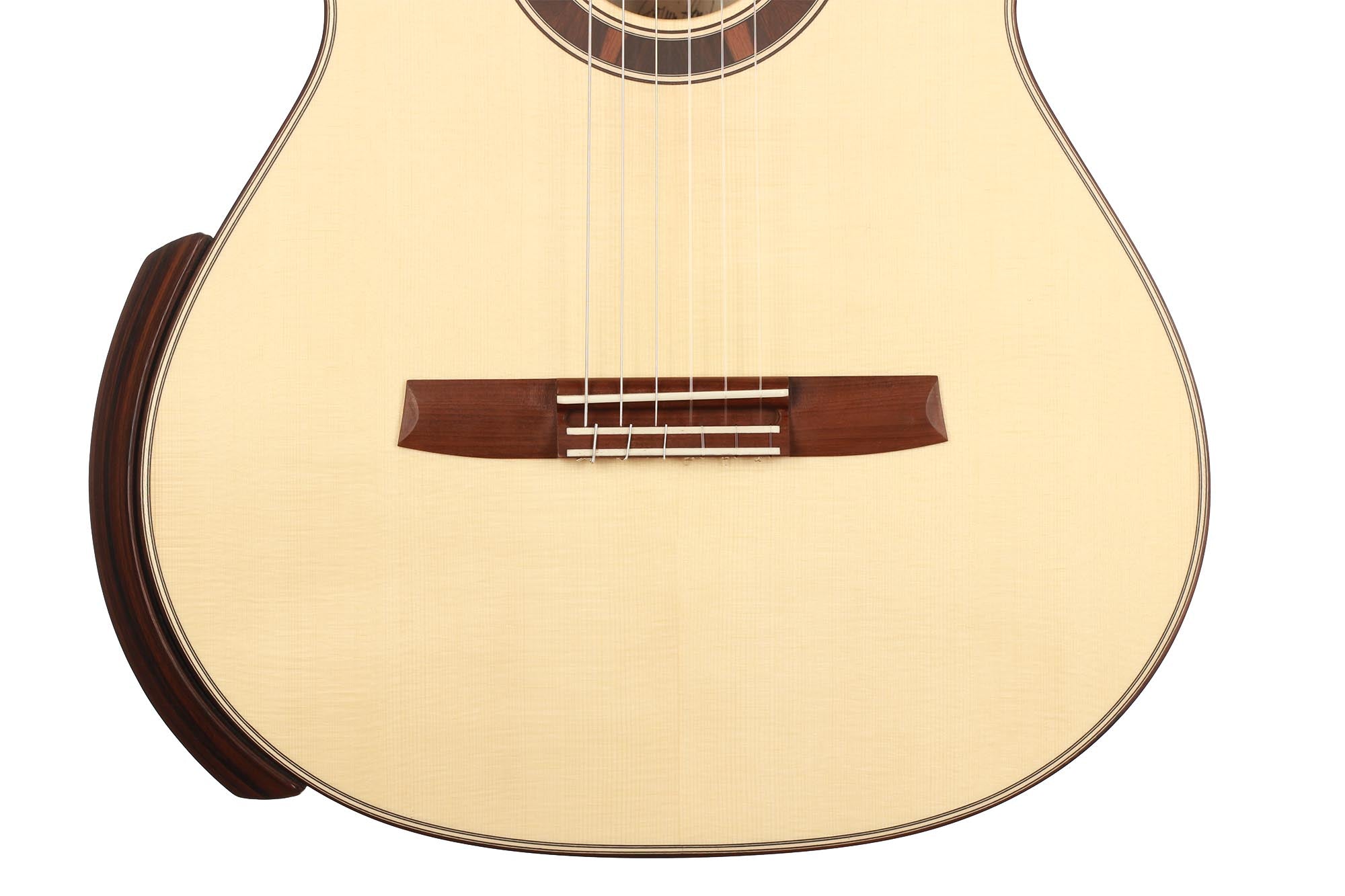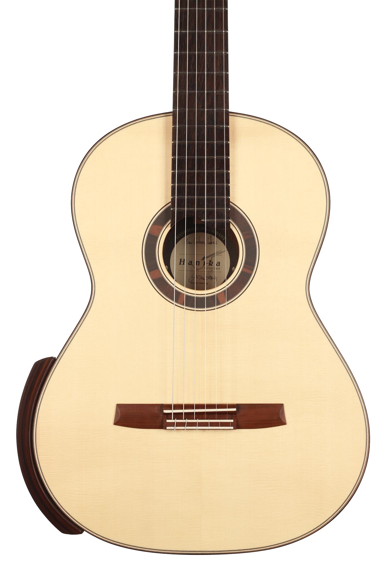At HANIKA craftsmanship is understood as custom work and sound as art. A guitar from the famous Baiersdorf manufacture is a symbol of quality and craftsmanship tradition. Since 1953 it has been the basis for the success story of the company, combined with trend-setting innovations. Master plucked instrument maker Armin Hanika took over the company from his father in 1993 and has been building classical guitars of outstanding quality ever since. This “New Century Lattice” Model is the latest innovation from Armin Hanika’s workshop. It features all the elements of a modern concert guitar: an elevated fingerboard to improve the access to higher ranges, an extra sound port on the side for better sound control, a light lattice bracing for a very reactive and balanced tone, and eventually a nice wax finish for an easy care. This guitar offers excellent dynamics and a substantial sound produces a crisp, brilliant sound and has a good response. The materials used for this classical guitar and the sound definitely meet the highest demands. A Hiscox Pro II case is included. The photos of this guitar are general product images that may differ from the actual instrument.