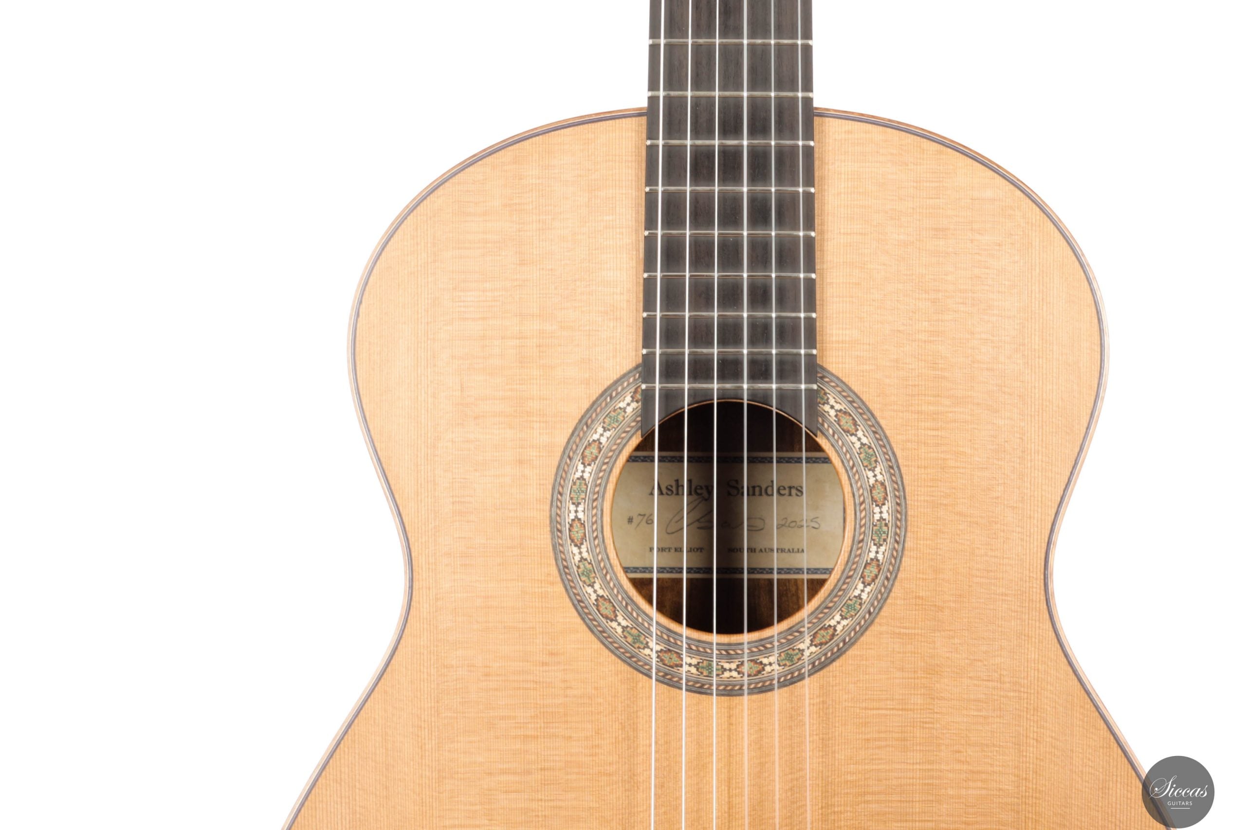 Ashley Sanders is a South Australia–based luthier who has been building guitars for over two decades. Originally trained as a cabinet maker, he crafted custom furniture for antique dealers and interior designers, a background that strongly informs his refined woodworking. Early in his guitar-making journey, he was invited into the classical world by an Adelaide luthier who recognized the quality of his craftsmanship and offered guidance.
