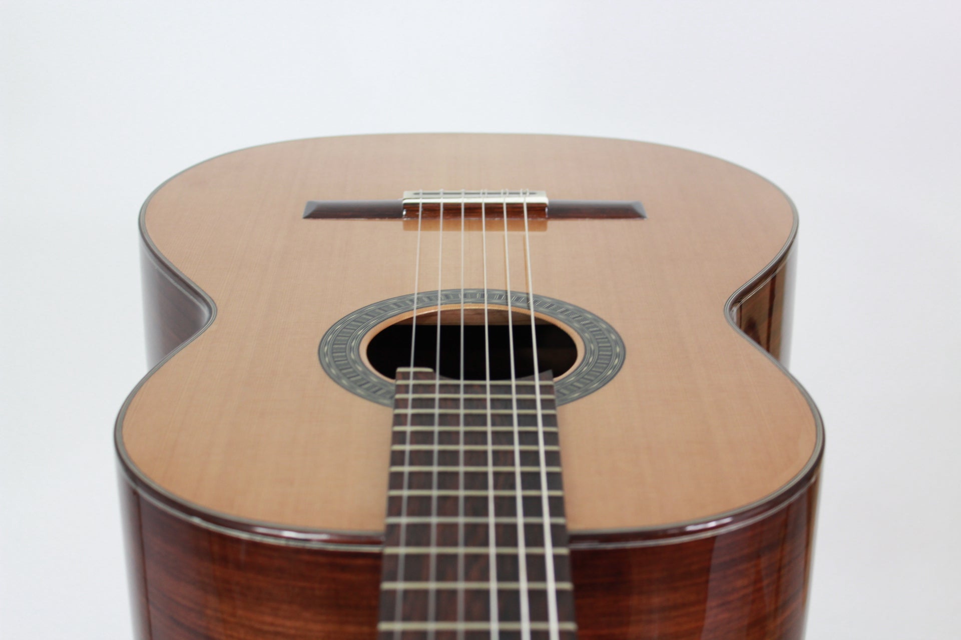 Price: $7,070Sale price $7,070 Price:Unit price / per Tax free (0% BM)$0Save: $-7,070Luthier: Elvis PajaresConstruction Year: 2025Construction Type: Double TopTop: CedarBack and Sides: Indian rosewoodSoundboard Finish: French polishBody Finish: French polishAir Body Frequency: F / F sharpWeight (g): 1415Tuner: Kris BarnettCondition: New -