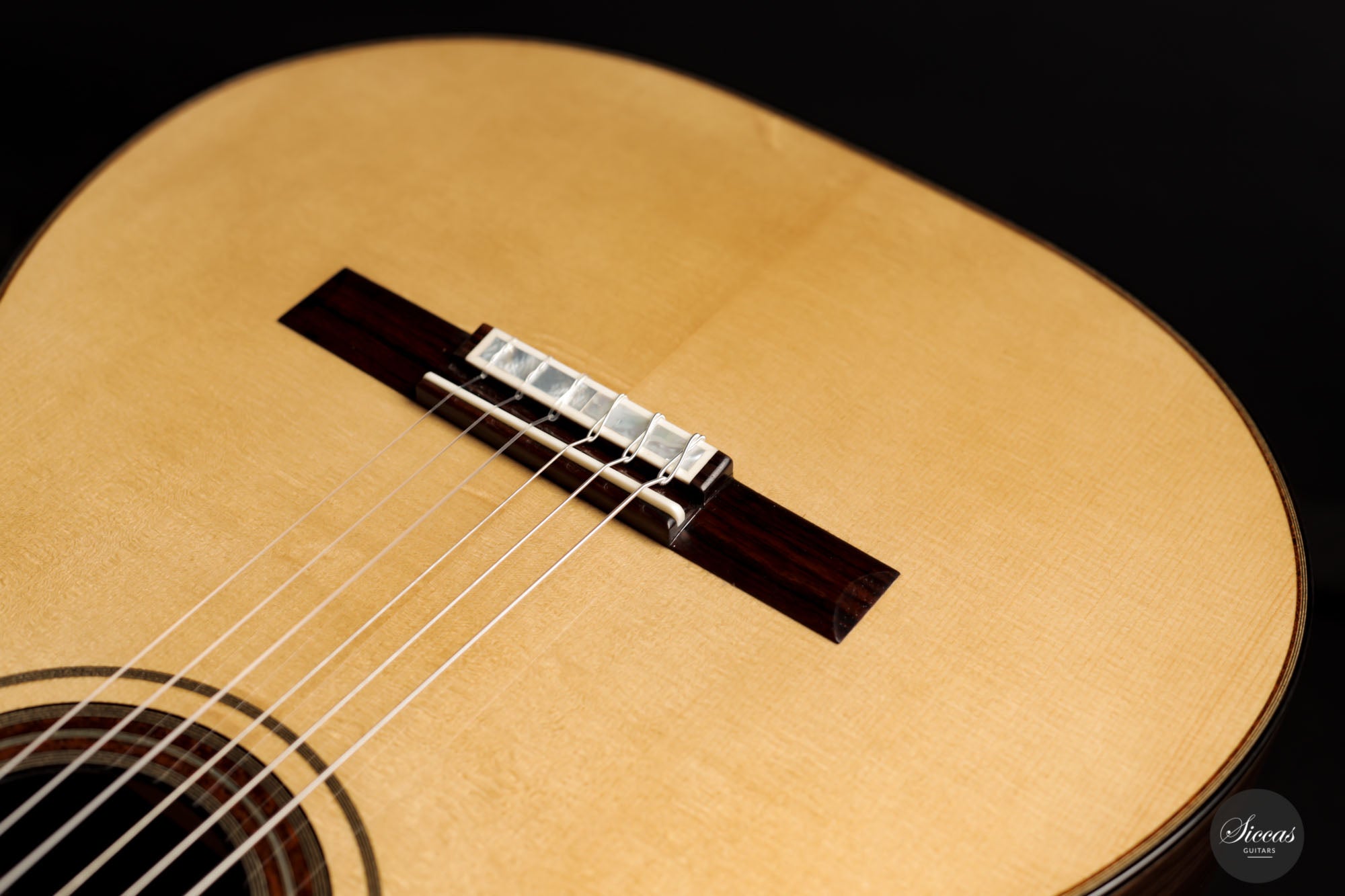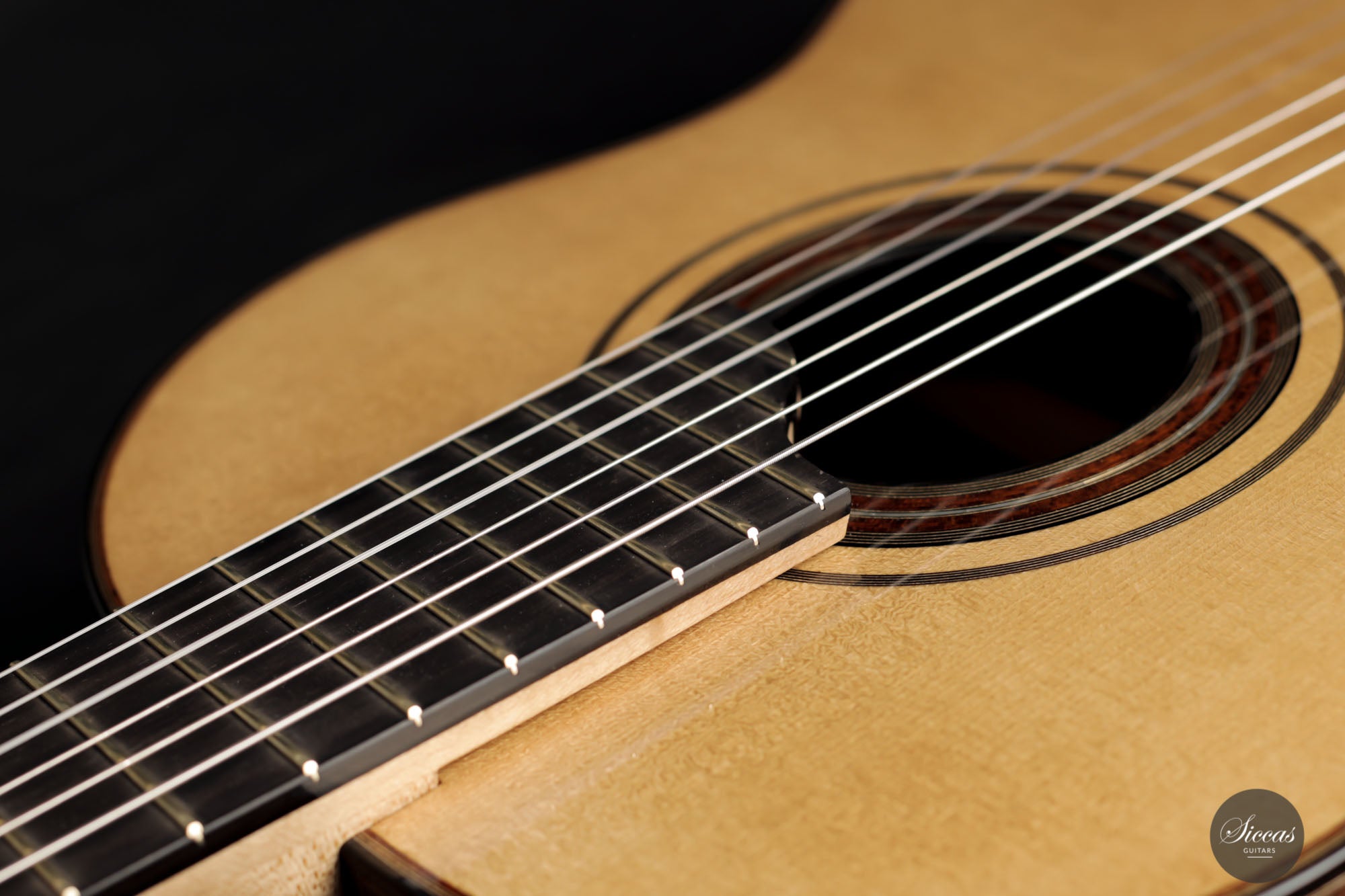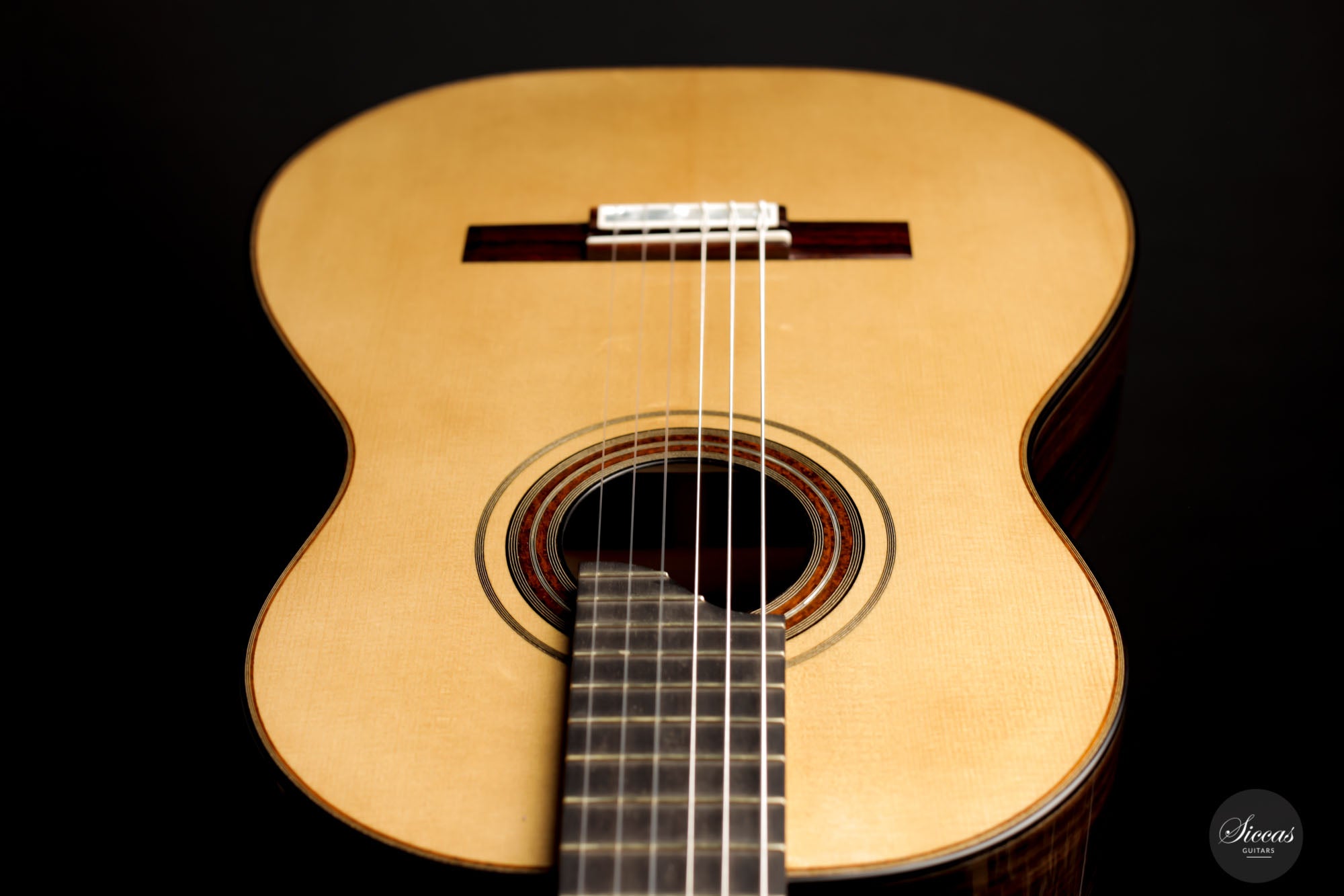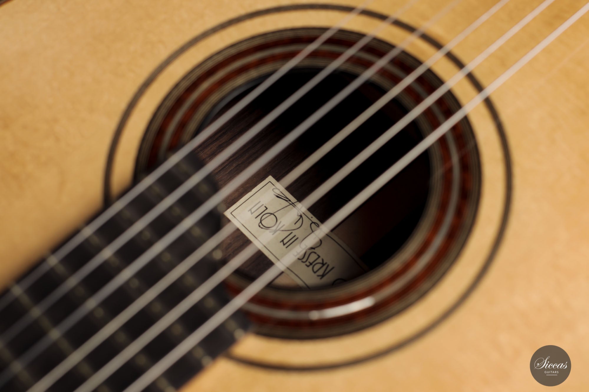 Our fascination for this guitar also applies to its sound. The very clear and easy to modulate tone has an elegant charm, with a notorious power and projection. The impressive ease of playing and the pure transparency of the tone in the trebles make this guitar a highly mesmerizing instrument. In summary, it is a true gem from one of the most experienced luthiers in Germany.