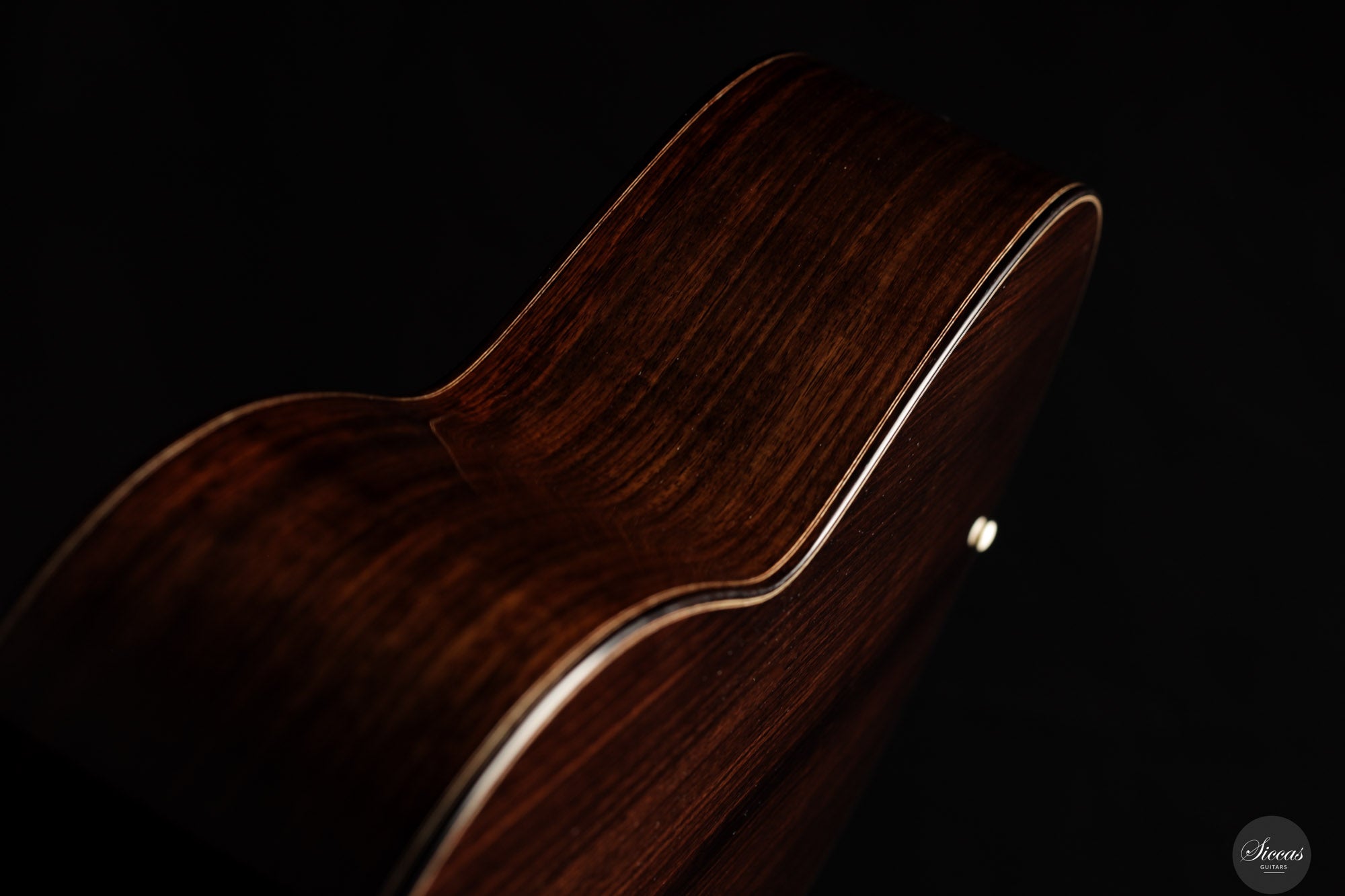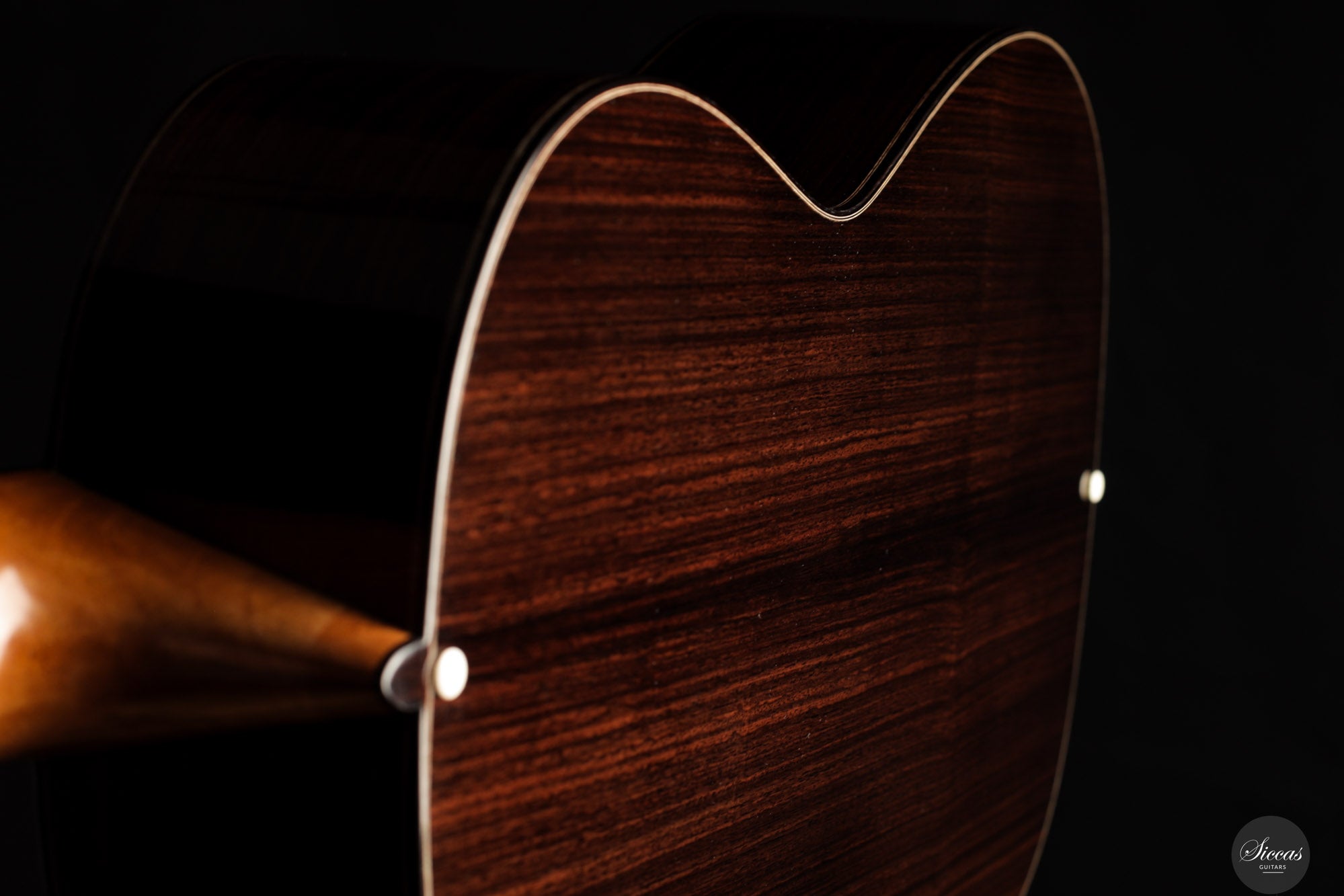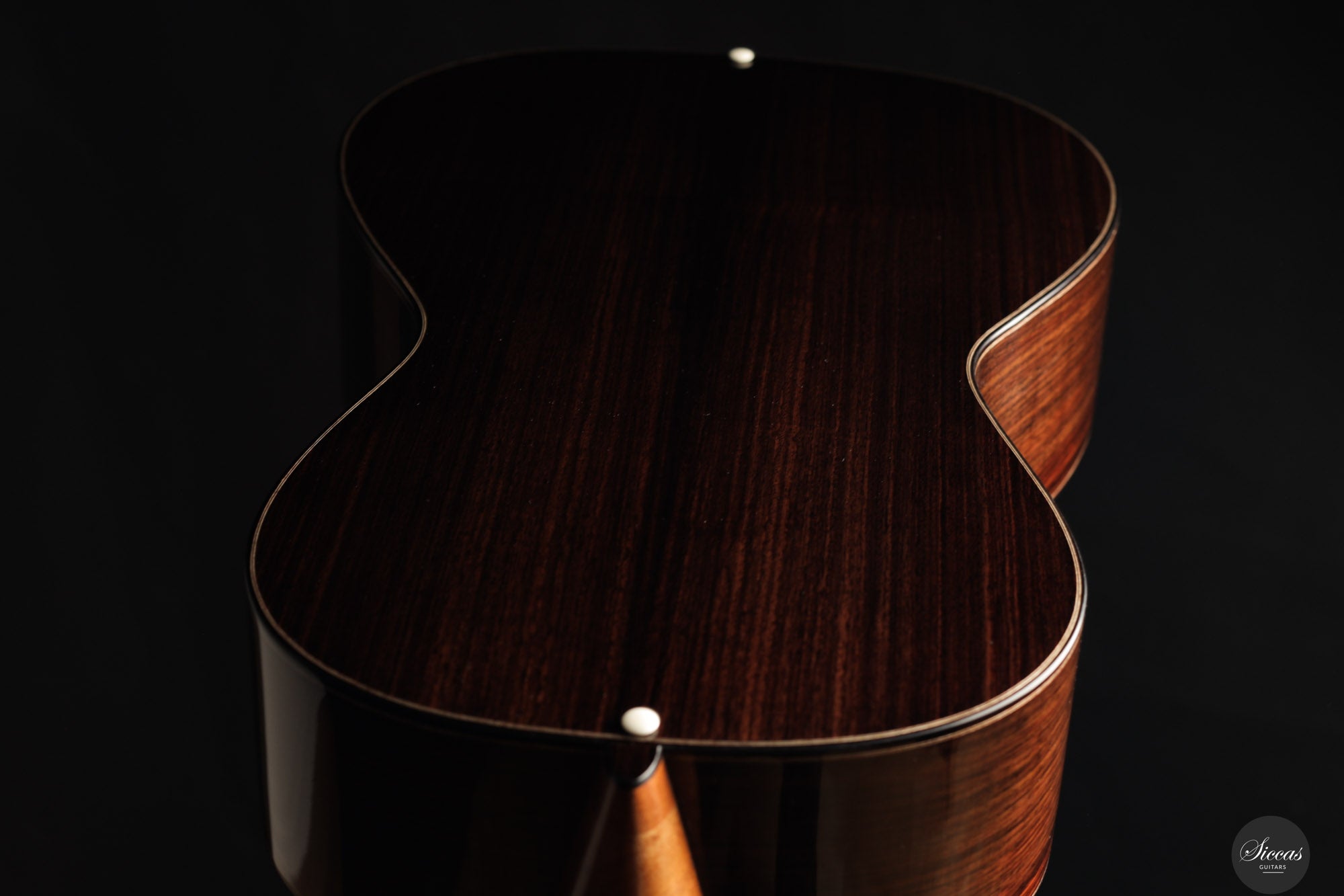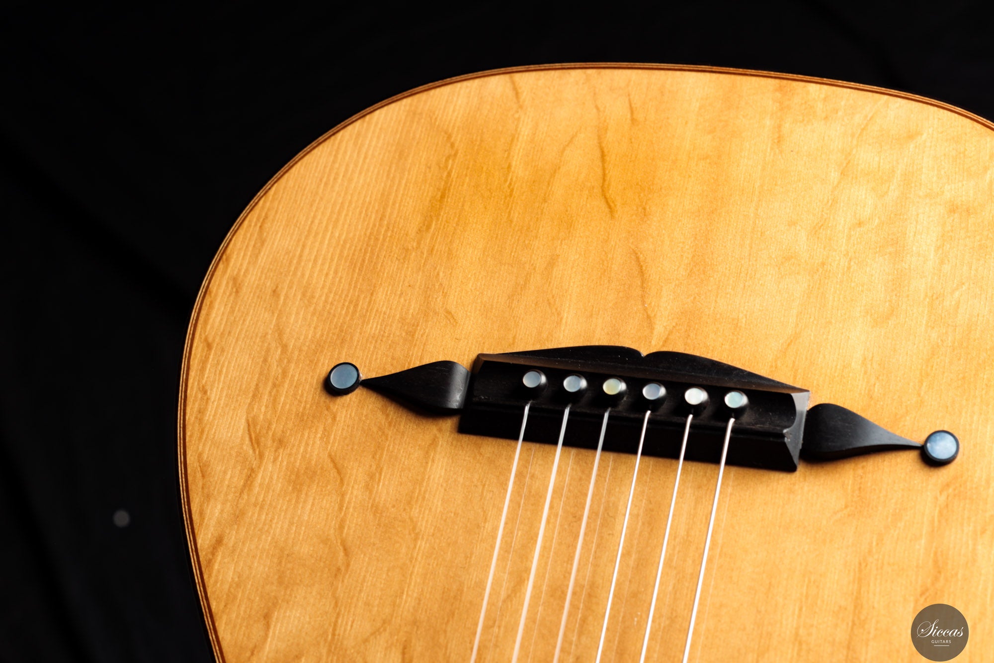 This guitar, completed in 2025, is Bernhard Kresse’s interpretation of a Louis Panormo instrument from 1843. It features a spruce soundboard and Indian rosewood back and sides, finished with French polish. With a shorter 630 mm scale length, a 47 mm nut, and a remarkably light weight of only 1190 grams, it offers the playability and tonal character typical of romantic-era guitars. The elegant design is completed with Alessi tuners and refined craftsmanship in every detail. The tonal profile reflects the intimate and lyrical qualities associated with early nineteenth-century guitars. The sound is soft, warm, and slightly nasal, with a pronounced midrange that evokes the original Panormo character. Its balance and clarity make it ideally suited for repertoire of the classical and romantic periods, offering both expressive delicacy and historical authenticity. Despite its historical model, the instrument is entirely new, reliable, and built to the highest modern standards of precision.Regular care extends the life of the instrument