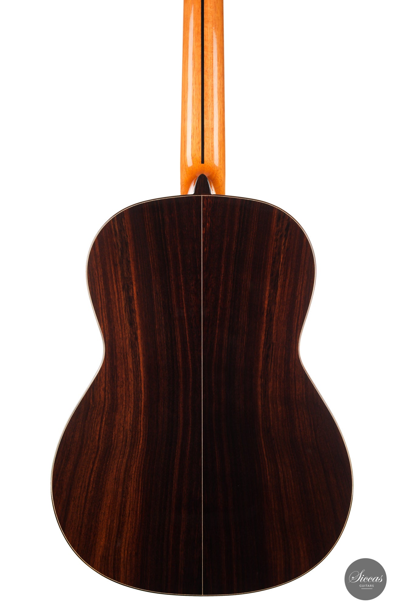 This well-established Flamenca Negra model from Camps has a nice, punchy, and fast-responding sound, with a bit more depth compared to the Primera Blanca model with cypress body. The beautiful Indian rosewood back and sides are of course made of solid wood and make this guitar a true all-rounder. A transparent golpeador on the soundboard ensures that this versatile guitar can be used in the full range of the Spanish guitar repertoire.