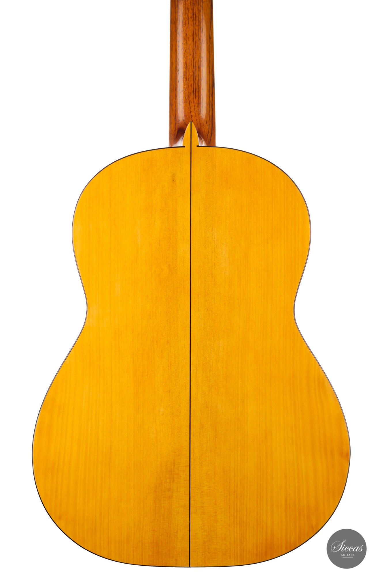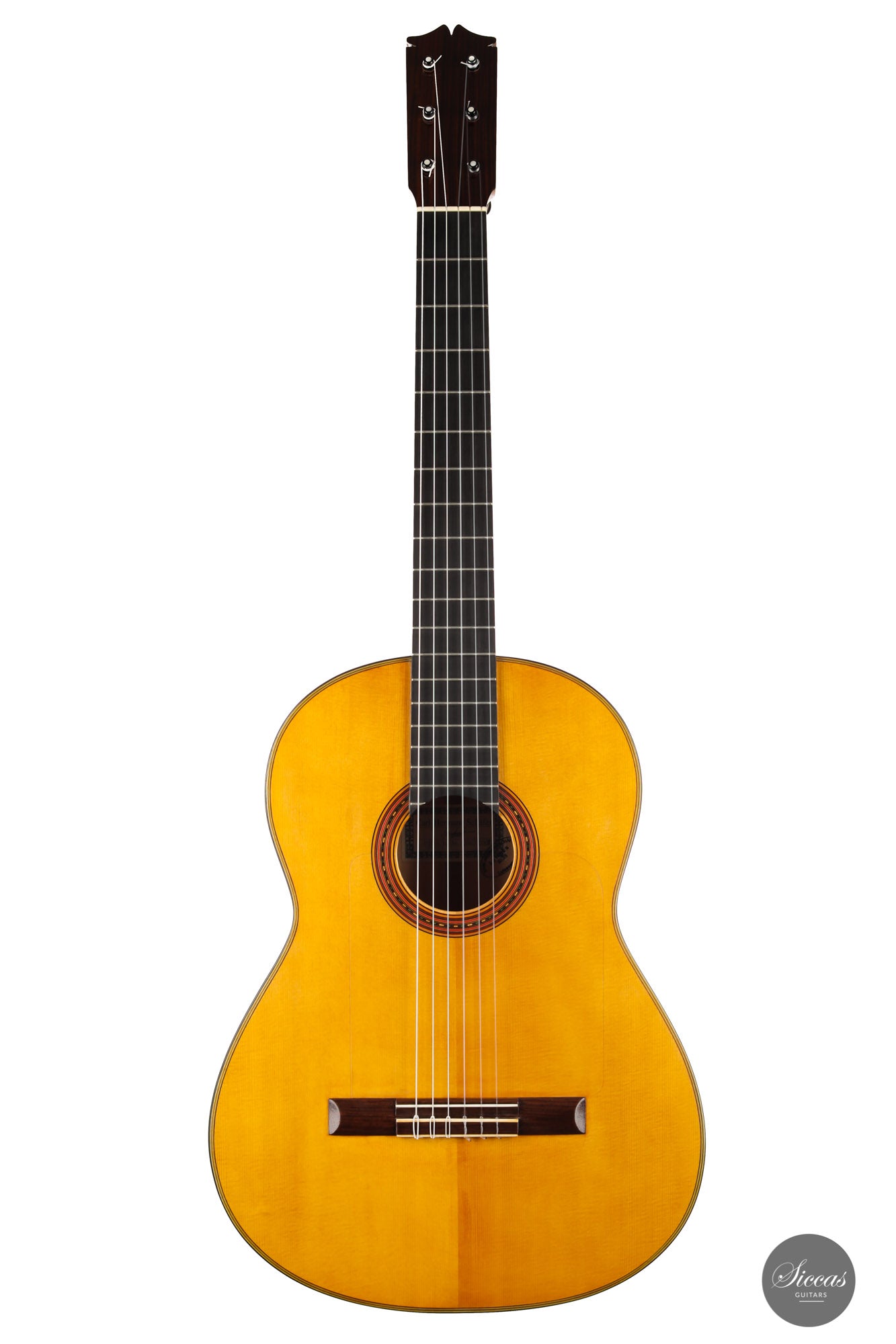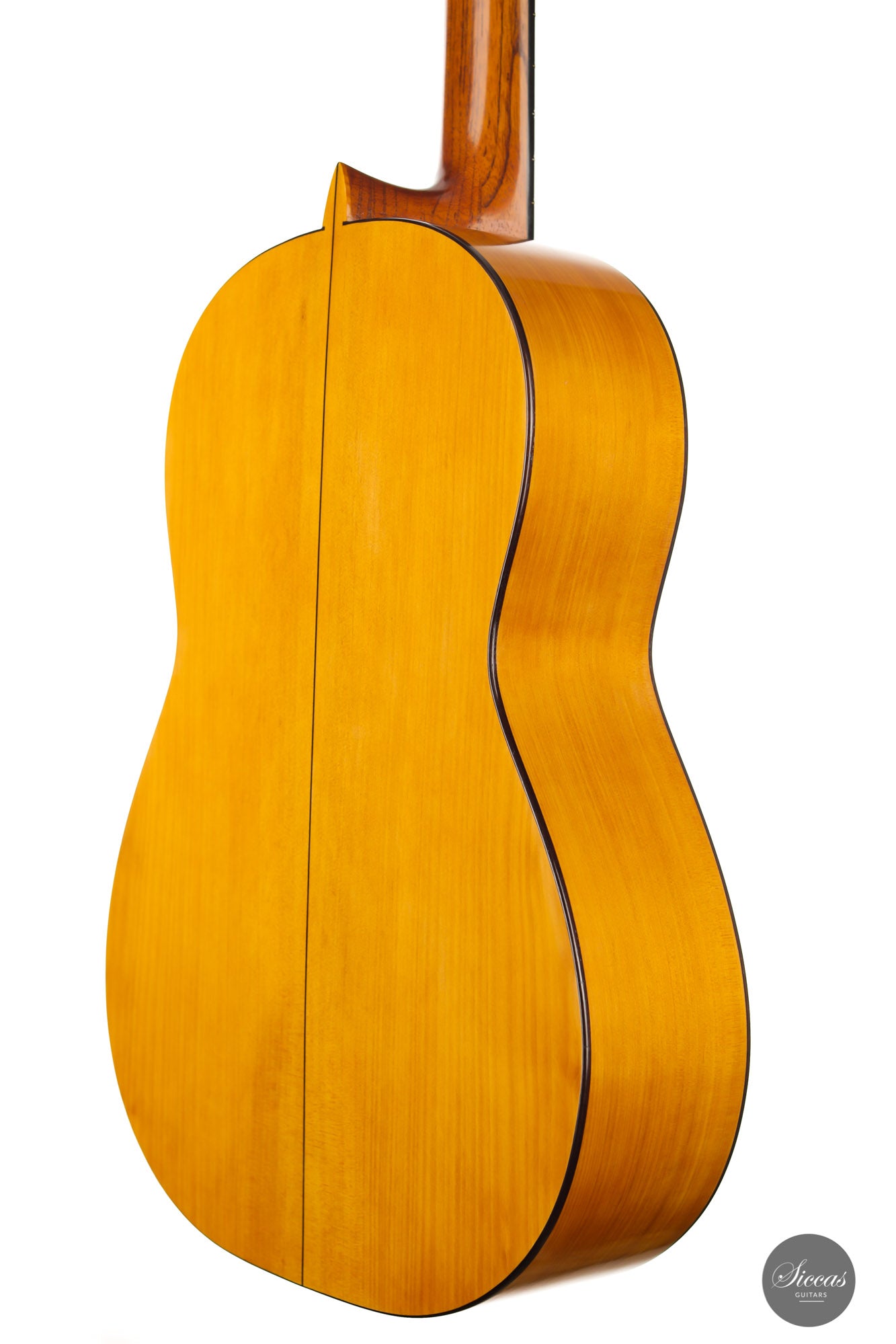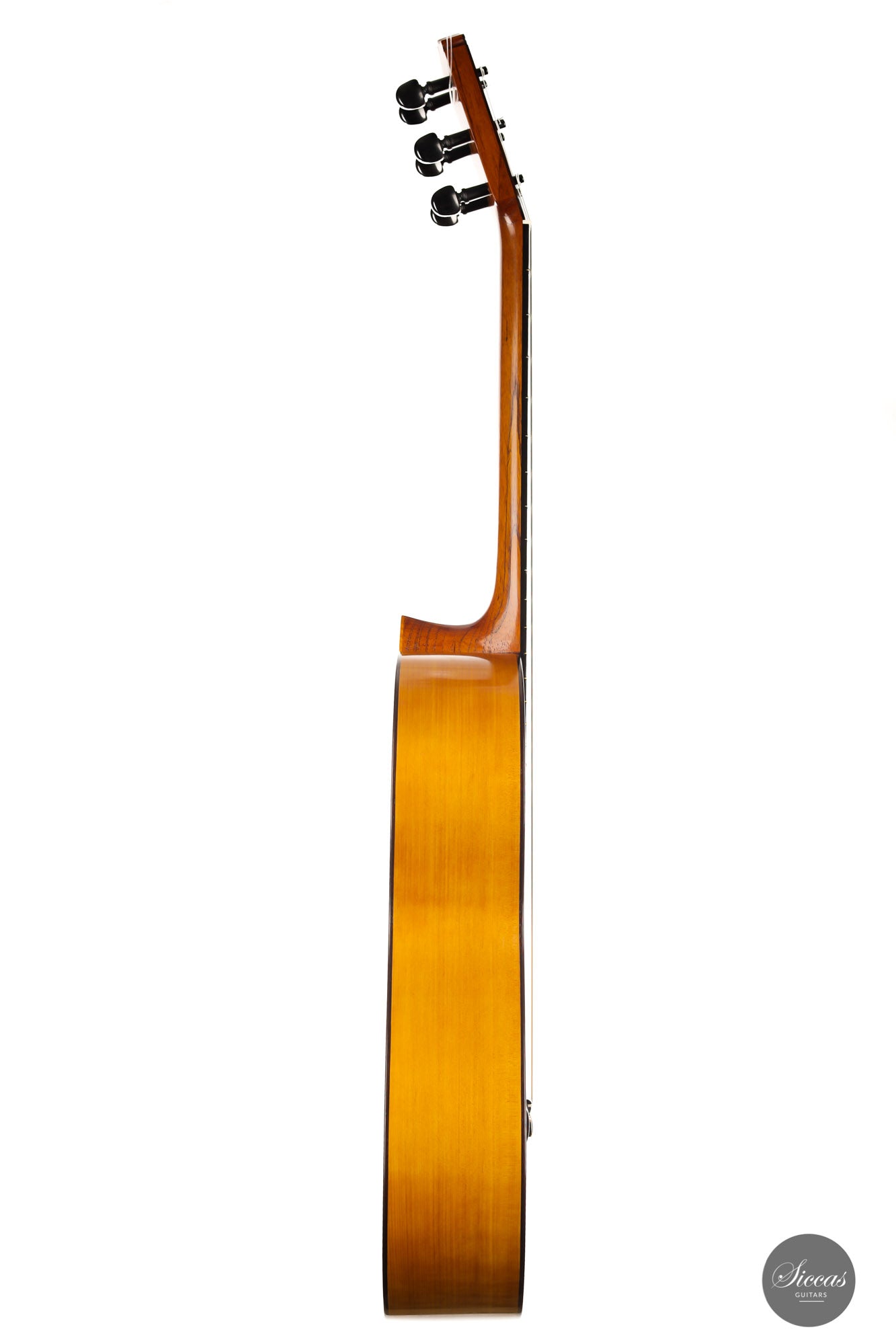 This great copy of a Santos Hernandez guitar from 1925 is in perfect condition and has an attractive vintage look. Equipped with a transparent golpeador, this model has not only a pleasant neck shape but also a fantastic response, making it a very nice, and faithful copy of the guitar made by the grand old master from Madrid. It has a clear sound character with deep, well Spanish basses and an impressive authenticity in its voice. In short, an exceptional copy, truly inspiring and pleasant to play.