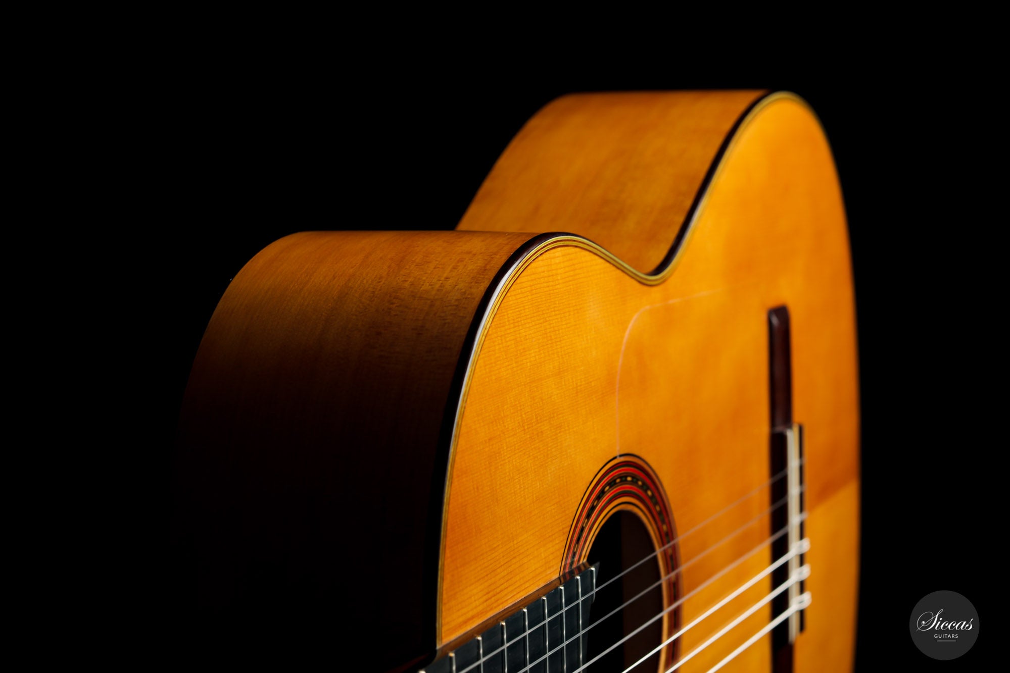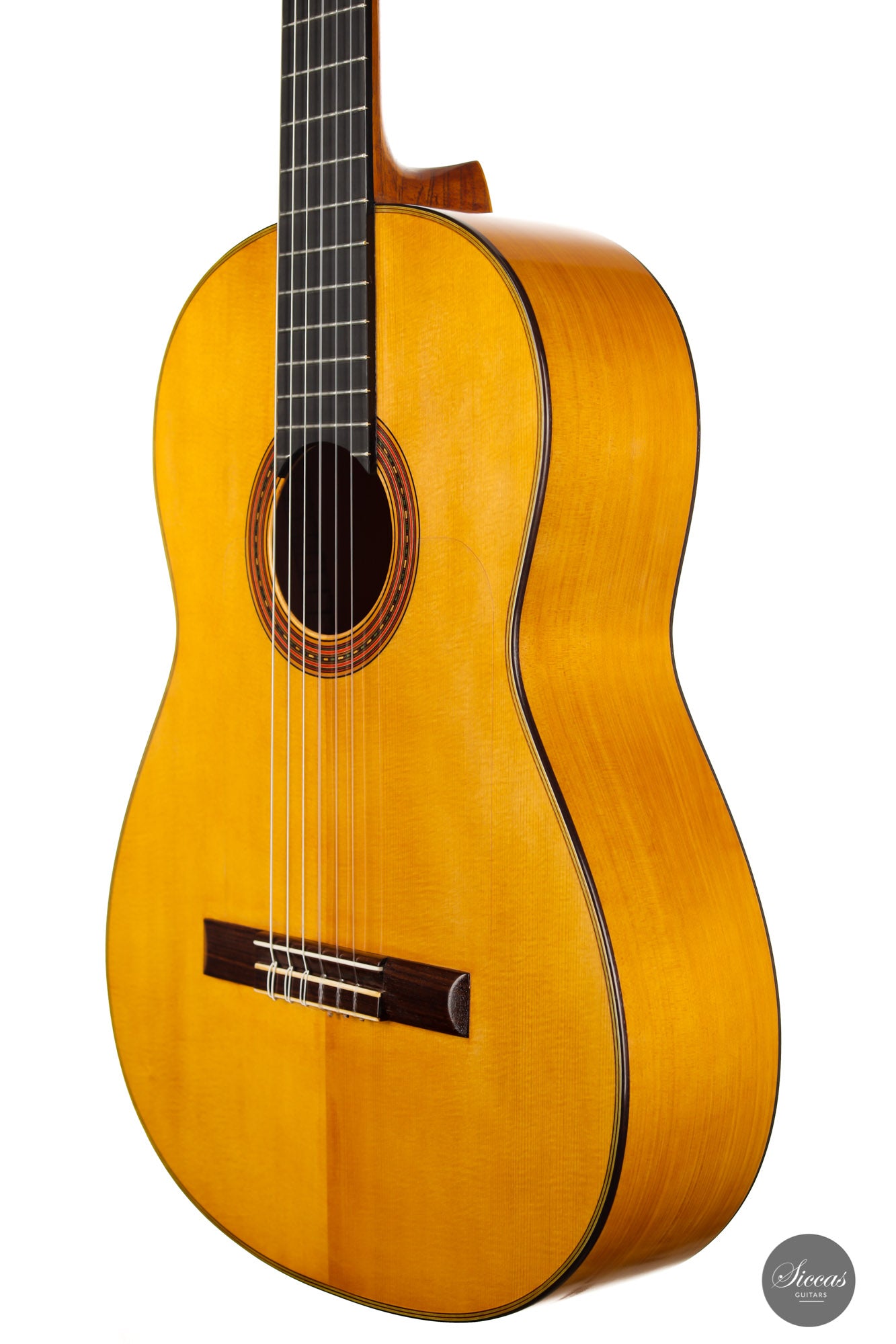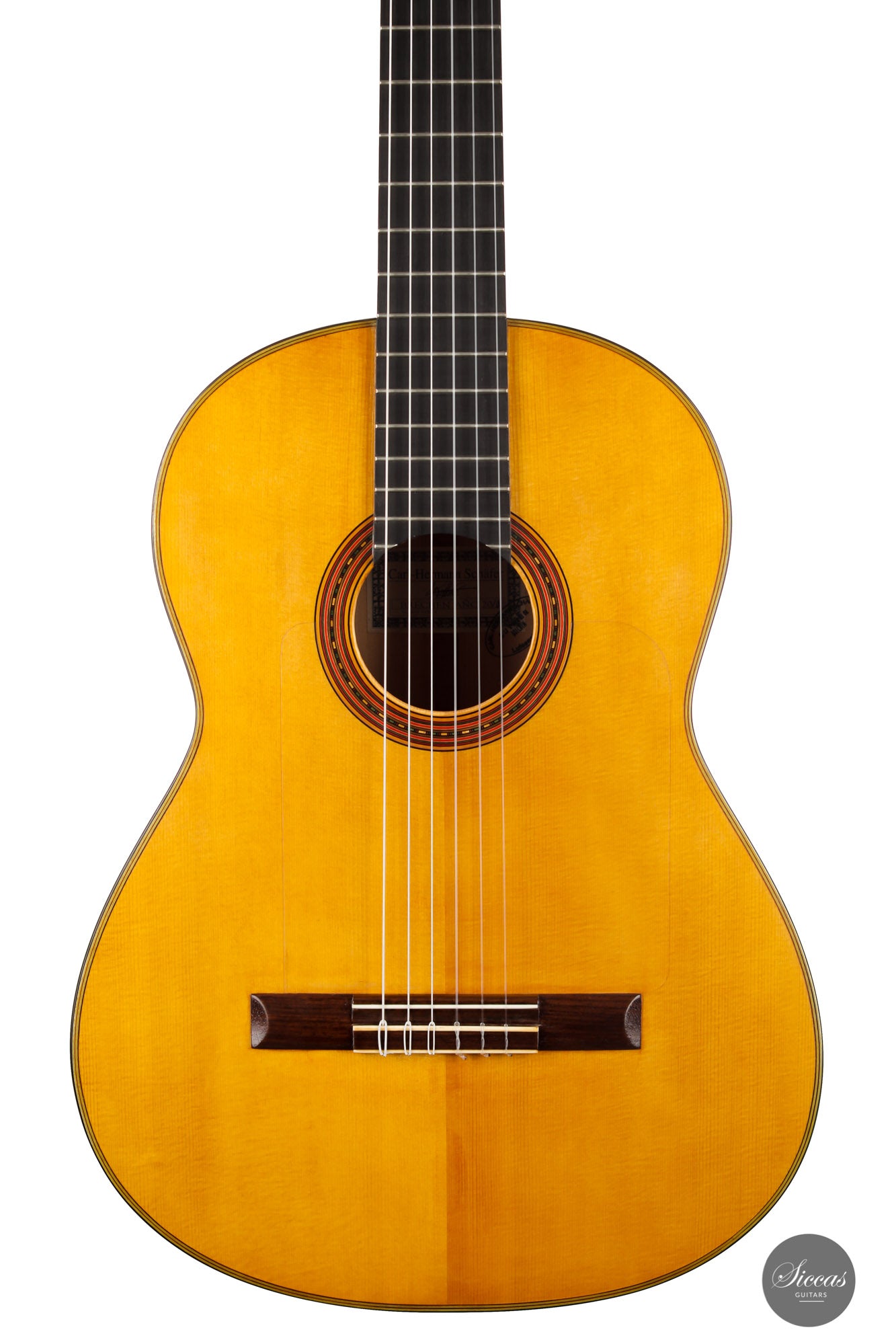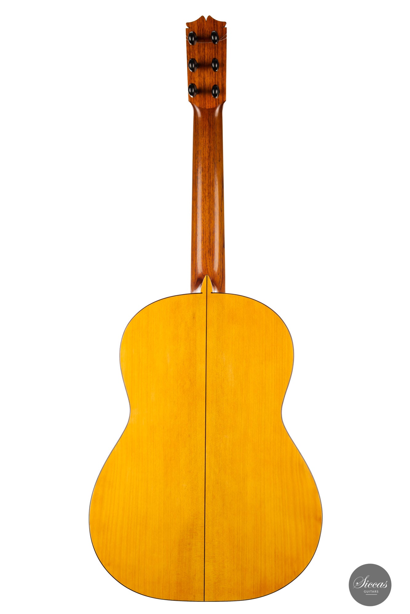 This great copy of a Santos Hernandez guitar from 1925 is in perfect condition and has an attractive vintage look. Equipped with a transparent golpeador, this model has not only a pleasant neck shape but also a fantastic response, making it a very nice, and faithful copy of the guitar made by the grand old master from Madrid. It has a clear sound character with deep, well Spanish basses and an impressive authenticity in its voice. In short, an exceptional copy, truly inspiring and pleasant to play.