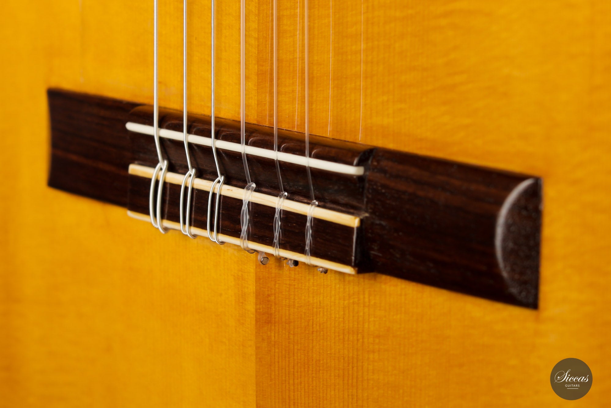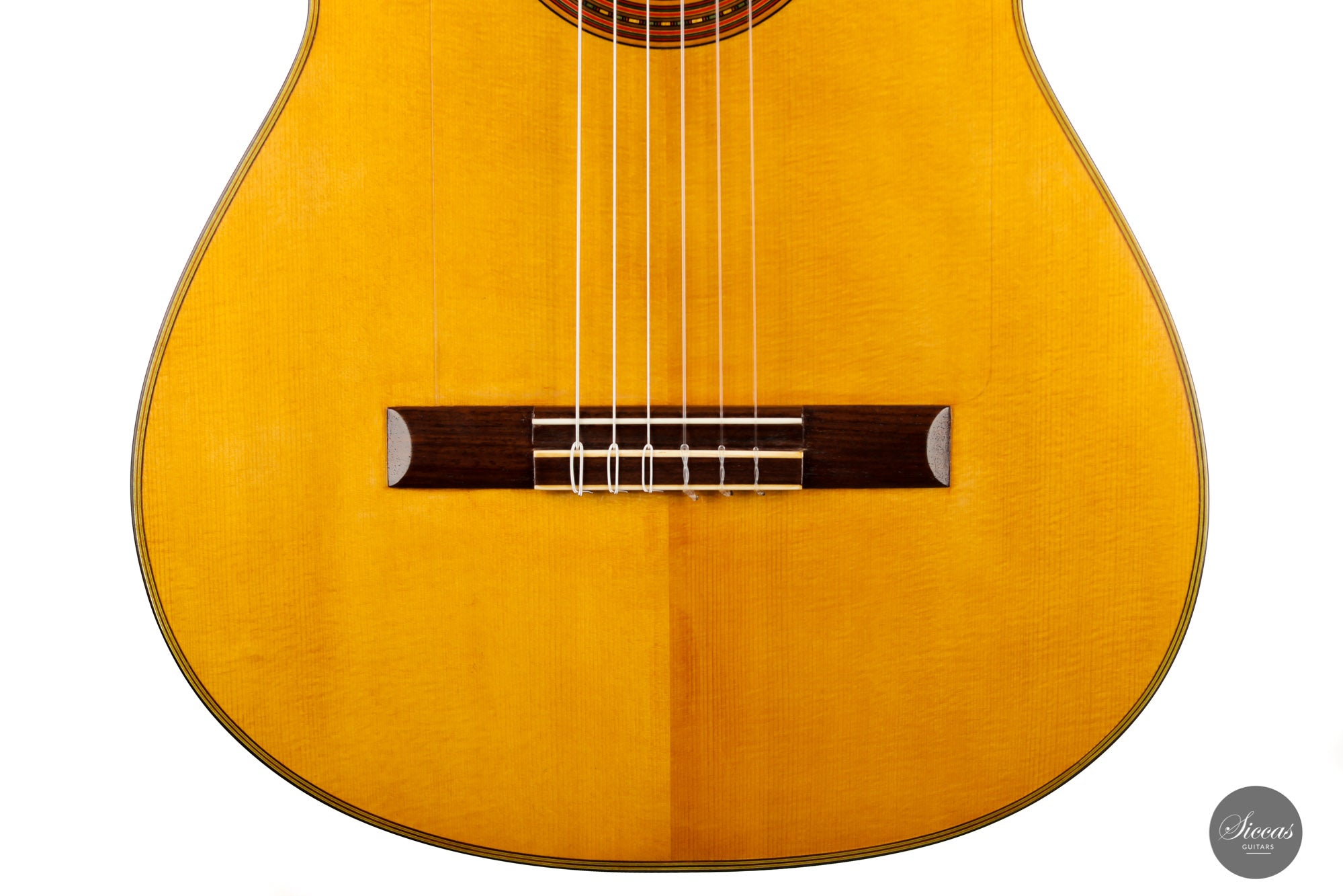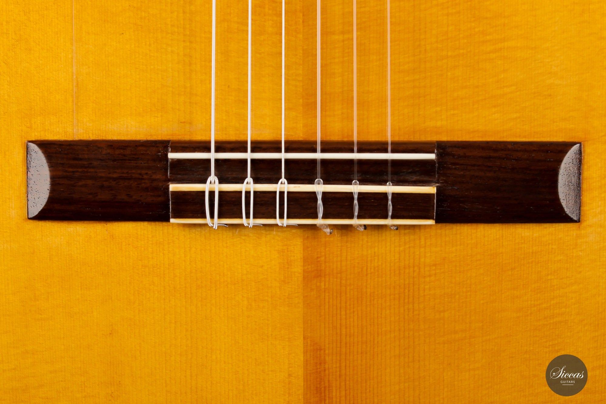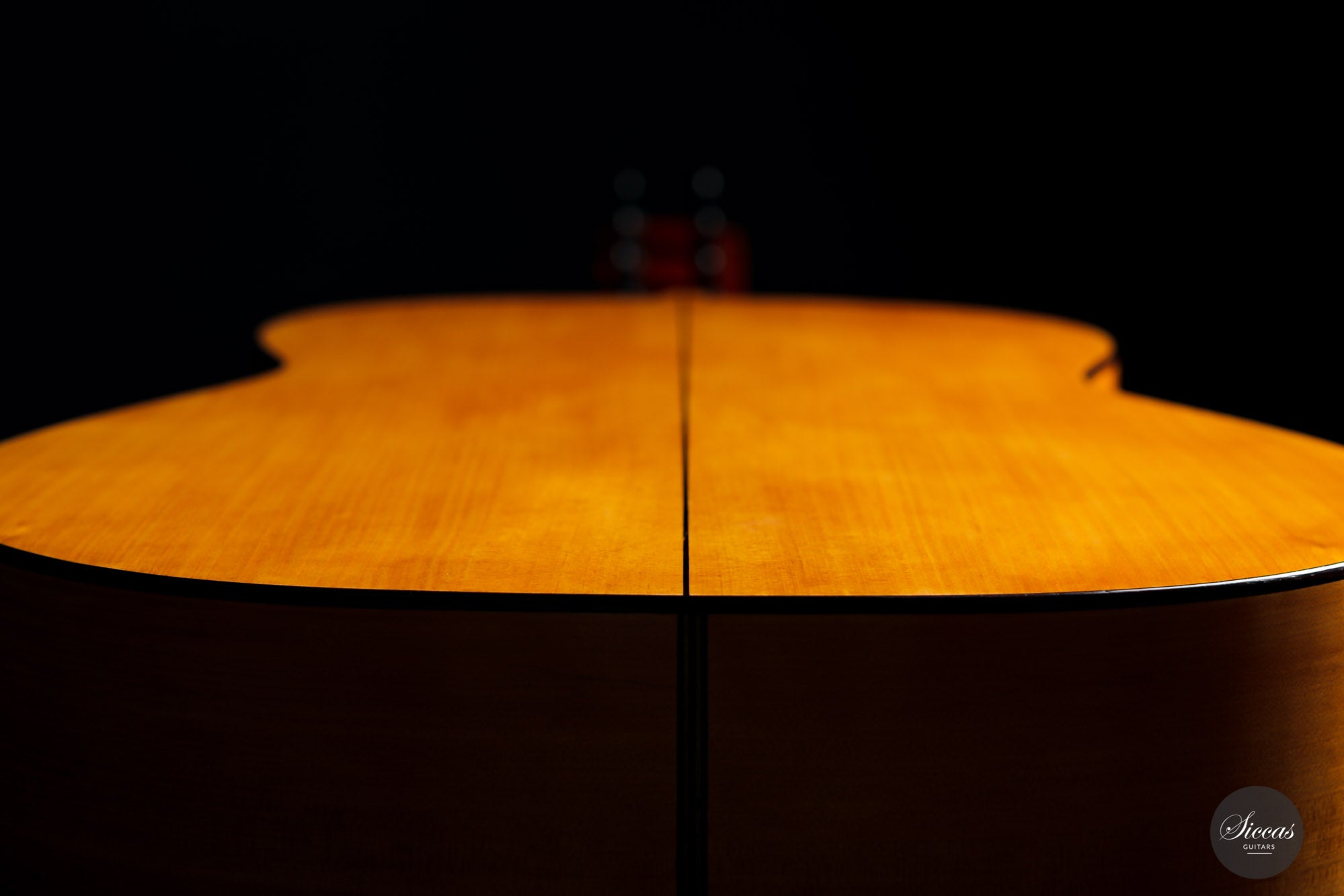 This great copy of a Santos Hernandez guitar from 1925 is in perfect condition and has an attractive vintage look. Equipped with a transparent golpeador, this model has not only a pleasant neck shape but also a fantastic response, making it a very nice, and faithful copy of the guitar made by the grand old master from Madrid. It has a clear sound character with deep, well Spanish basses and an impressive authenticity in its voice. In short, an exceptional copy, truly inspiring and pleasant to play.