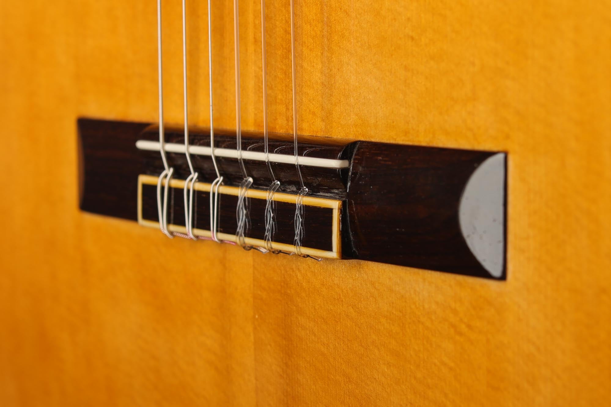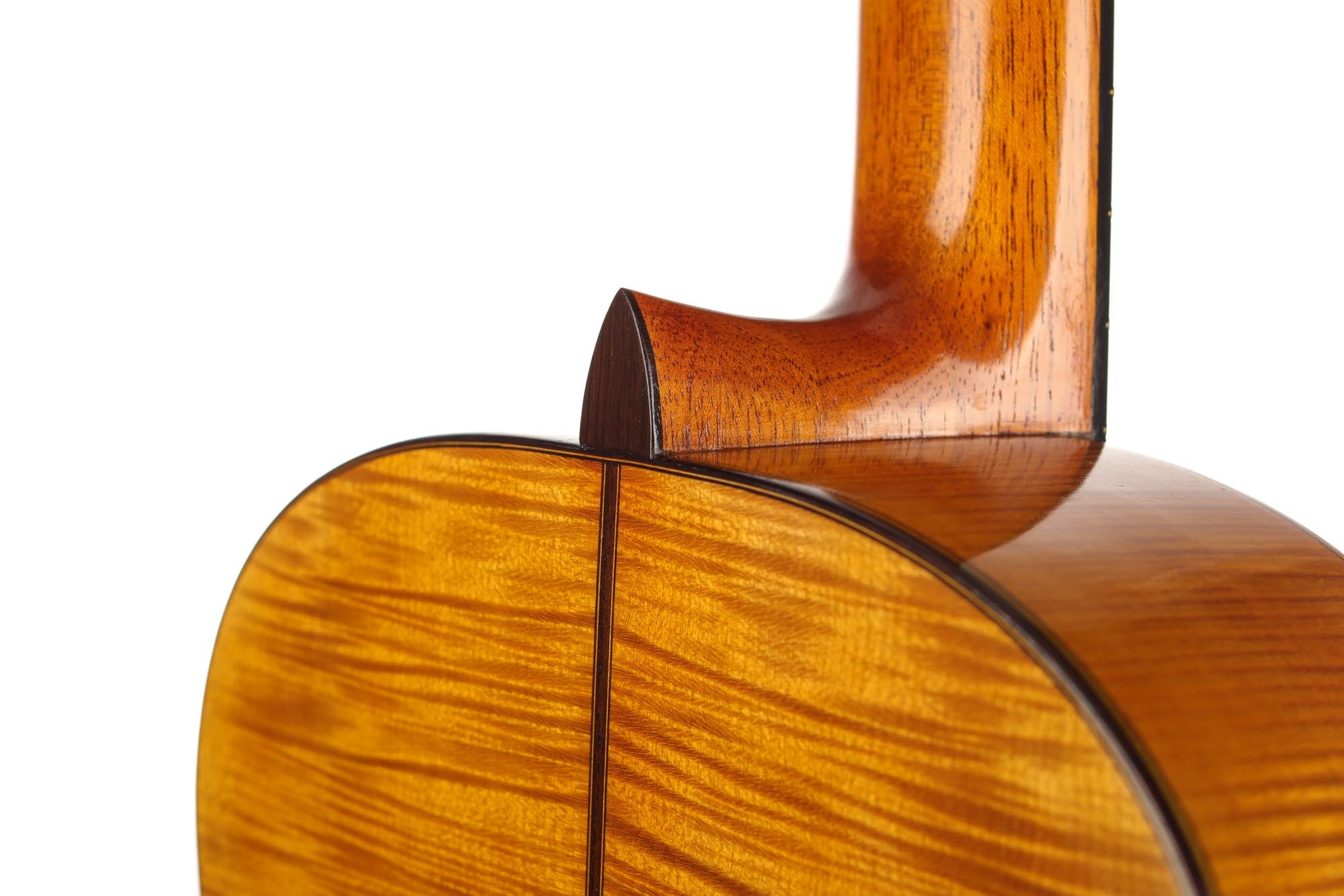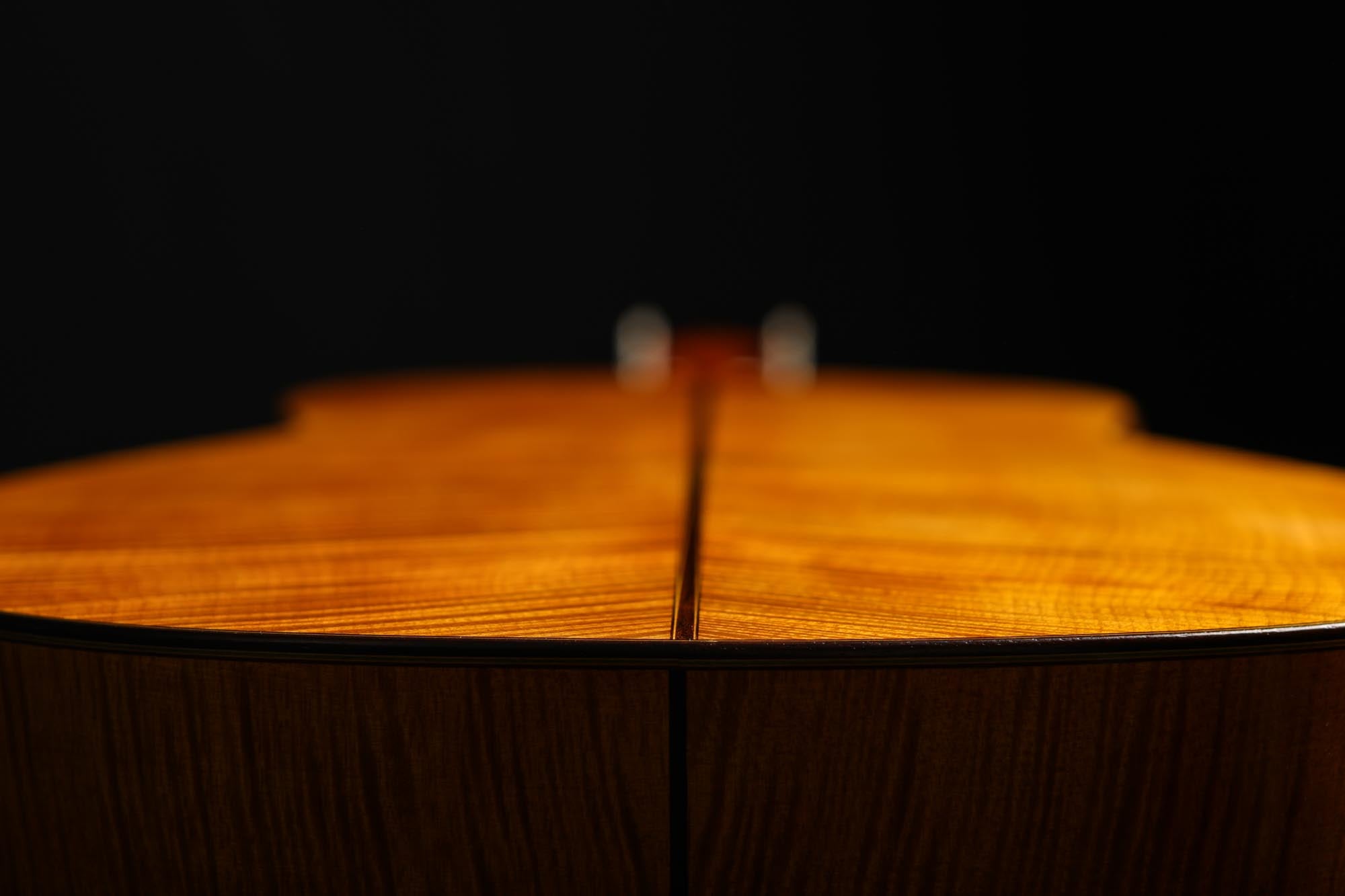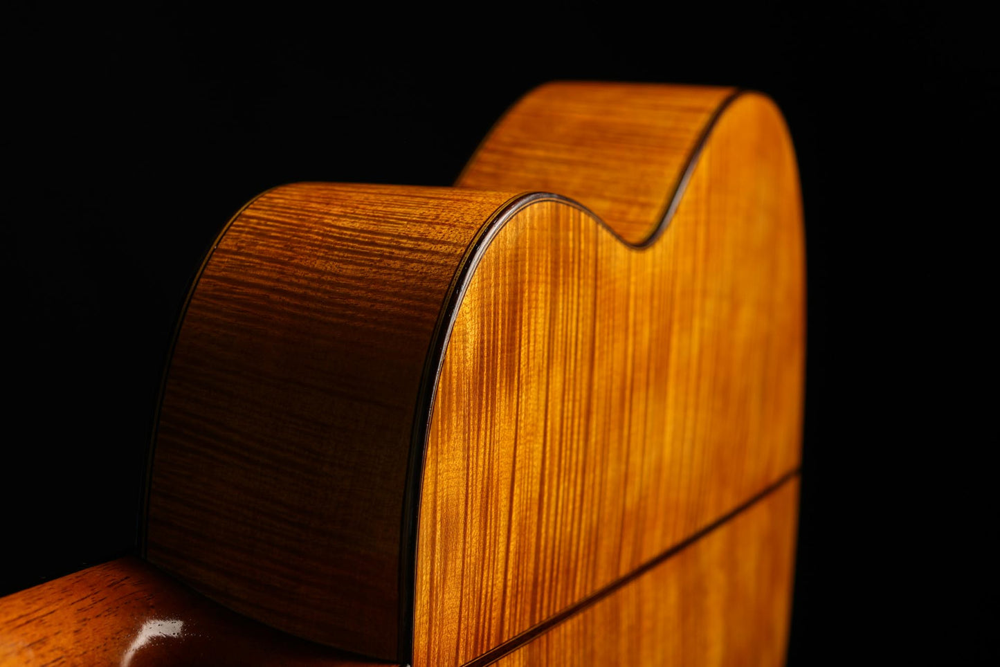 It is simply amazing how much energy and expression emanates from this guitar. One can clearly find the power and spontaneity of the guitars of Santos Hernandez. The basses have an extraordinary charisma and balance, with a full and complex timbre, at the same time classical and very modern. The trebles have a very round and relatively powerful sound, paired with great elegance. The lightness and comfort in the left hand are reminiscent of the playing feel of 19th-century guitars, which makes it an absolutely fascinating guitar that is very difficult to put back into the case once you start playing it.
