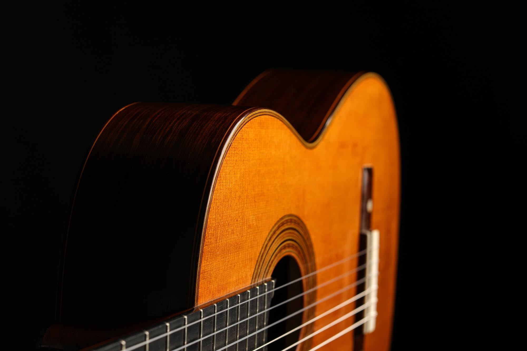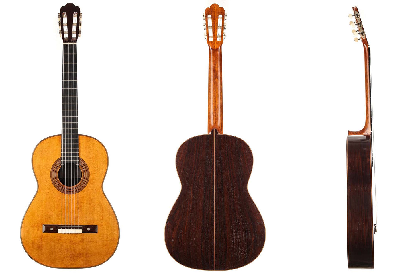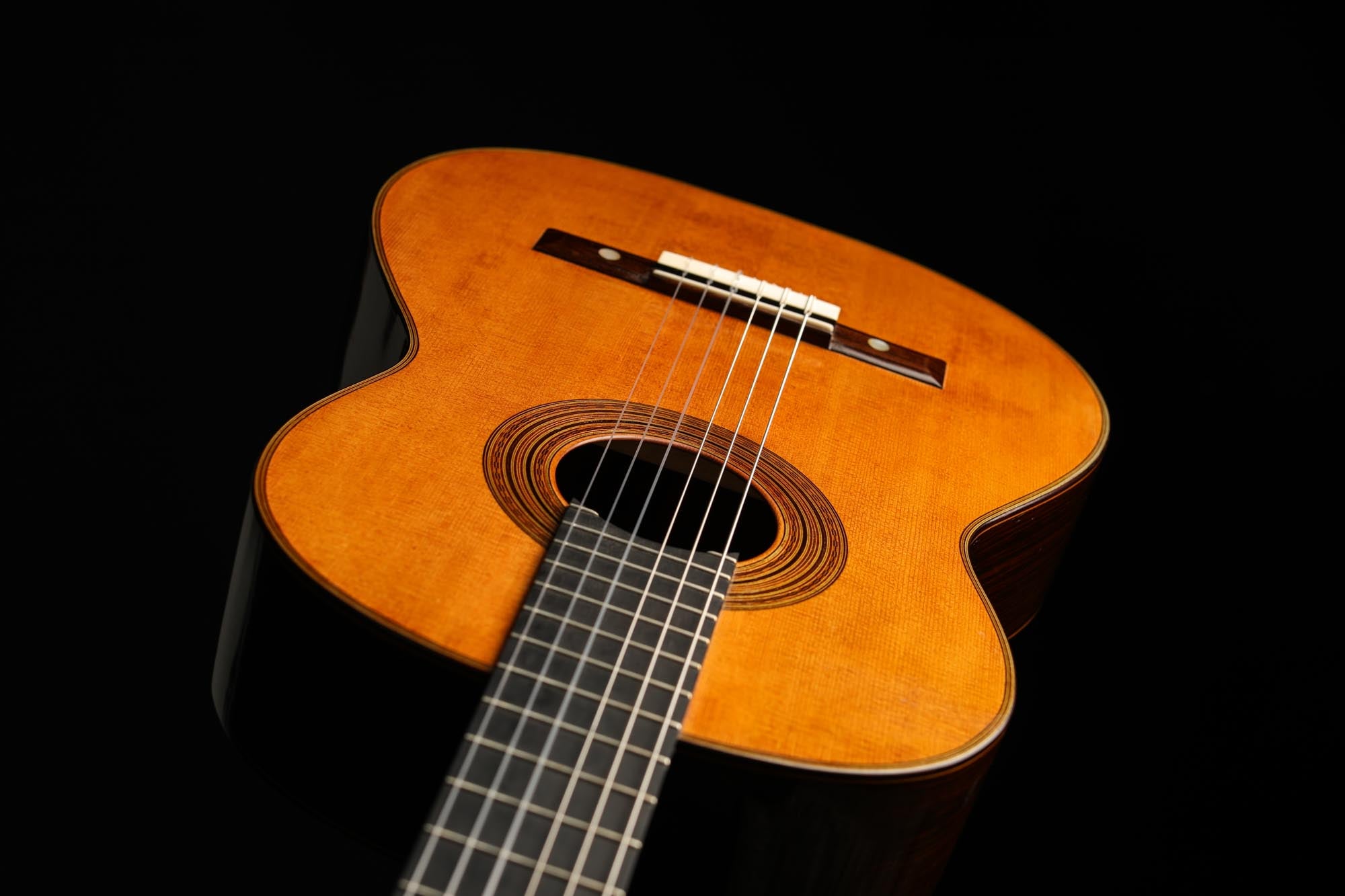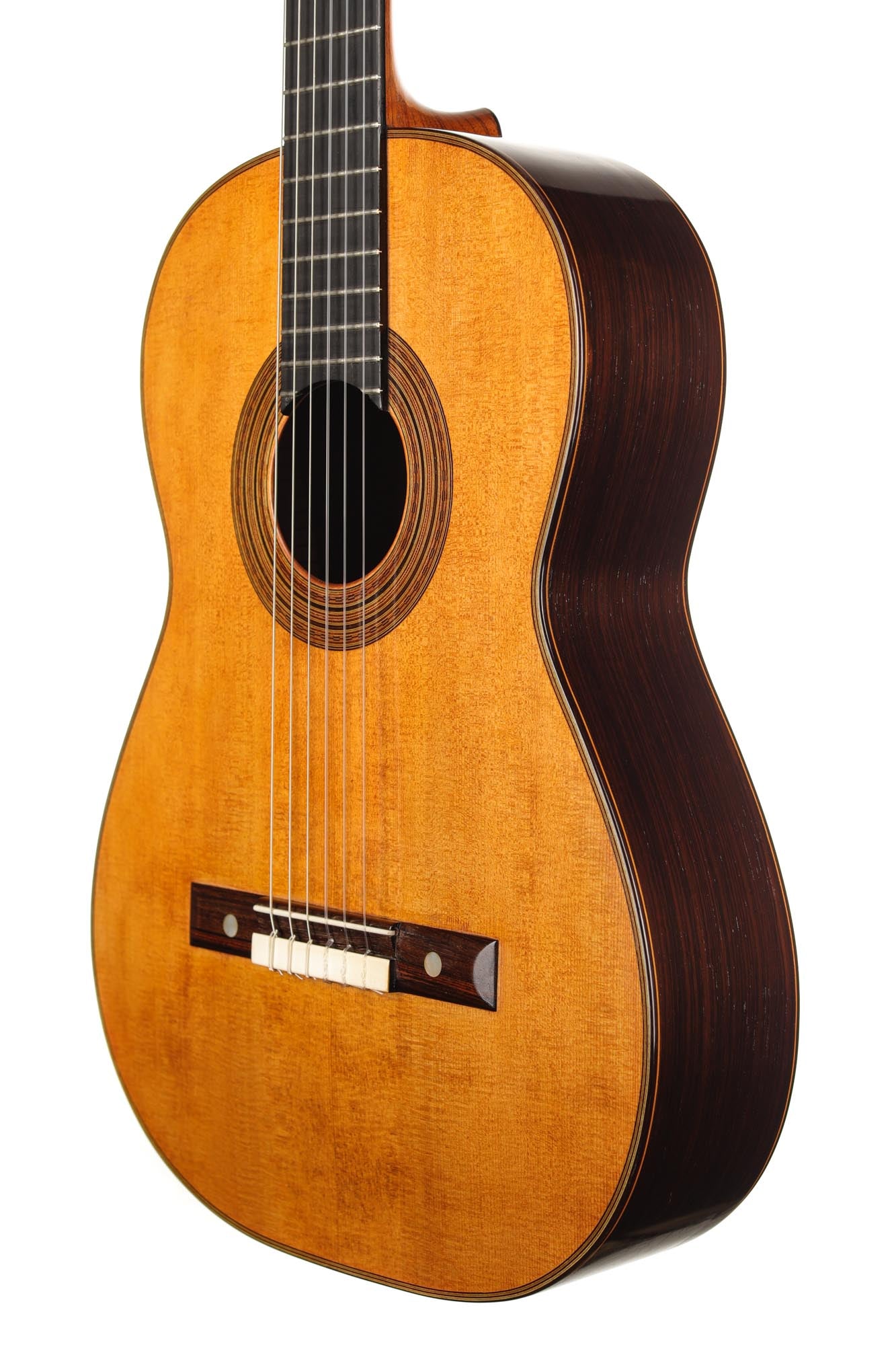 This Torres copy is very light in weight and of a stunning spontaneity. It has retained the charm of Antonio de Torres' instruments as well as the typical grain and richness of sound. The treble strings are a great example of tonal delicacy and elegance. The basses sound fantastically precise, with a clarity and intelligibility that is perfectly suited to contrapuntal pieces of the classical guitar repertoire. In short, this is a true work of art and a guitar that is one of the best of its kind.