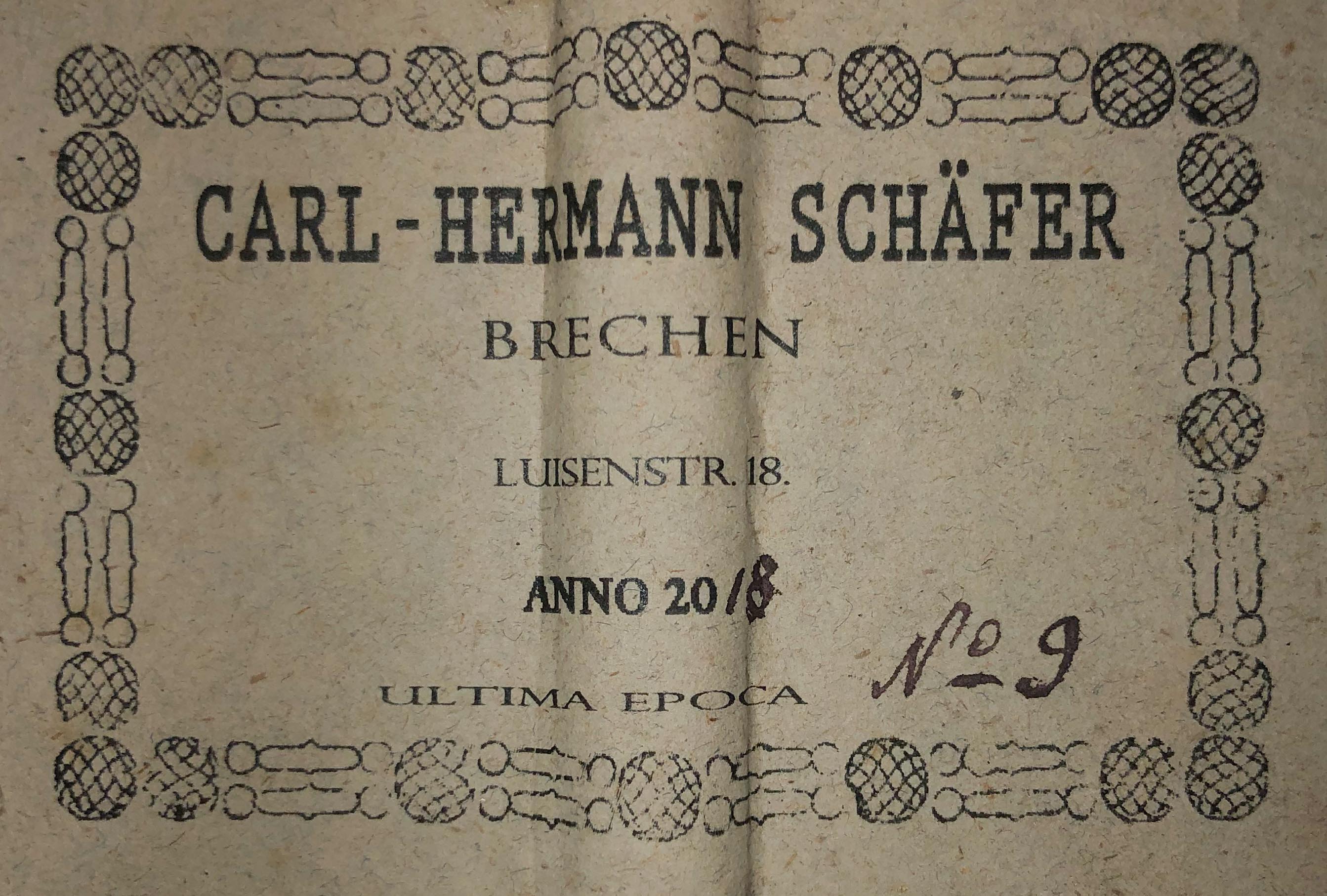 Carl Hermann Schäfer started making guitars in 1966. He did his apprenticeship under the guidance of master guitar maker Ernest Köröskeny and later studied under master guitar maker Dieter Hopf. After having worked in Hopf’s workshop from 1971 to 1994, he opened his own in Oberneisen and moved to Niederbrechen, Germany, five years later.