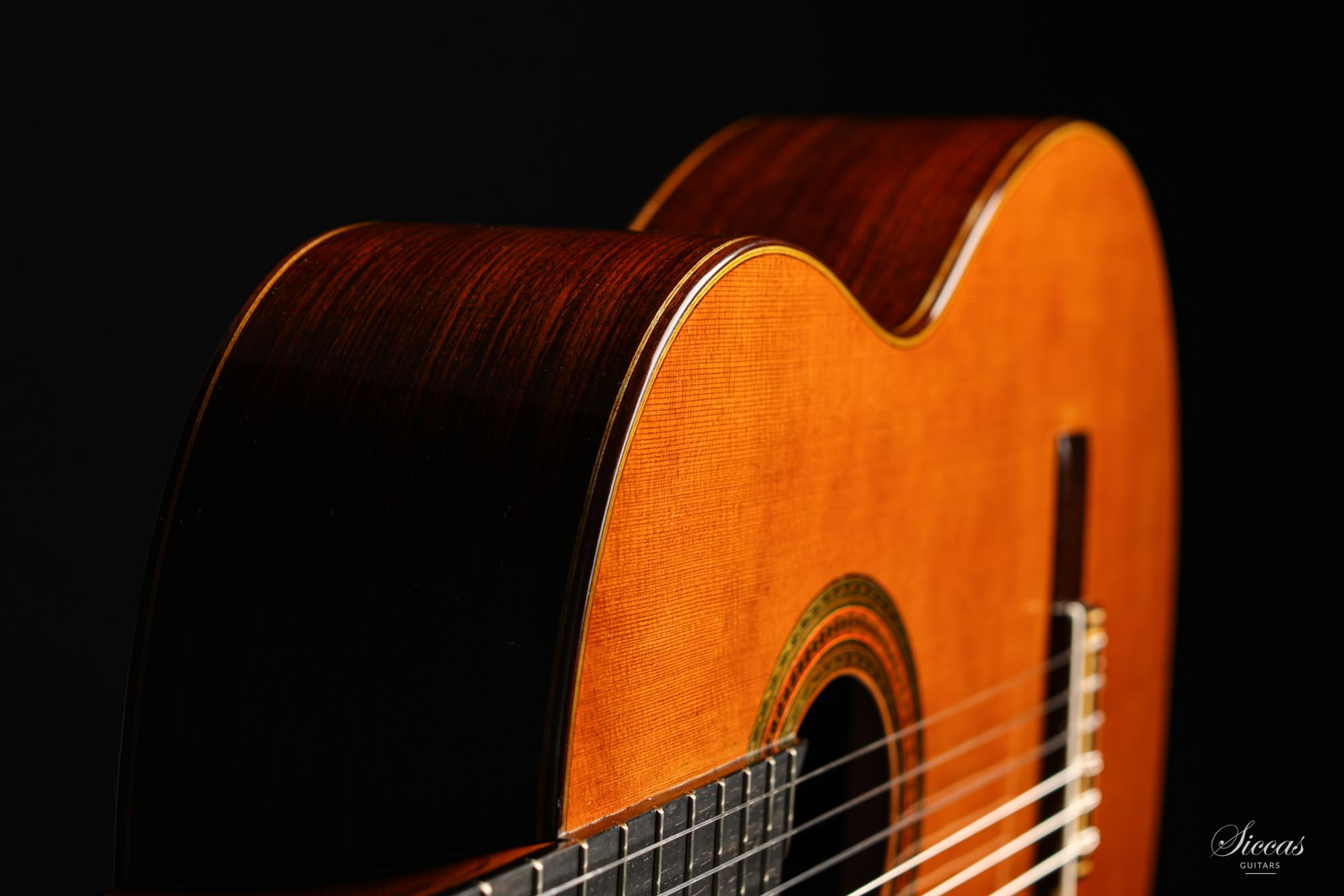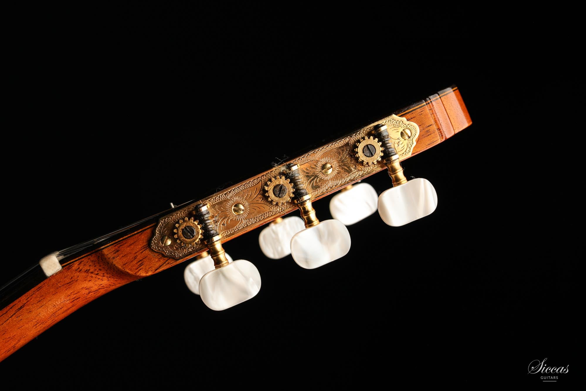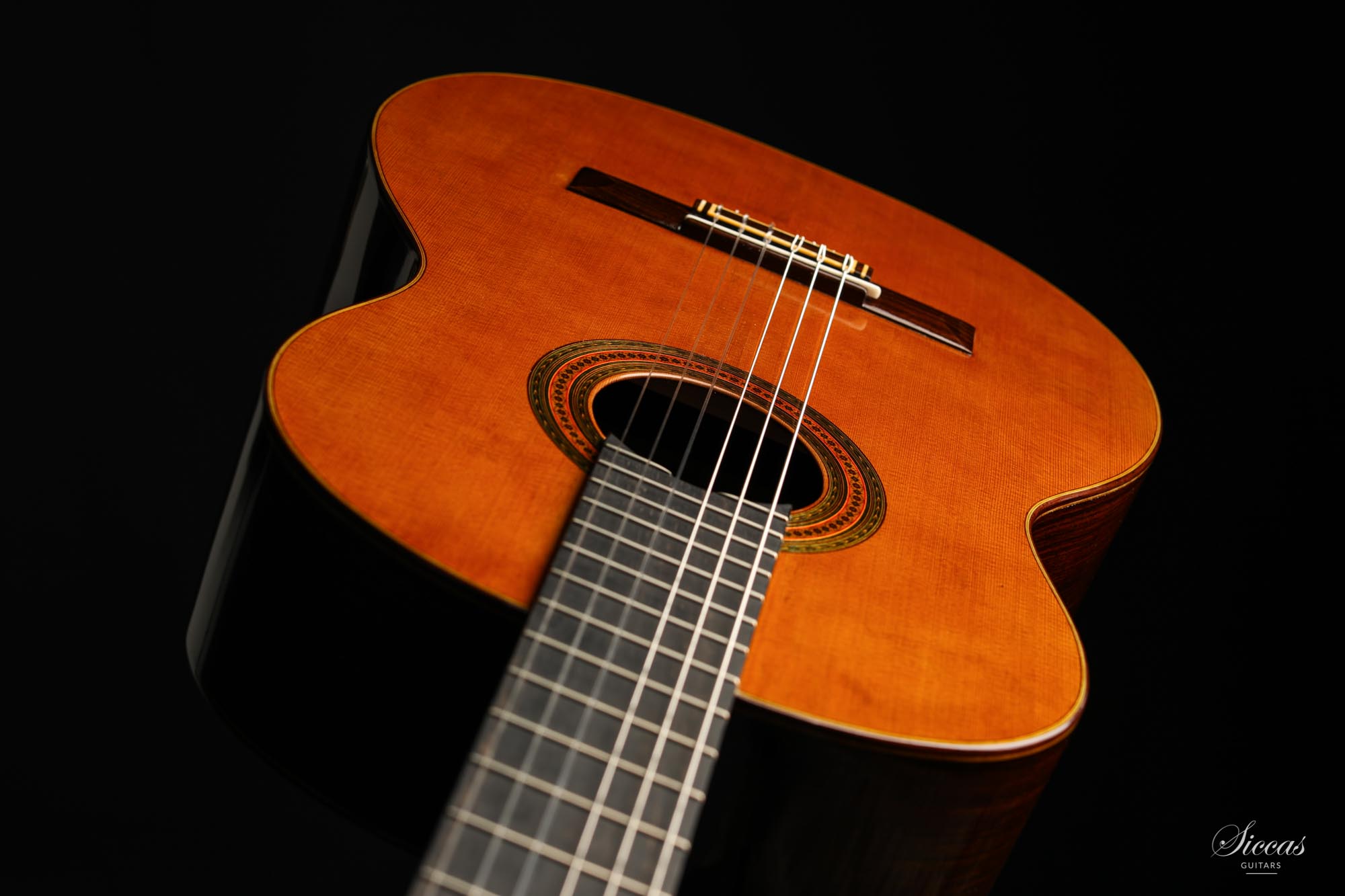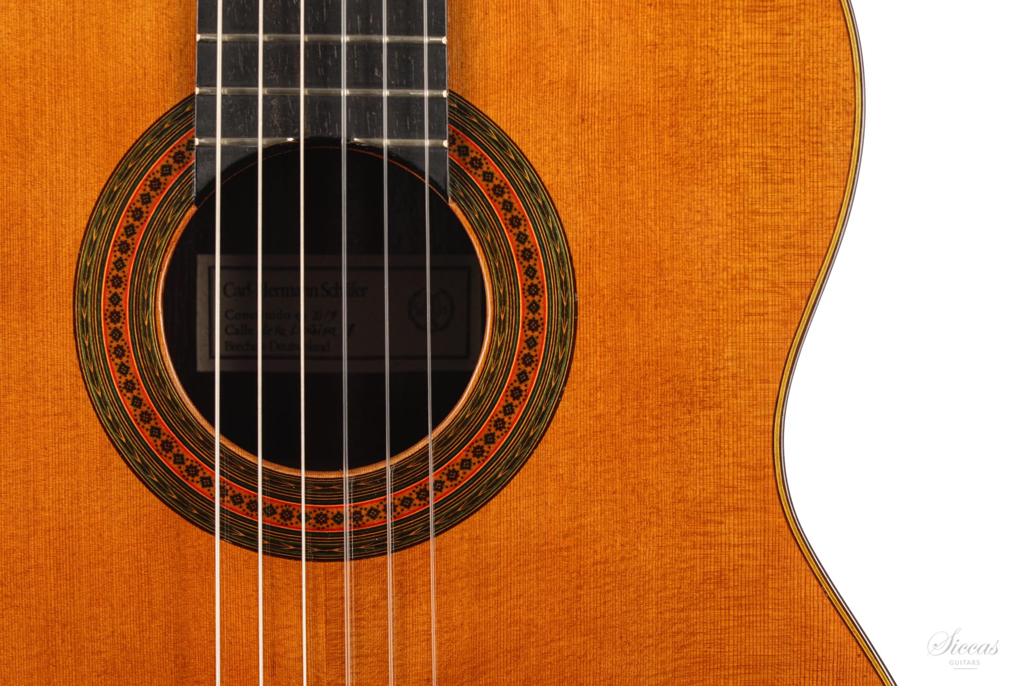 This instrument is special due to the fact that Carl Hermann Schäfer was in possession of the original Ignacio Fleta from 1969 owned and played by Andrés Segovia, the famous original instrument No. 500. It is build true to the original in the most splendid way imaginable, gorgeous details and top grade woods only. Strong, firm and bold basses paired with almost angelic trebles makes for an inspiring guitar. The voices are perfectly balanced and the harmonies ring out like in a big cathedral.