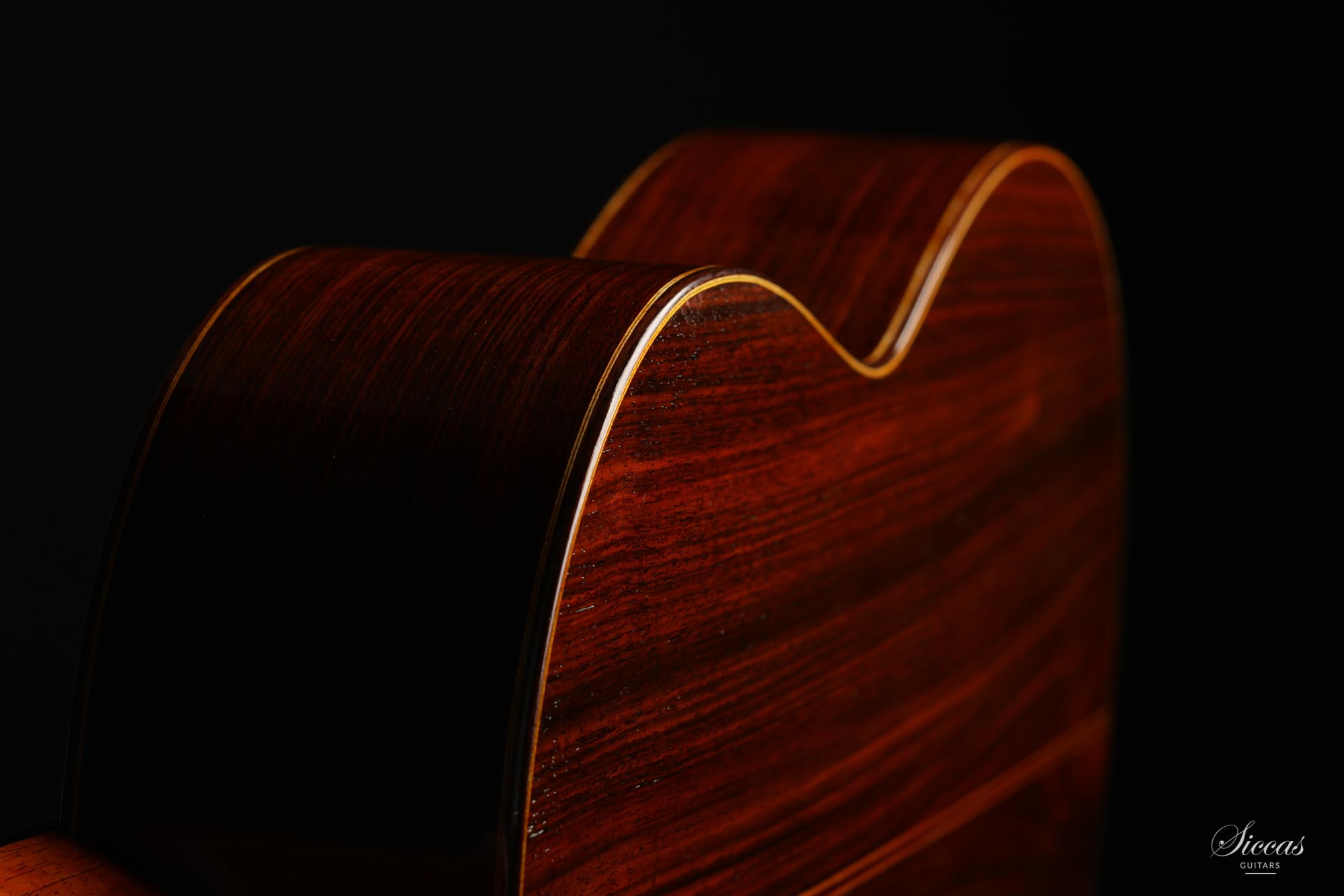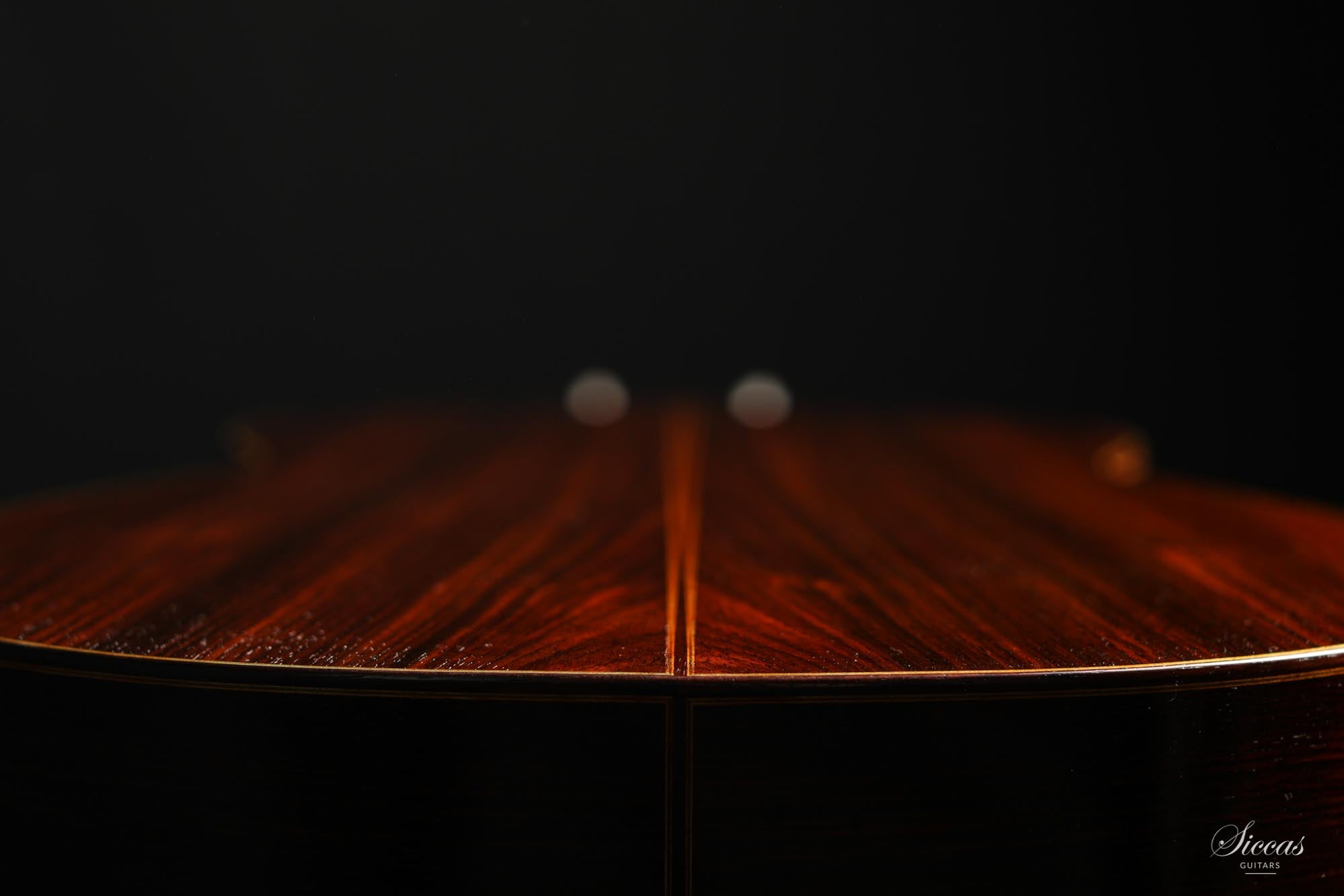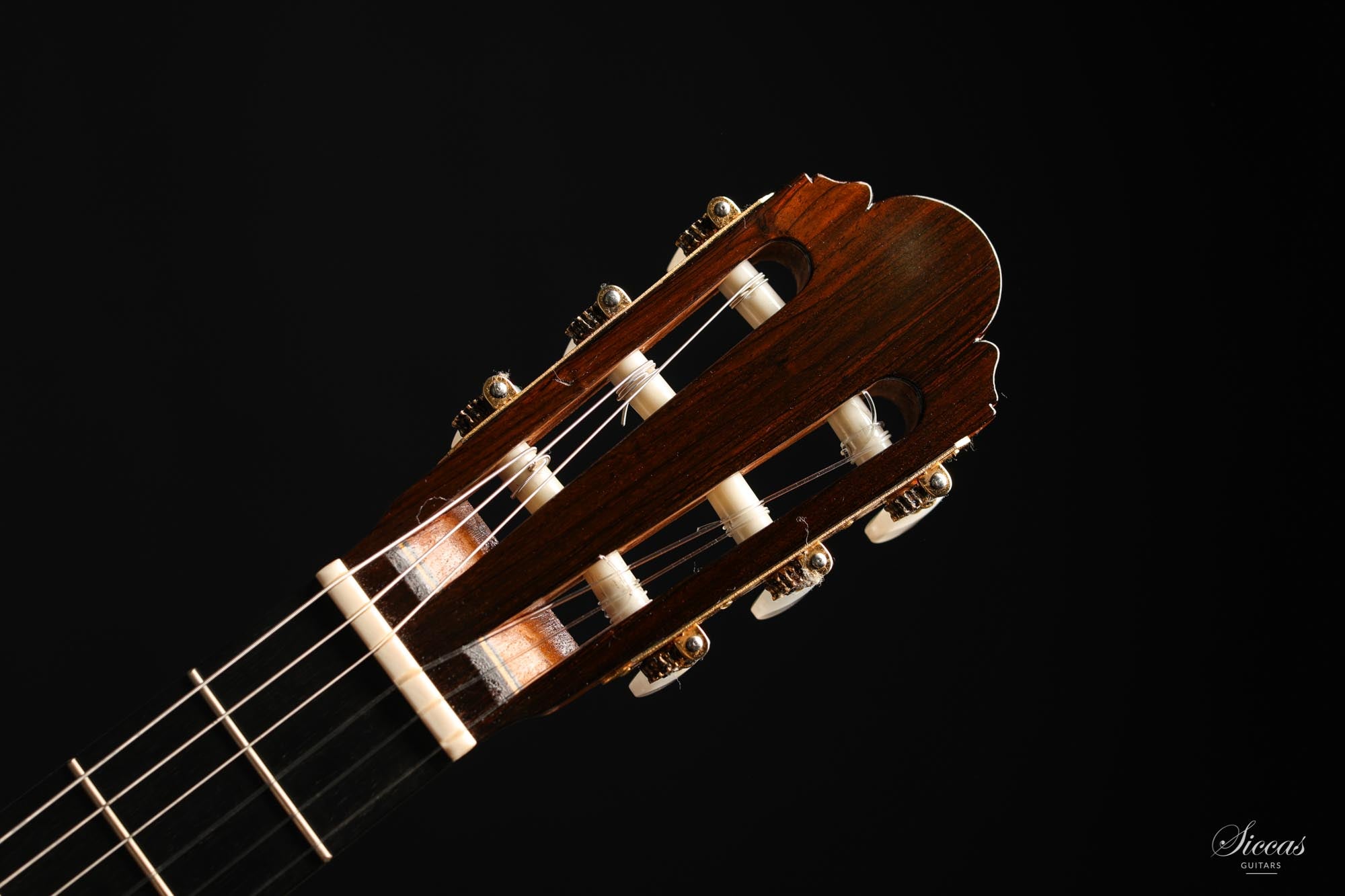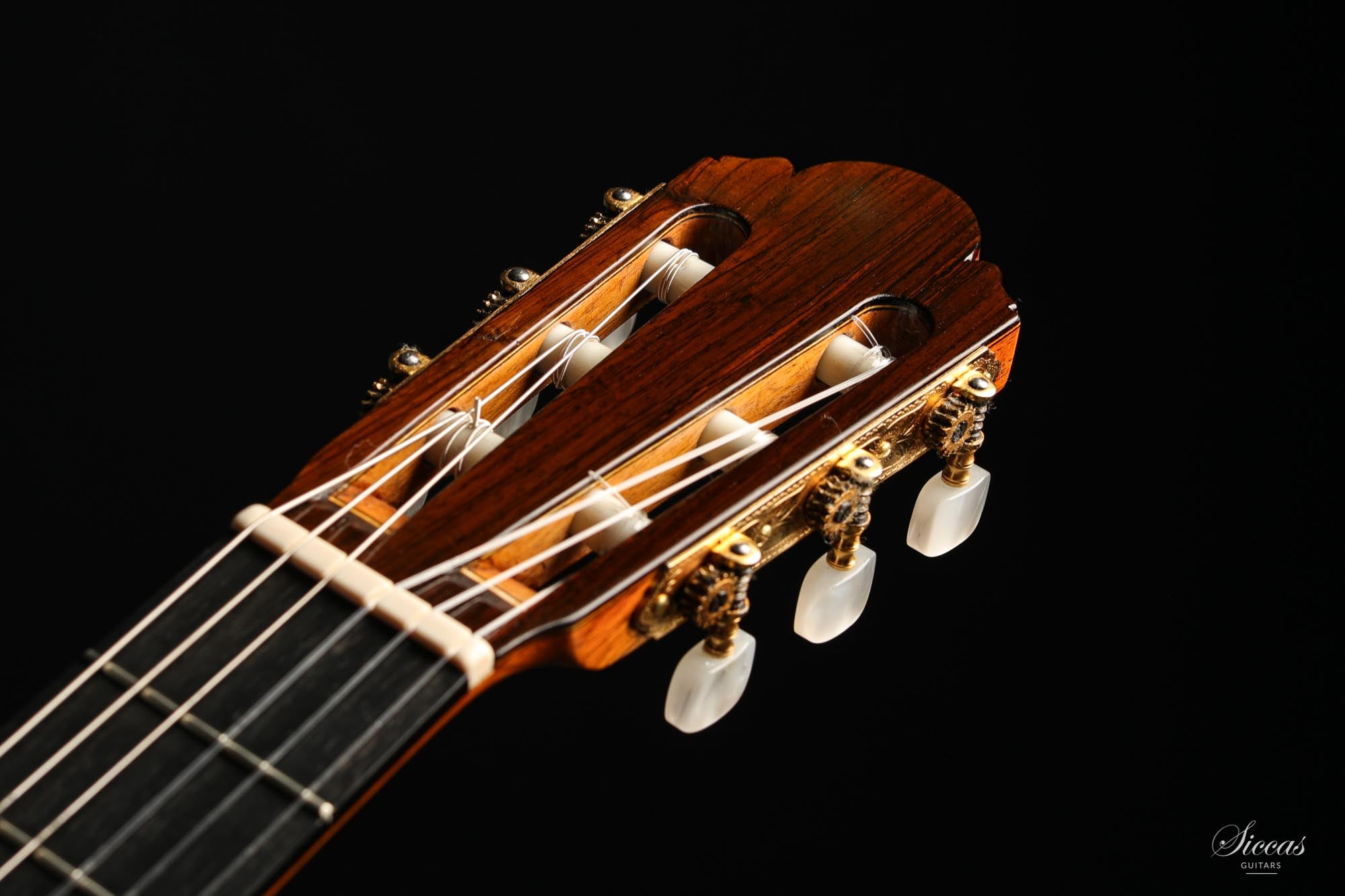 This instrument is special due to the fact that Carl Hermann Schäfer was in possession of the original Ignacio Fleta from 1969 owned and played by Andrés Segovia, the famous original instrument No. 500. It is build true to the original in the most splendid way imaginable, gorgeous details and top grade woods only. Strong, firm and bold basses paired with almost angelic trebles makes for an inspiring guitar. The voices are perfectly balanced and the harmonies ring out like in a big cathedral.