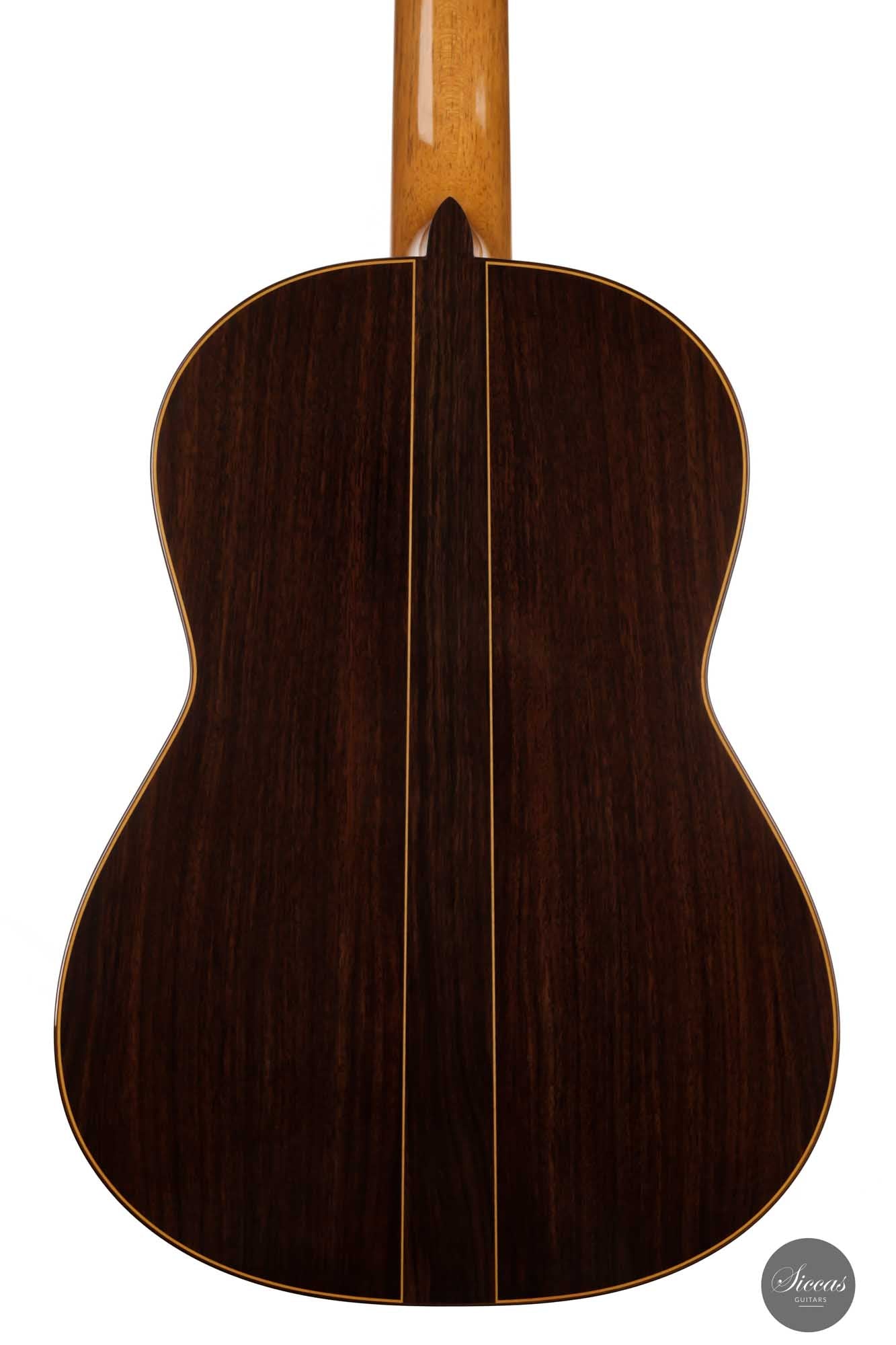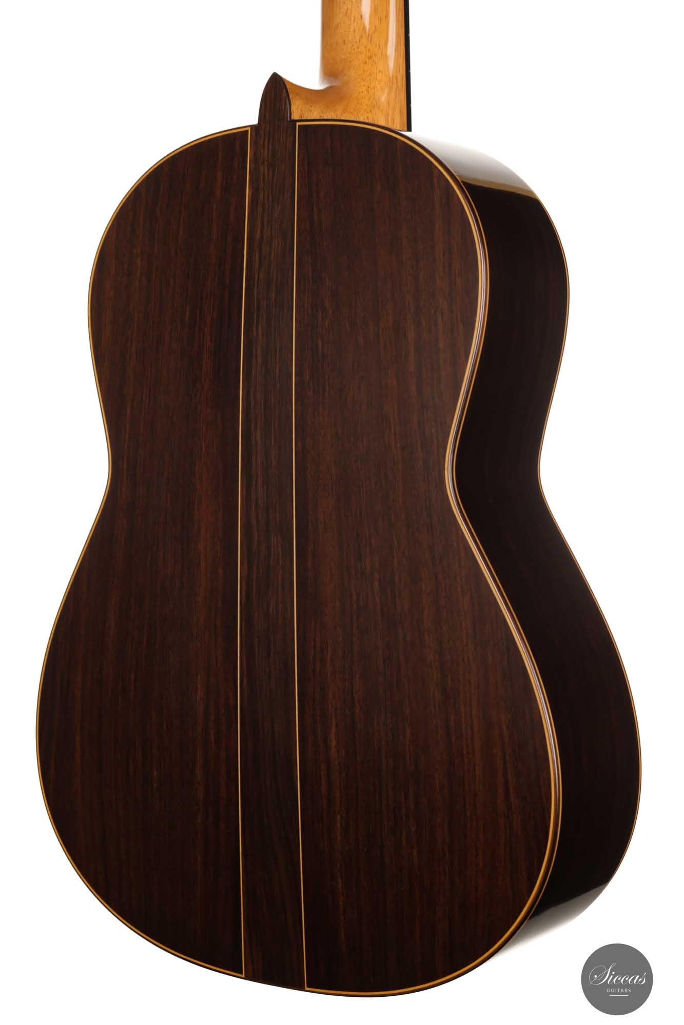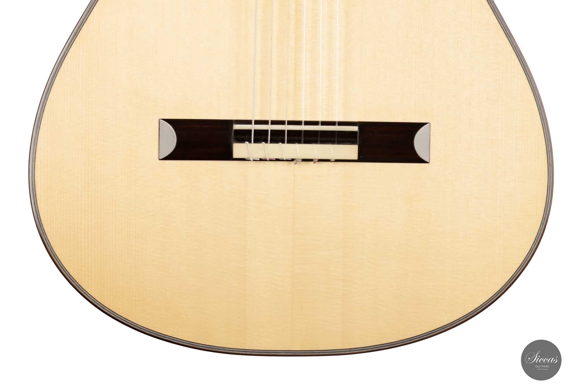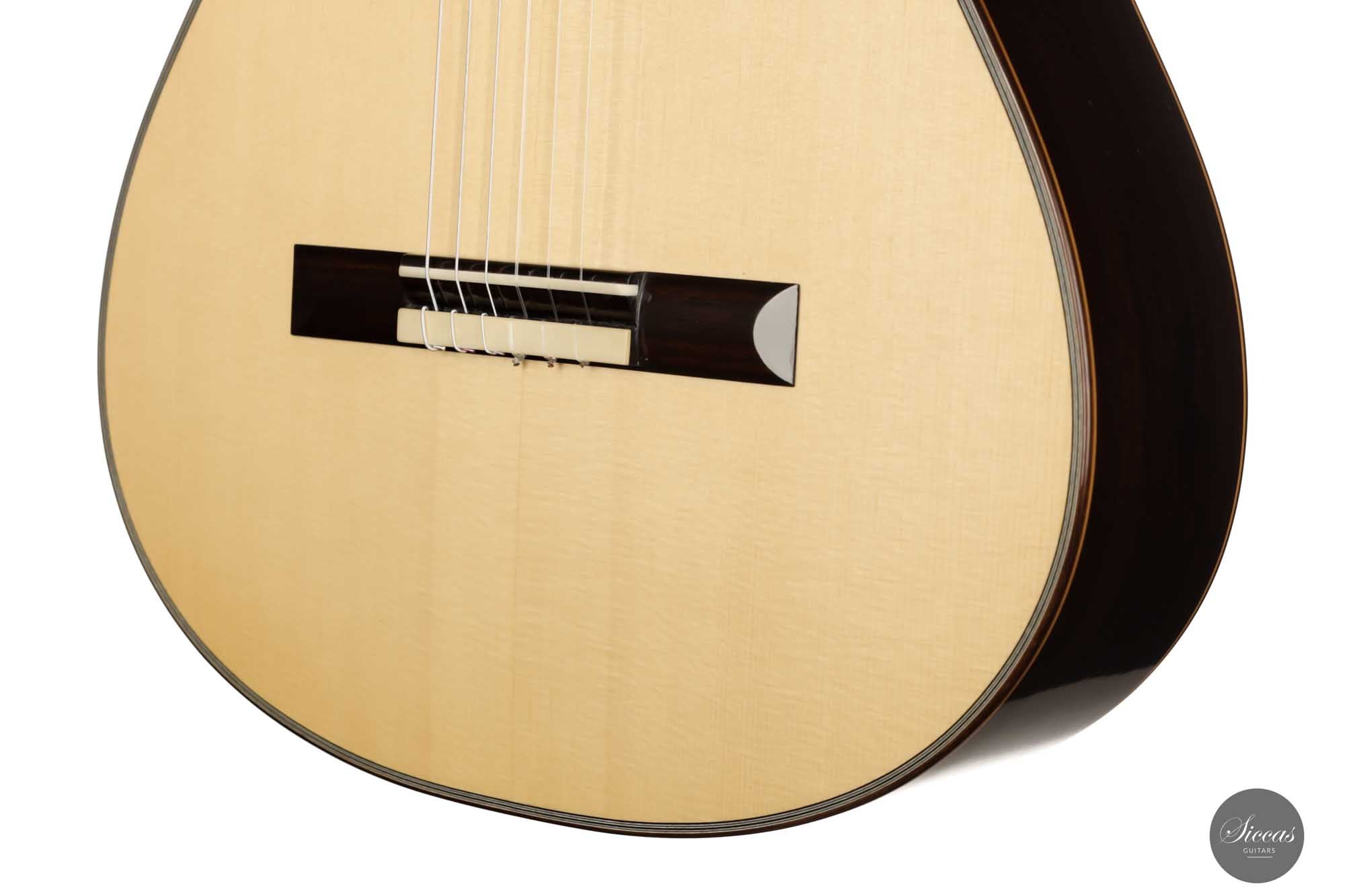 This brand-new instrument, numbered 508, is a delightful guitar in all regards. Its versatile character offers endless possibilities to the guitarist for any musical style. As a result of Christopher's incredible attention to detail, every element of this guitar has been executed to perfection. On top of this, the spruce soundboard and Indian rosewood back and sides are of first quality, and the French polish is perfect. Due to its rich tonal characteristics, this fine guitar allows the players to explore infinite tonal expressions with full support from the instrument. Christopher clearly understands how to build a guitar with excellent playability, from the comfortable neck shape to this guitar's great overall "feel" achieved by an ideal level of tension in the guitar. A sweet-sounding instrument with a huge volume that will serve any playing situation.