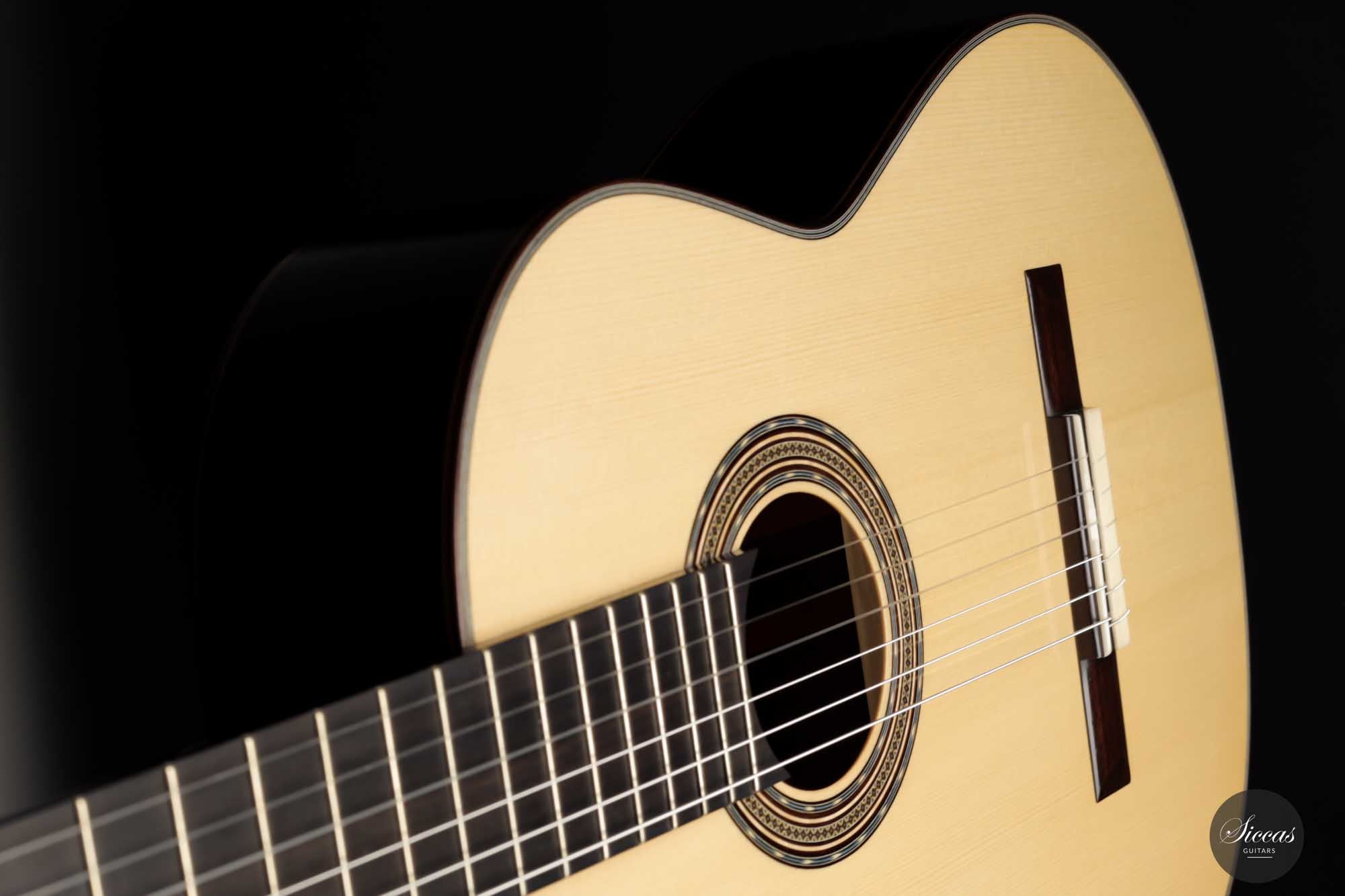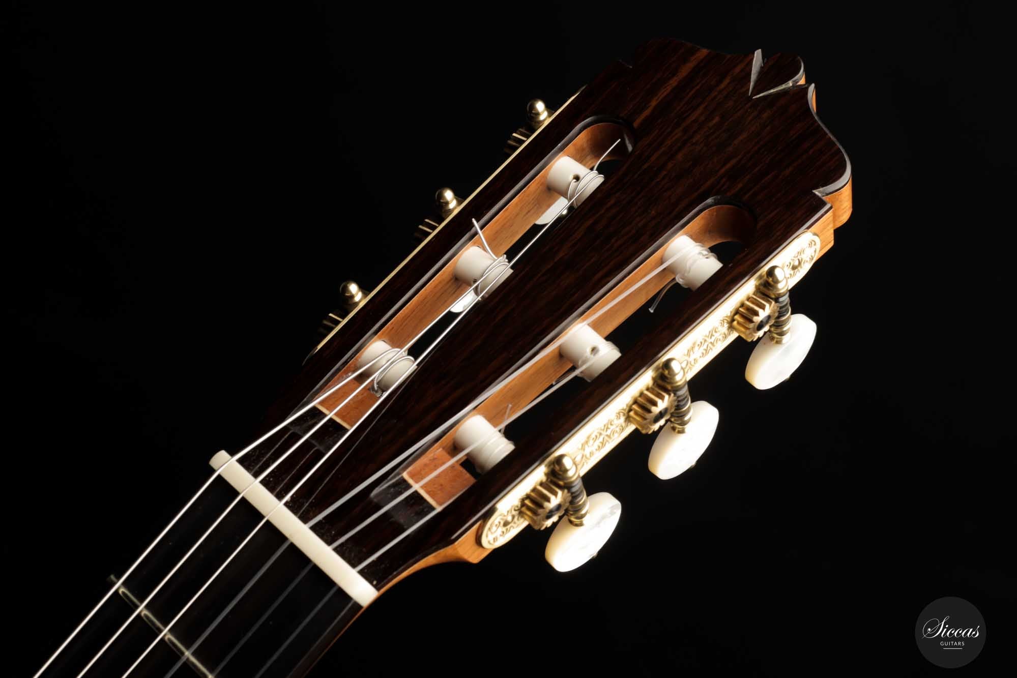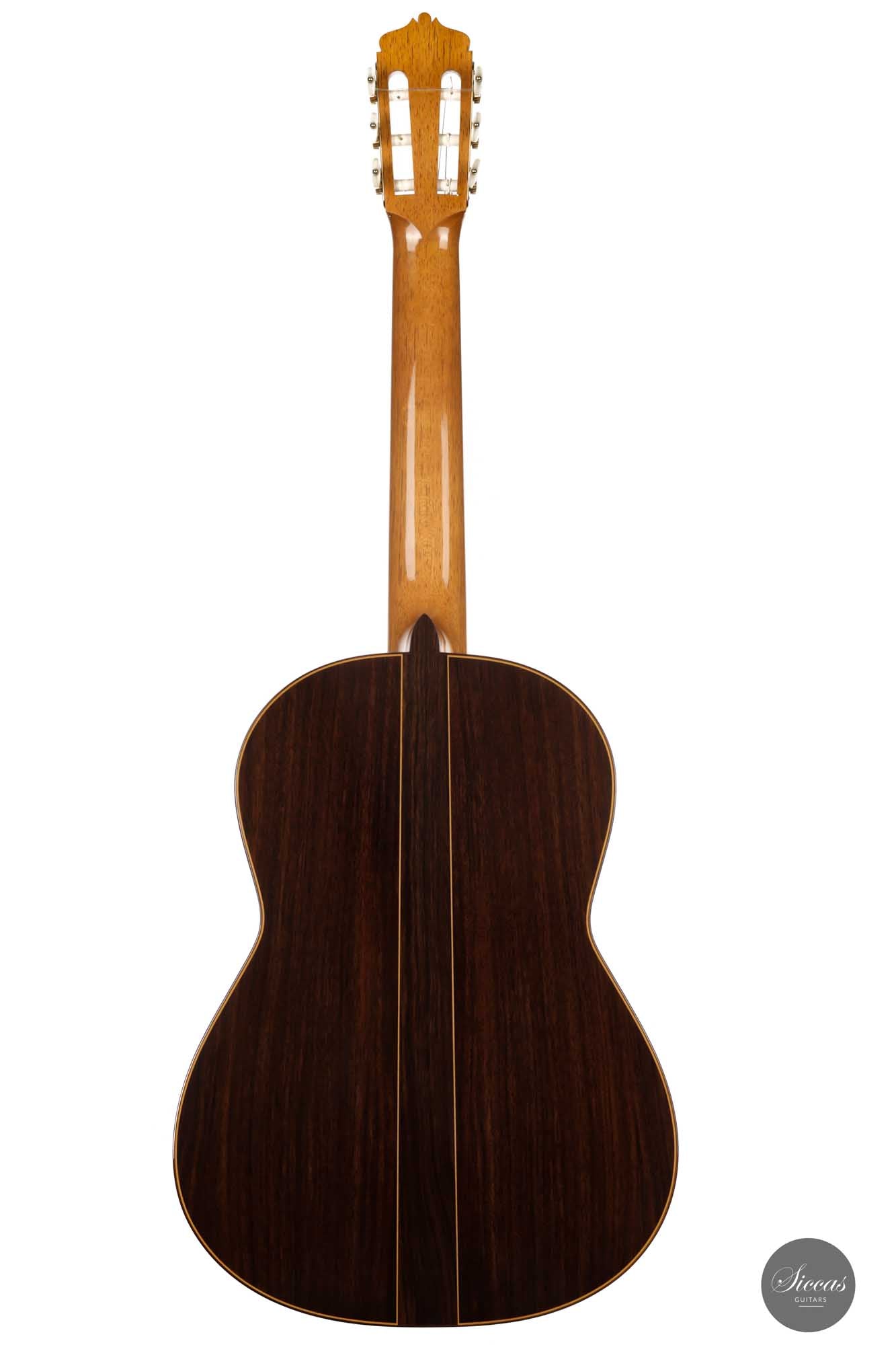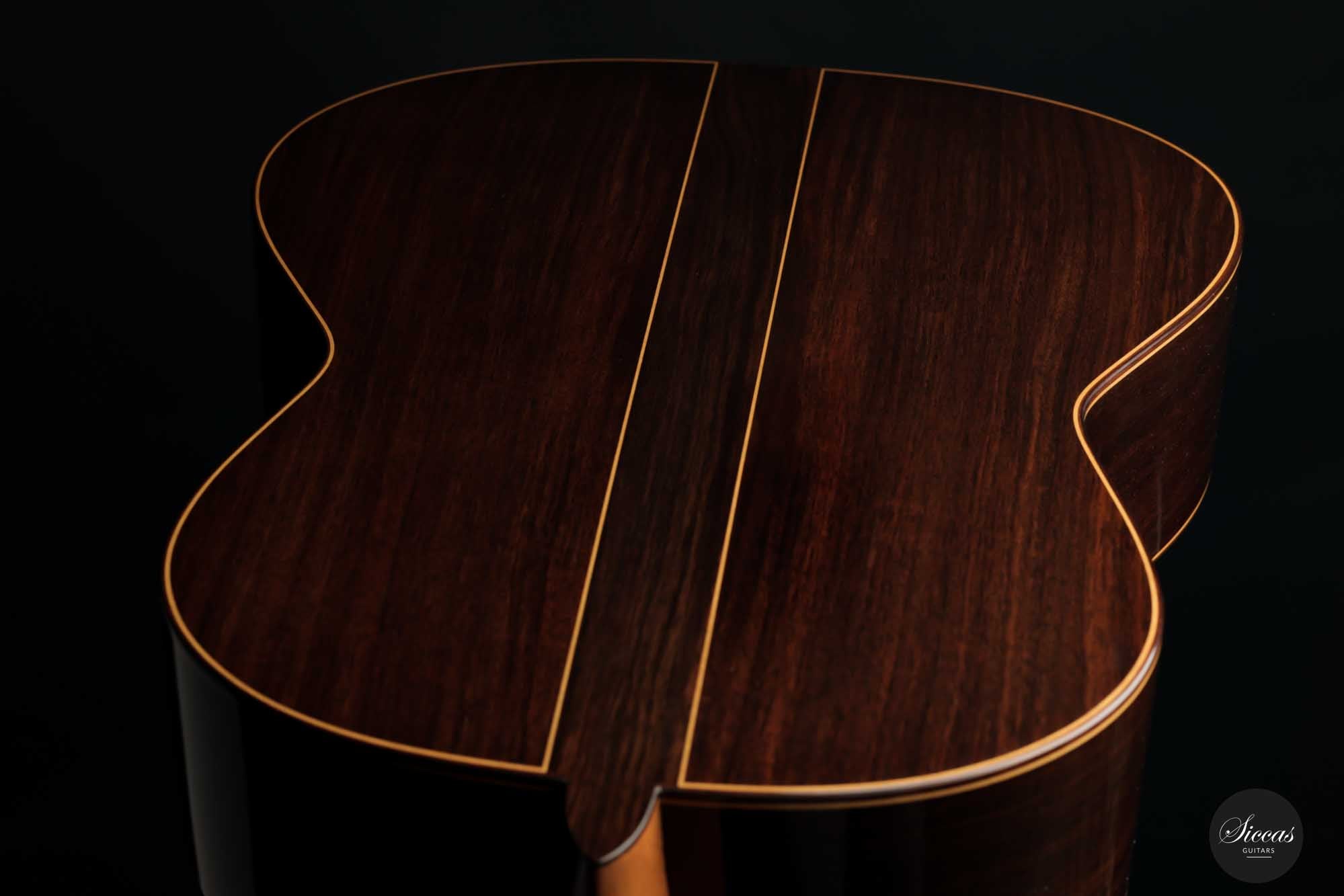 This brand-new instrument, numbered 508, is a delightful guitar in all regards. Its versatile character offers endless possibilities to the guitarist for any musical style. As a result of Christopher's incredible attention to detail, every element of this guitar has been executed to perfection. On top of this, the spruce soundboard and Indian rosewood back and sides are of first quality, and the French polish is perfect. Due to its rich tonal characteristics, this fine guitar allows the players to explore infinite tonal expressions with full support from the instrument. Christopher clearly understands how to build a guitar with excellent playability, from the comfortable neck shape to this guitar's great overall "feel" achieved by an ideal level of tension in the guitar. A sweet-sounding instrument with a huge volume that will serve any playing situation.