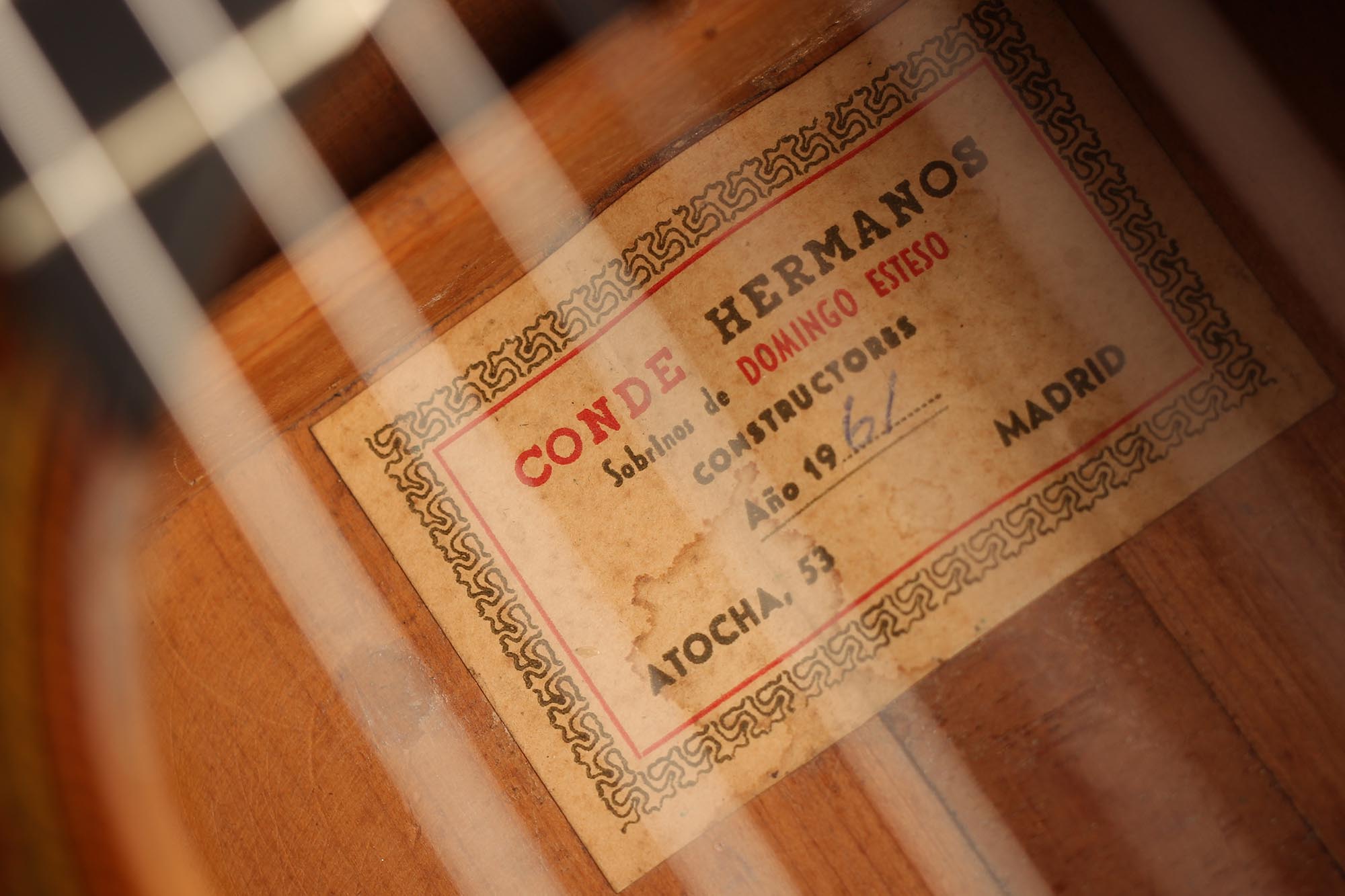 The additional name “Conde Hermanos” on the label stands for the three brothers Mariano, Faustino and Julio Conde. The greatest flamenco guitarists played their guitar, and the Conde Hermanos name is famous worldwide. Paco de Lucia, was very close to the Conde family and played almost exclusively on Conde Hermanos instruments from the 70s onwards.