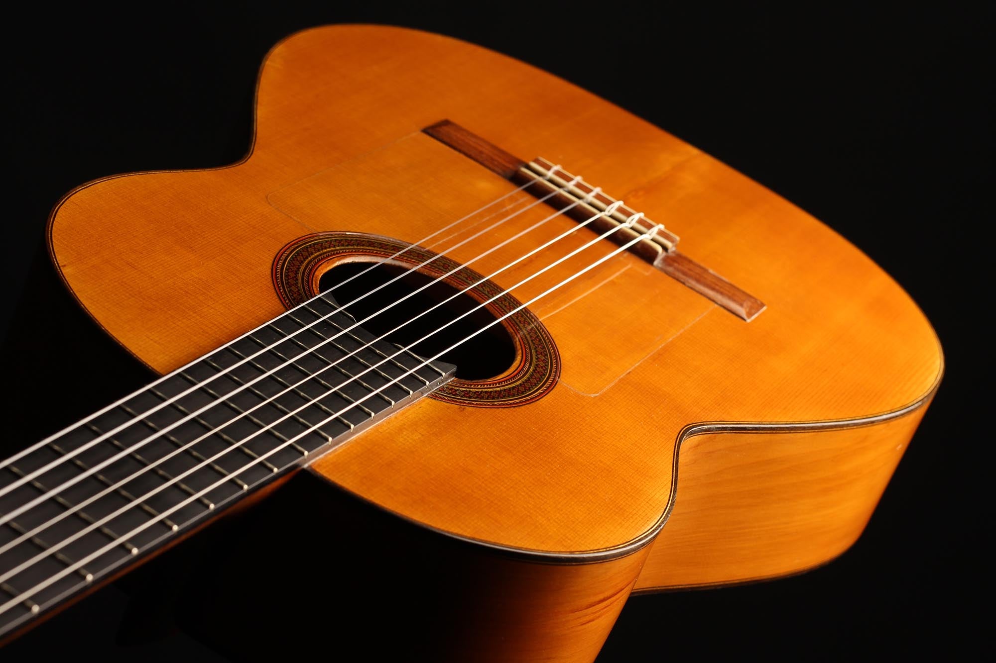 This flamenco instrument is very light with a typical Spanish sound. The response of the sound is immediate with a powerful and warm timbre. It is both percussive and very melodious, perfectly adapted to flamenco playing. It is therefore a superb vintage guitar with an impressive sound and an important history.