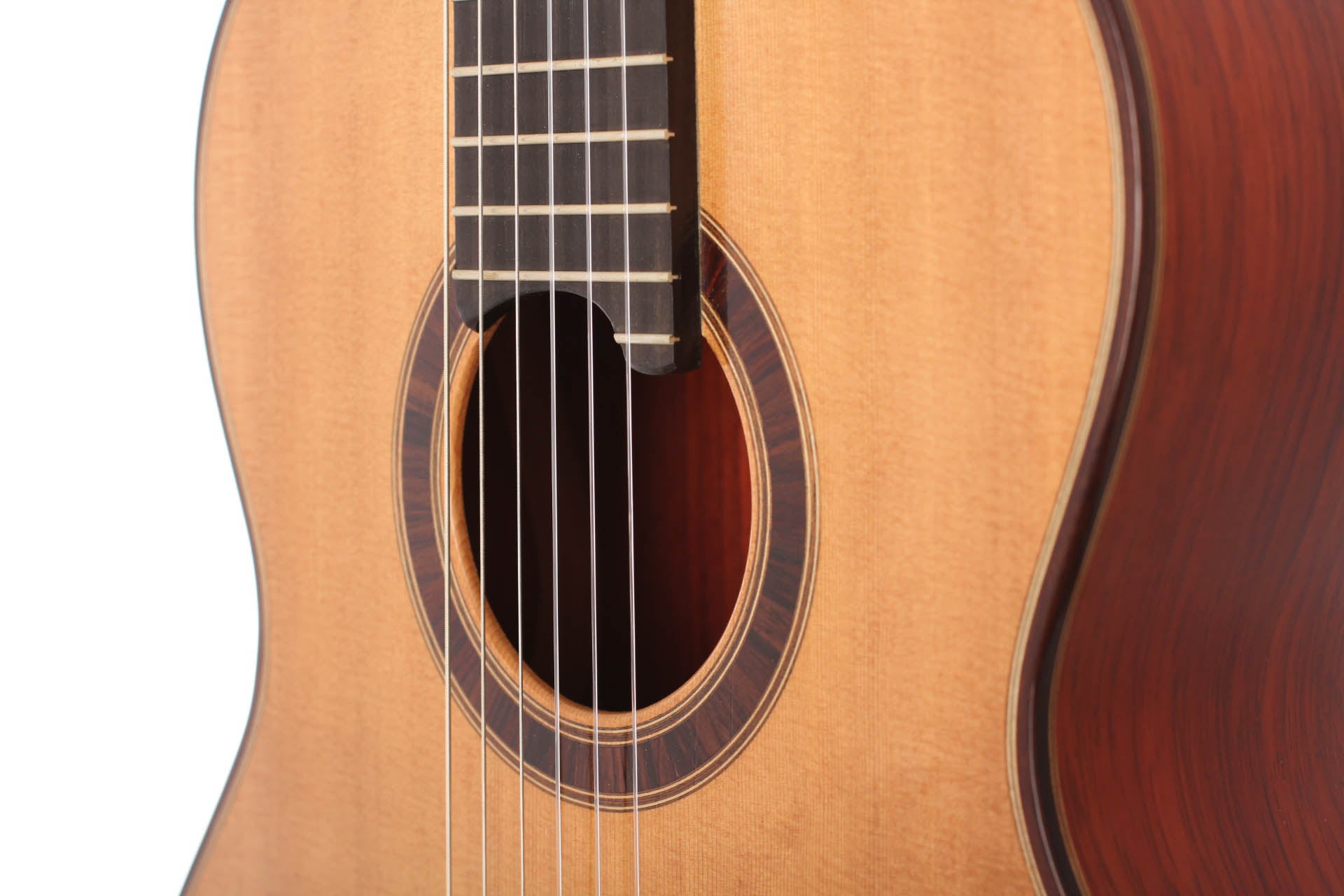Price on requestLuthier: Ignacio FletaConstruction Year: 2018Construction Type: TraditionalTop: CedarBack and Sides: Indian rosewoodSoundboard Finish: French polishBody Finish: French polishAir Body Frequency: A / A sharpWeight (g): 1850Tuner: FusteroCondition: Excellent -