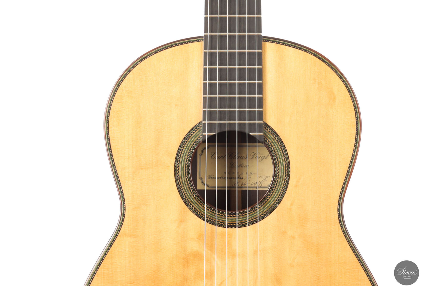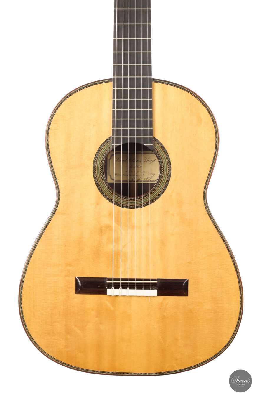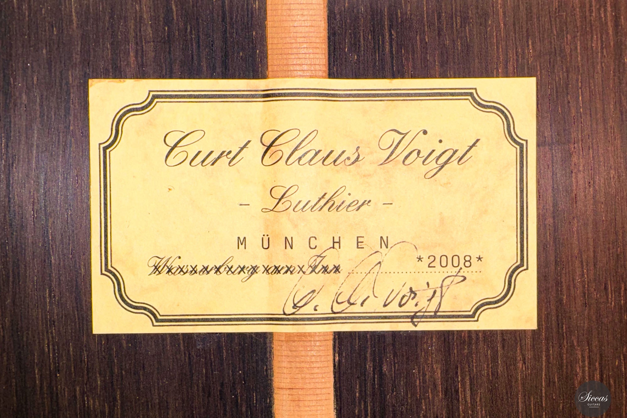 Curt Claus Voigt began his apprenticeship in Markneukirchen, at the company Marma, Karl Bauer KG, a small factory with 8-10 guitar makers, which manufactured almost all types of guitars, including classical, jazz, and Hawaiian, as well as electric guitars and basses, mandolins and banjos. He was trained by his grandfather Kurt Voigt, his father Günter Voigt, and the master violin maker Hans Zölch to deepen his understanding of historical instruments. Curt Claus passed his master’s examination in 1980 and began to work freelance as a restorer of historical plucked instruments for museums and private collectors (Grassi Museum Leipzig, Erfurt Anger Museum, City Museum Meiningen; Volkskundemuseum Teodone, Brunico, South Tyrol and others). In 1988 he took over the company Kurt Voigt & Son from his father and moved to Wasserburg am Inn, Upper Bavaria. Curt Claus continued his education through workshops with Jose Romanillos (in 1991 and 1994) and with numerous studies of historic instruments in museums and private collections throughout France, England, Czech Republic, Austria, Italy and Spain.About the guitar