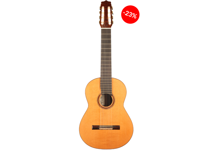 The classical guitar, with its soft nylon strings and characteristic timbre, has become a symbol of chamber music, Spanish tradition, and concert repertoire. Its modern form was shaped by Antonio de Torres in the 19th century, setting the standard for the body, fan bracing, and the 65-centimeter scale length that are still used today. Instruments in this category open up a rich palette from the refined Romantic miniatures of Tárrega to the majestic concertos of Rodrigo. Here you will find guitars that preserve historical continuity and at the same time inspire new interpretations.Look all products of the collection -