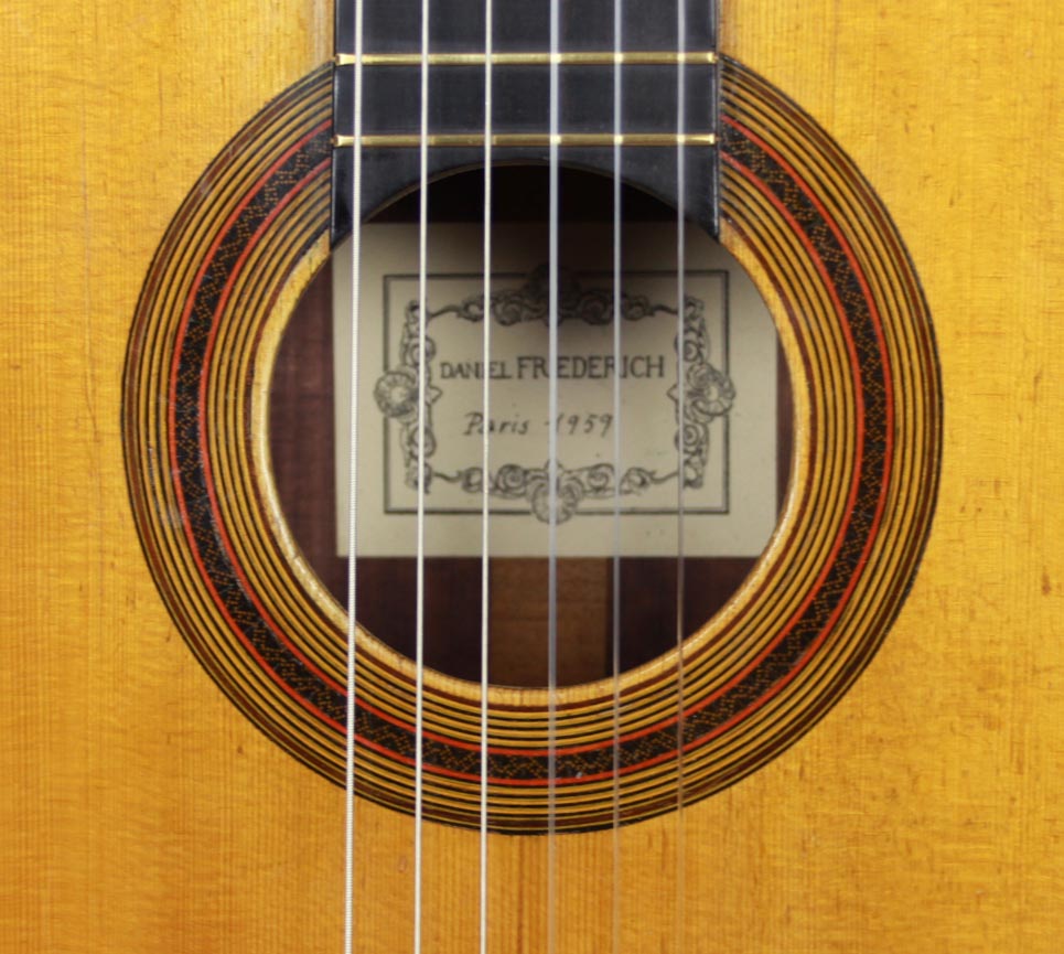 Daniel Friederich was born on January 16, 1932. Although having the strong wish to play guitar, he had to face the shortage of money. However, at the age of 23, Friederich solved this dilemma by building his first guitar himself with the result of a copy of a Simplicio guitar. At the beginning Friederich was helped by his guitar teacher Aubin. Also after the early beginnings of guitar making, Friederich was inspired by the work of his friend Robert Bouchet whose ideas were also further developed by Friederich. For decades, Daniel Friederich has been one of the most important luthiers in the world. In 2015 he stopped to build guitars and sold all his tools.
