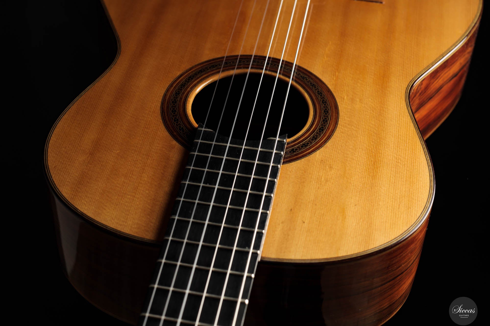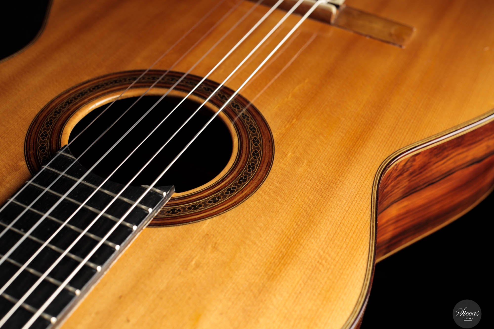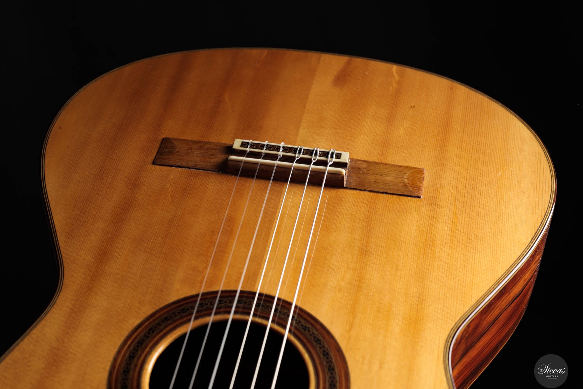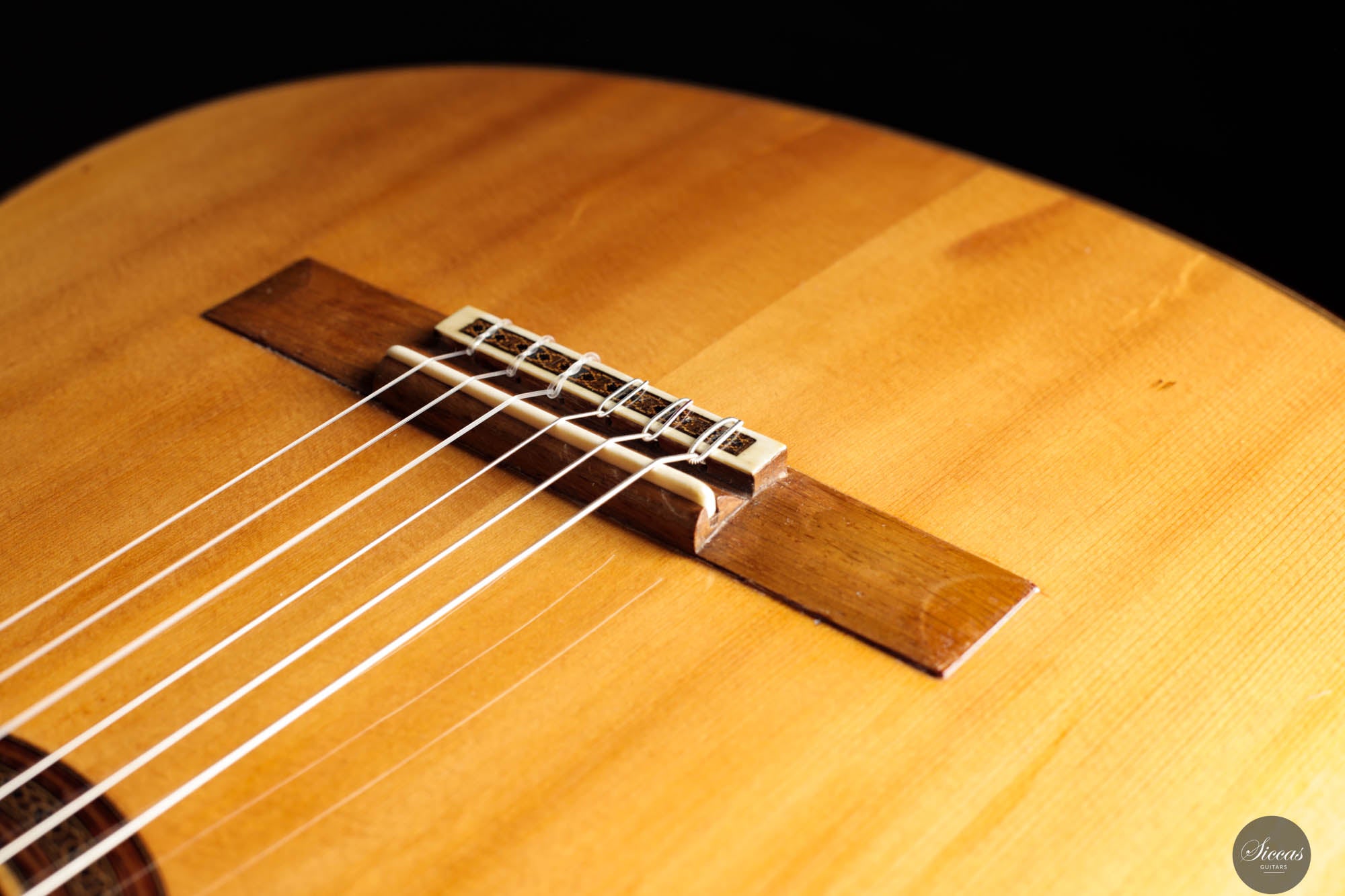 This instrument has been professionally restored and is now in perfect playing condition. The spruce top, with its beautiful grain, is free of cracks or weak spots. A repaired crack on one of the sides is considered stable. The fretboard has been refretted, and the heel block has been reinforced to provide better support for the neck. Finally, the guitar has been repolished with nitrocellulose. The Récital models of the 1960s, known for their refined features and tonal clarity, reflect Friederich’s evolving craftsmanship, making this guitar a testament to his enduring influence in the art of luthiery.