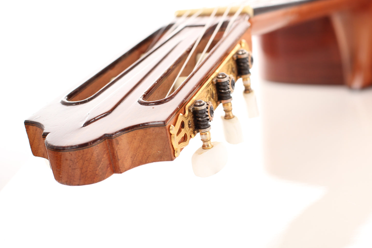 Price on requestSaleLuthier: Hermann Hauser IIConstruction Year: 1956Construction Type: TraditionalTop: SpruceBack and Sides: Brazilian rosewood (CITES certified)Soundboard Finish: French polishBody Finish: French polishAir Body Frequency: F sharp / GWeight (g): 1440Tuner: LandstorferCondition: Excellent -