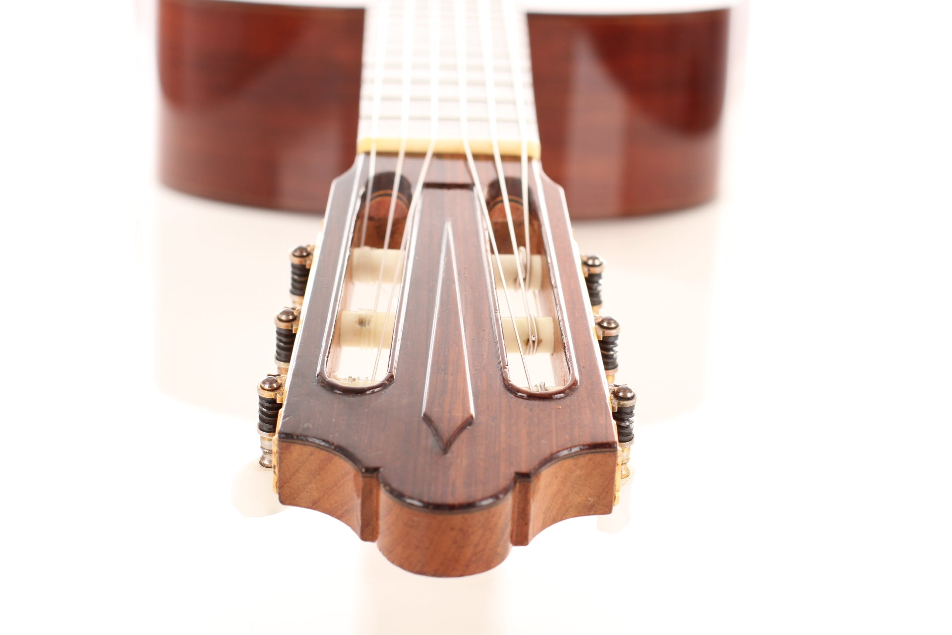 Luthier: José Luis RomanillosConstruction Year: 1979Construction Type: TraditionalTop: SpruceBack and Sides: Indian rosewoodSoundboard Finish: French polishBody Finish: French polishAir Body Frequency: G / G sharpWeight (g): 1410Tuner: Klaus SchellerCondition: Excellent