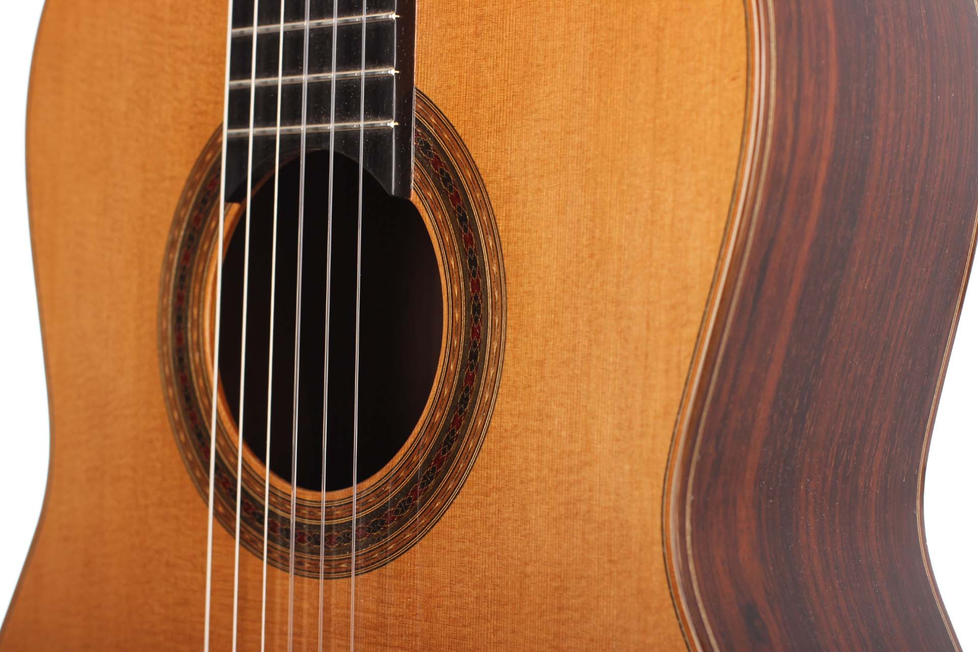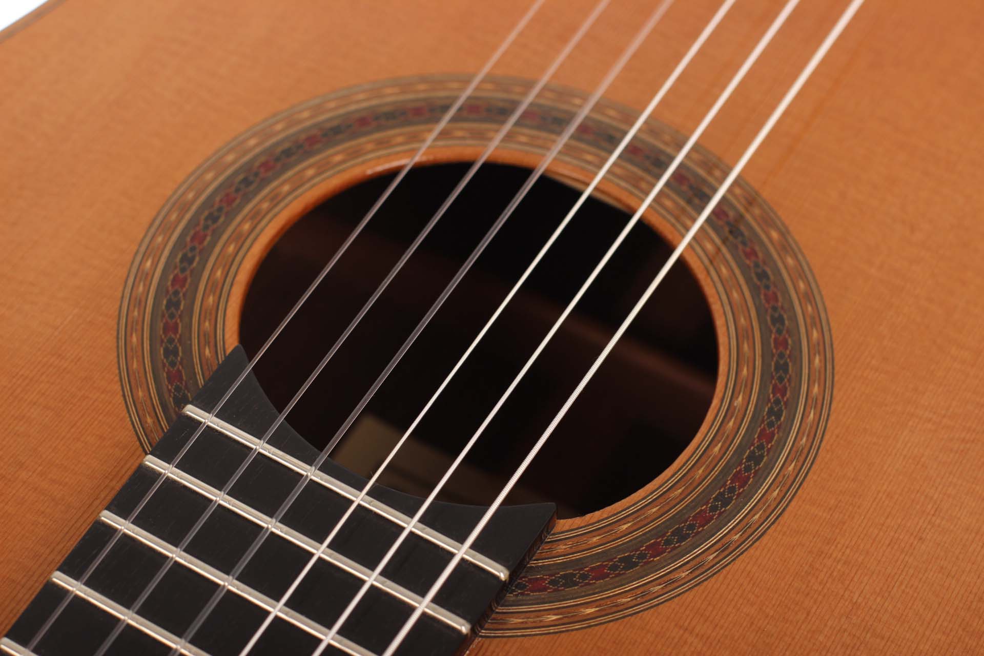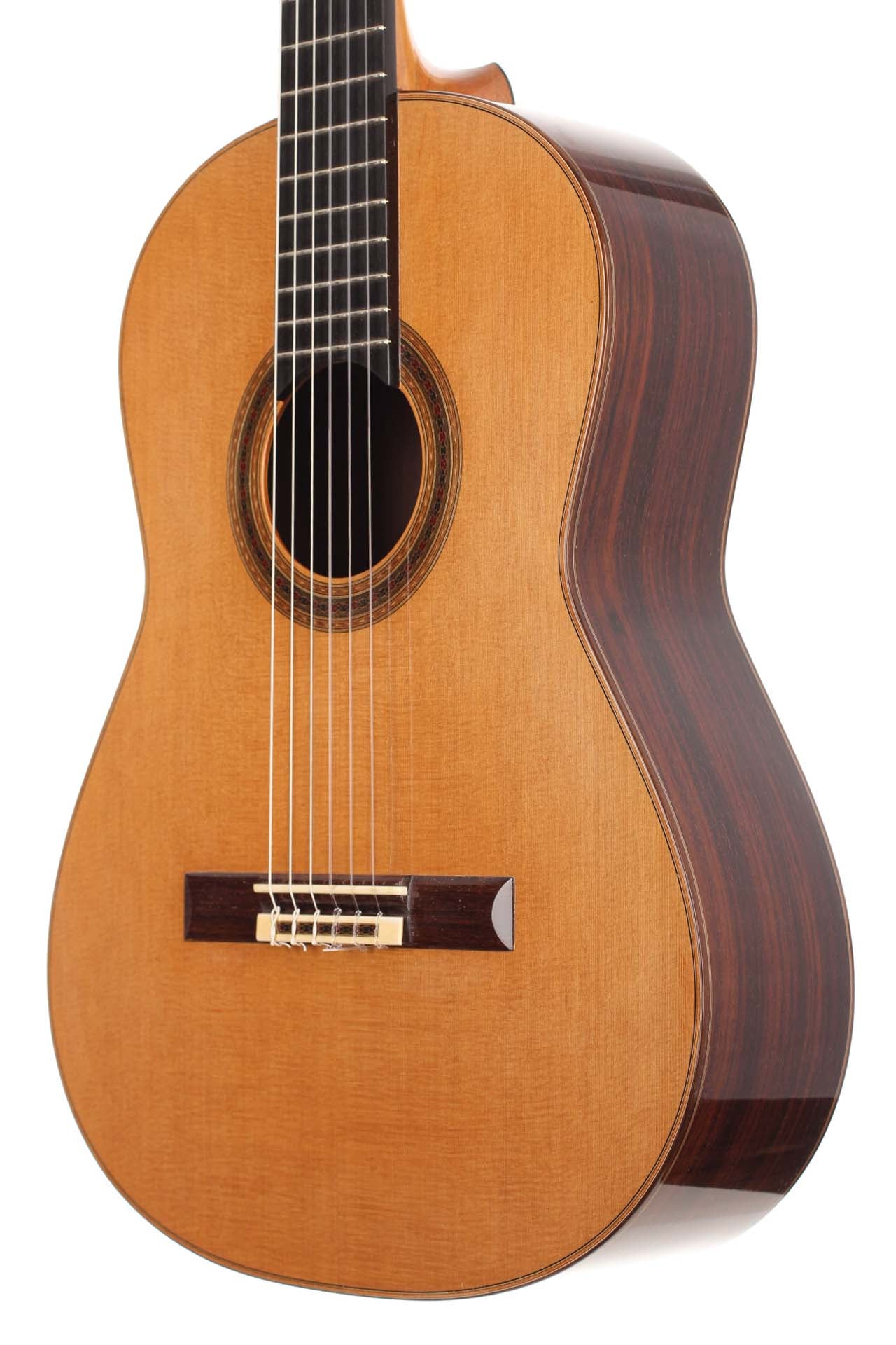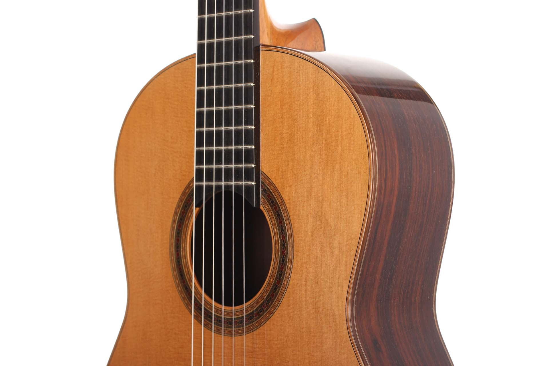 At the beginning of his career as a luthier he built some spruce top guitars, which changed in the 1970’s when he started to devote himself mainly to the construction of guitars with a cedar top. This guitar was made by Friederich in 1985 and has no cracks or repairs. The tone is very rich tone of cedar and at the same time the clarity and the sustain of spruce. The original tuners are made by Fustero. A hardshell case is included.