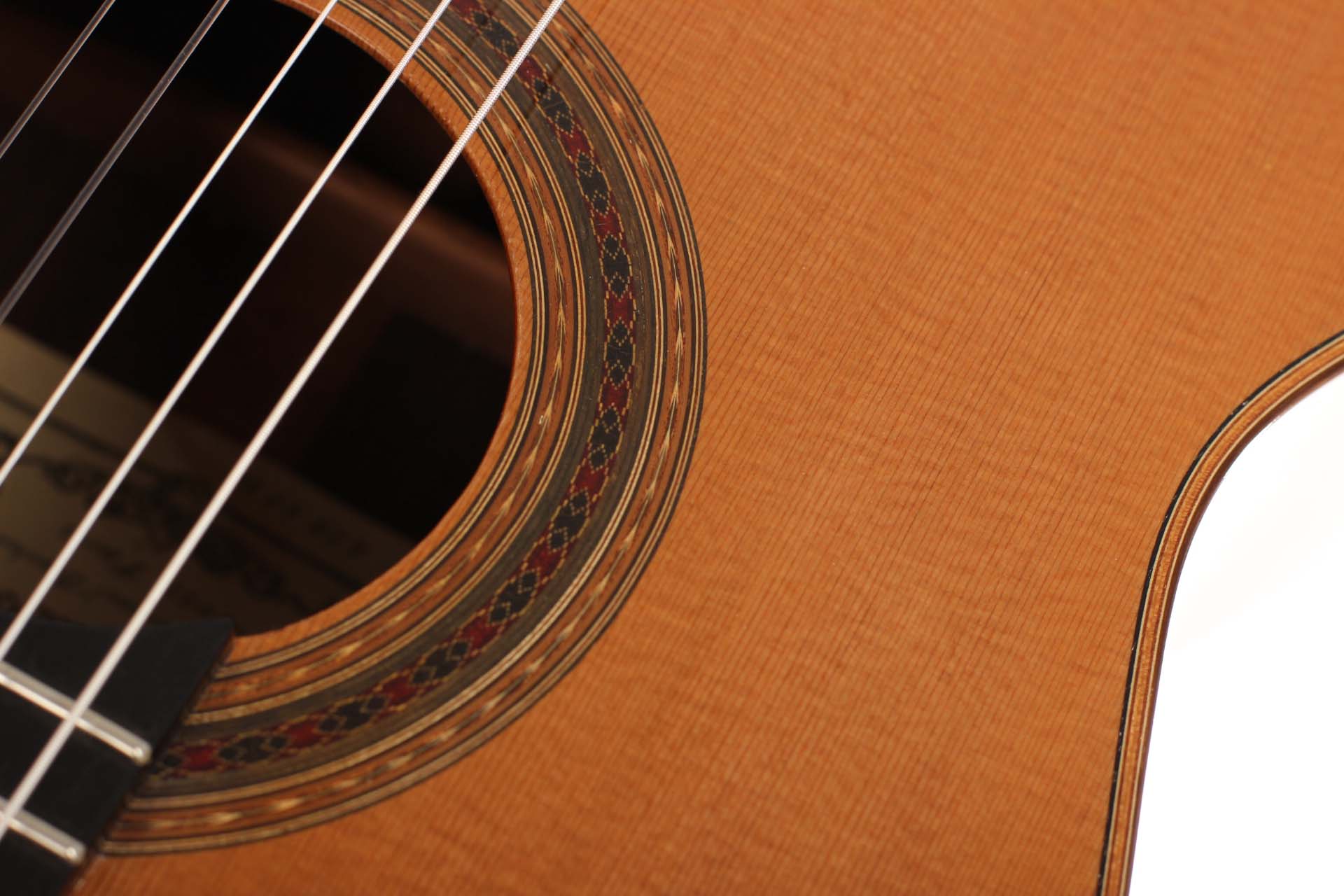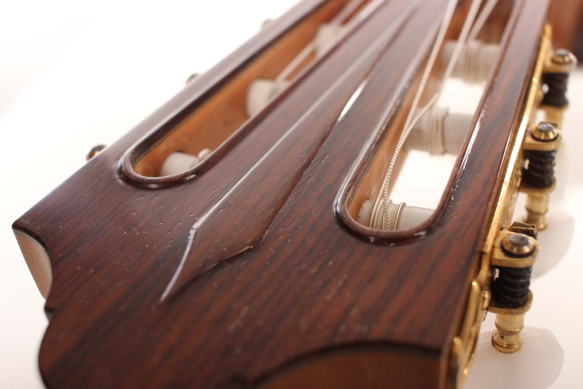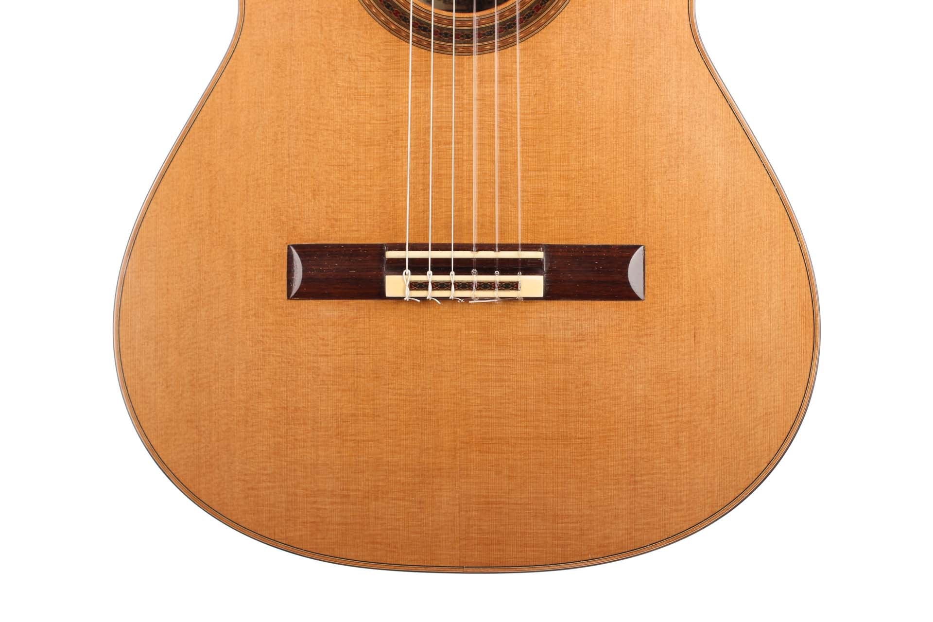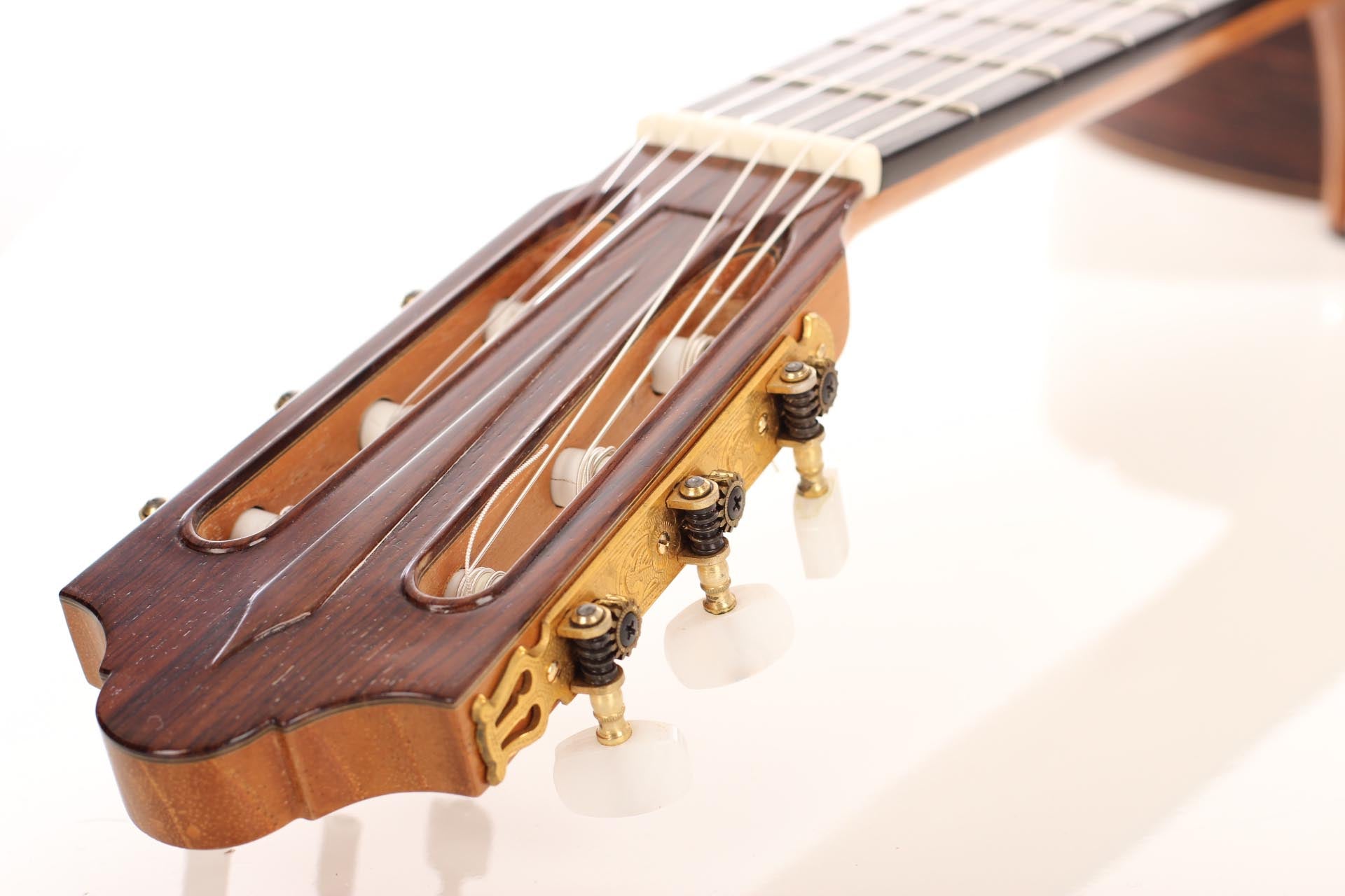 At the beginning of his career as a luthier he built some spruce top guitars, which changed in the 1970’s when he started to devote himself mainly to the construction of guitars with a cedar top. This guitar was made by Friederich in 1985 and has no cracks or repairs. The tone is very rich tone of cedar and at the same time the clarity and the sustain of spruce. The original tuners are made by Fustero. A hardshell case is included.