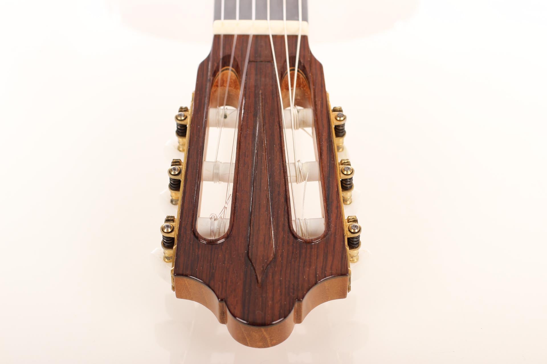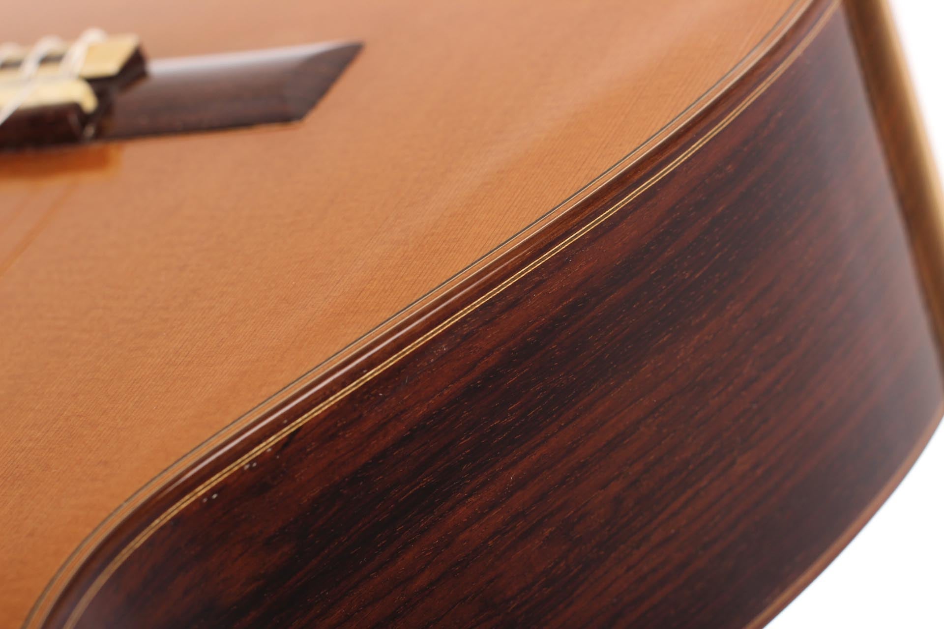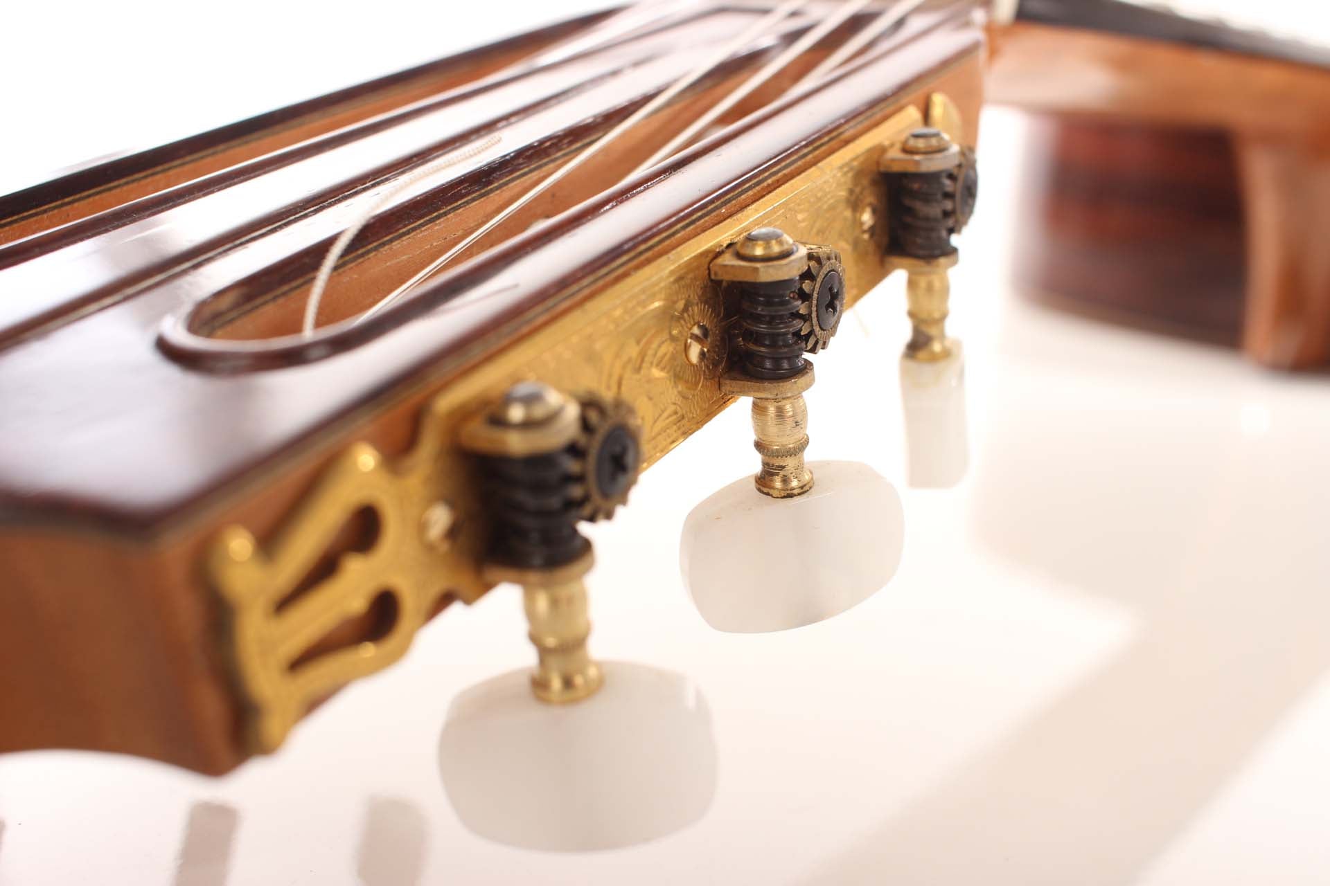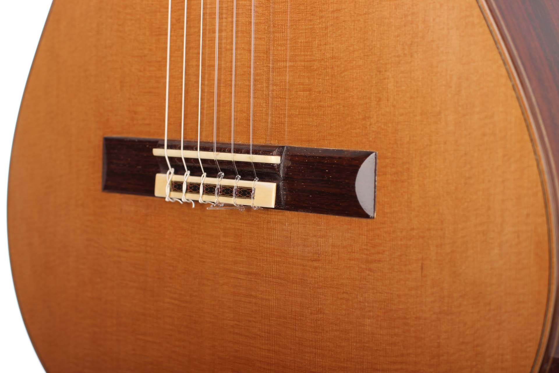At the beginning of his career as a luthier he built some spruce top guitars, which changed in the 1970’s when he started to devote himself mainly to the construction of guitars with a cedar top. This guitar was made by Friederich in 1985 and has no cracks or repairs. The tone is very rich tone of cedar and at the same time the clarity and the sustain of spruce. The original tuners are made by Fustero. A hardshell case is included.
