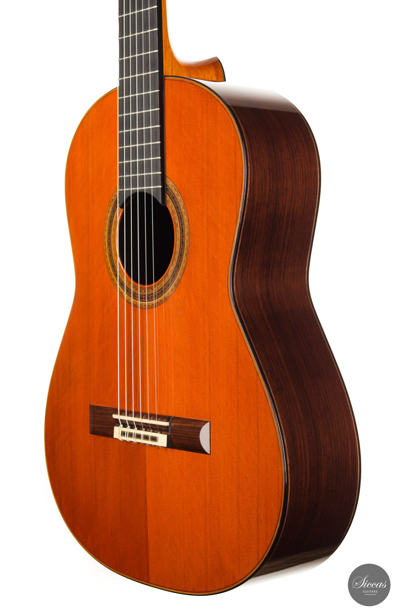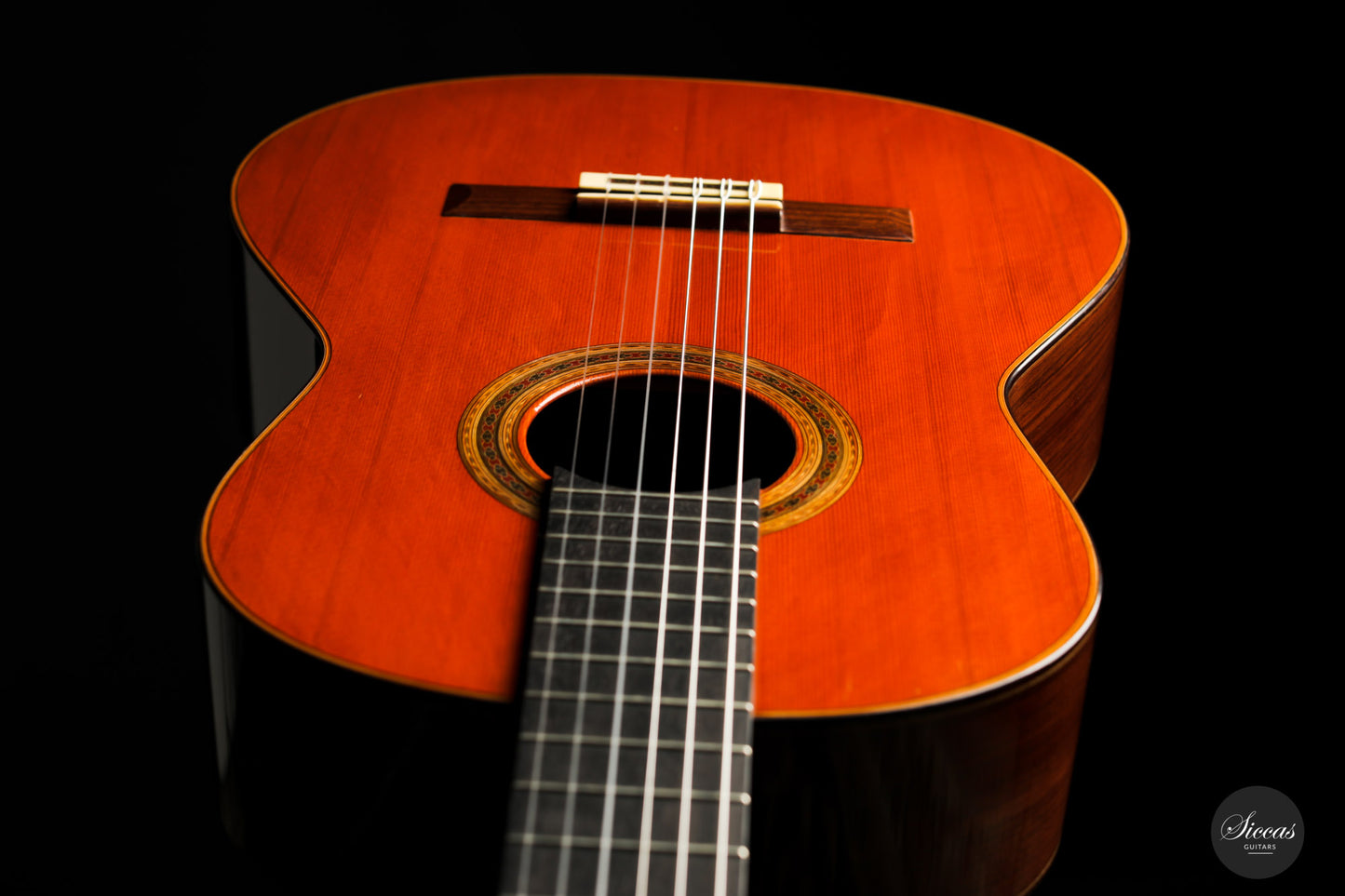 This guitar number 657 is an unbelievable instrument in close to pristine condition built by Daniel Friederich in 1989. Coming straight from the first owner's family, it a unique chance to acquire a first-hand instrument from the legendary Parisian luthier. The end of the 80s is for sure the most sought-after period of Daniel Friederich's production. He brought his concept at the peak of its maturity in this era: building light-weight, highly responsive, and dramatically colorful cedar guitars that are now acknowledged as being the supreme concert instrument.
