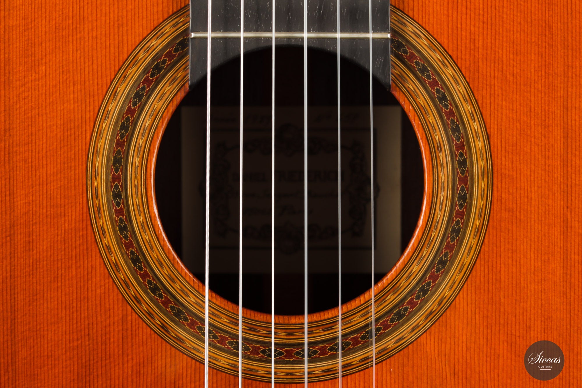 Daniel Friederich was born on the sixteenth of January 1932. Although he had a strong desire to play the guitar, he lacked money. But at the age of 23, Friederich solved this dilemma by building his first guitar himself: a copy of a Simplicio guitar. Daniel’s guitar teacher and excellent guitar maker, Christian Aubin, was a great help to him. After building tools and gaining some experience in guitar making, Daniel Friederich showed his fifteenth guitar to Robert Bouchet. Since then, Robert Bouchet has inspired his work, and Daniel Friederich has personally developed some of R. Bouchet’s ideas throughout his career.