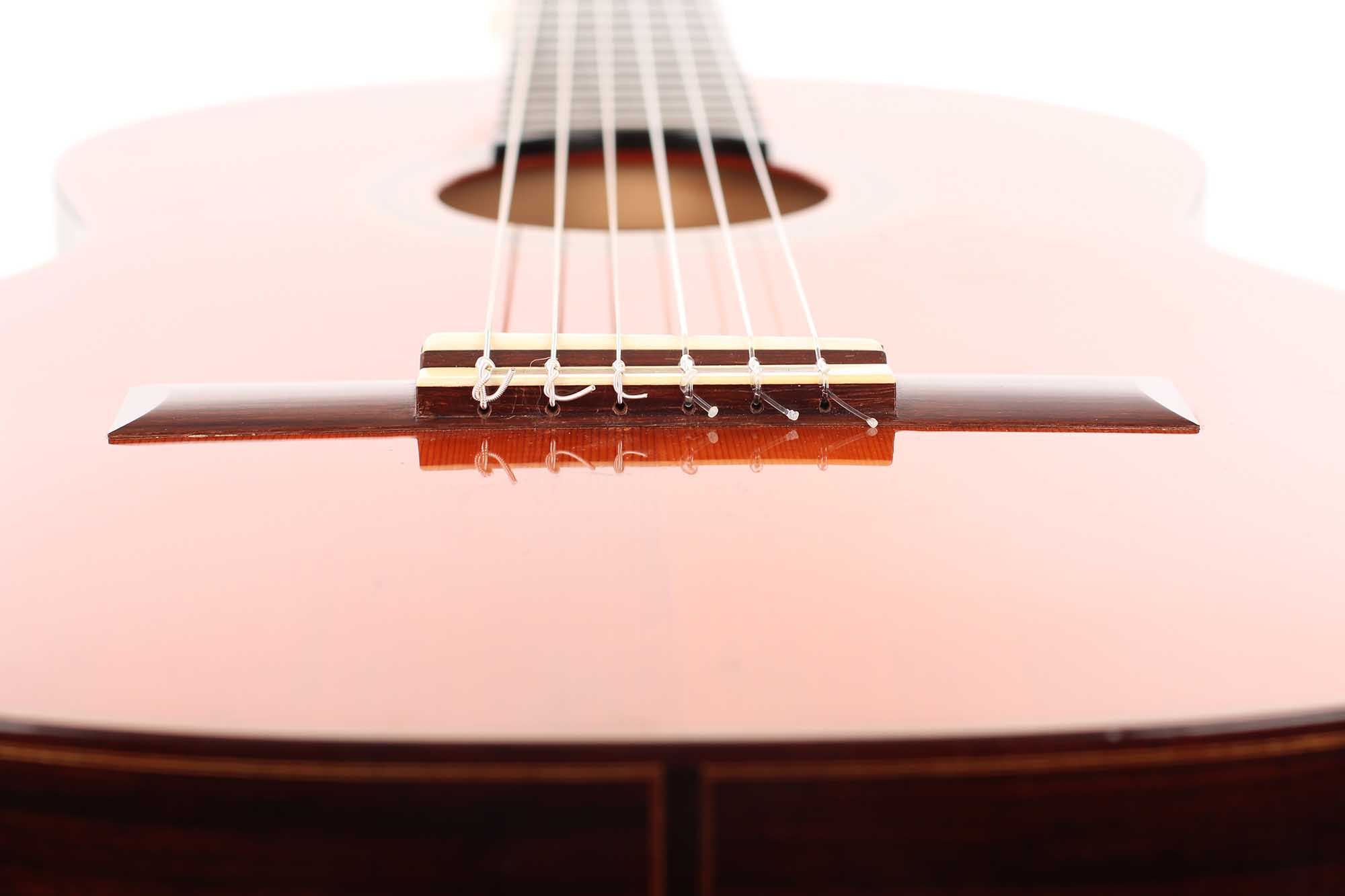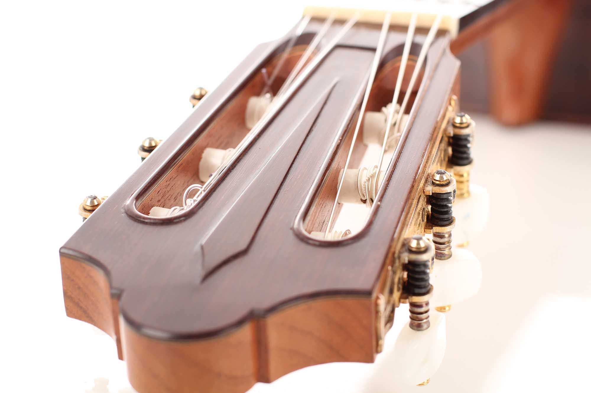 At the beginning of his career as a luthier he built some spruce top guitars, which changed in the 1970’s when he started to devote himself mainly to the construction of guitars with a cedar top. This cedar top guitar was made by Friederich in 1990. The guitar has no cracks or repairs. On the top you can find some marks. The tone is very rich tone of cedar and at the same time the clarity and the sustain of spruce. The original tuners are made by Fustero.