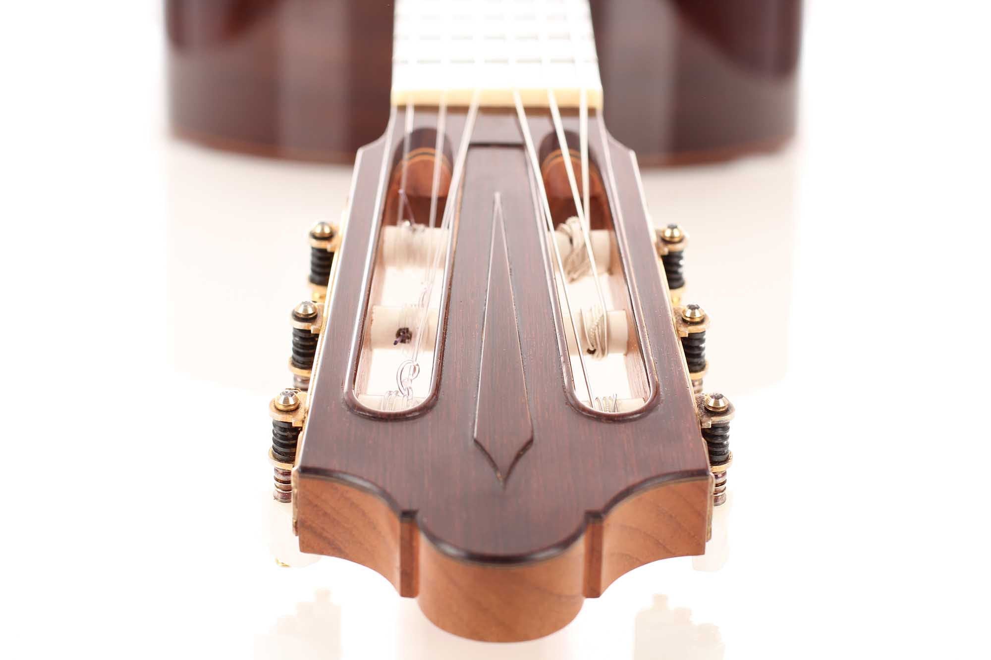 Price on requestLuthier: Fritz OberConstruction Year: 2019Construction Type: TraditionalTop: SpruceBack and Sides: Brazilian rosewood (CITES certified)Soundboard Finish: French polishBody Finish: French polishAir Body Frequency: C sharp / DWeight (g): 1345Tuner: Klaus SchellerCondition: Excellent -