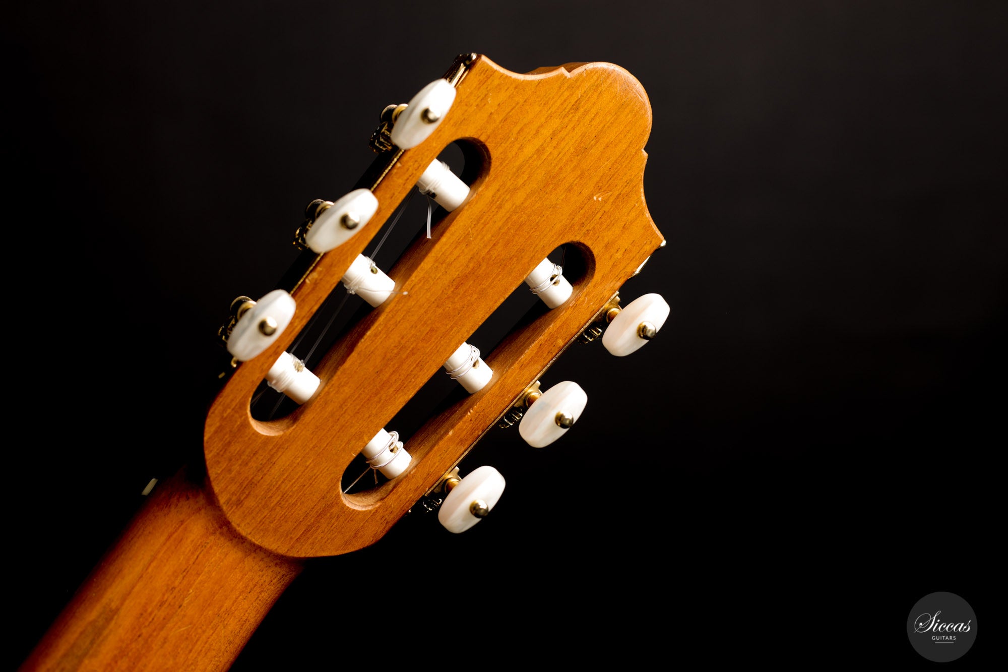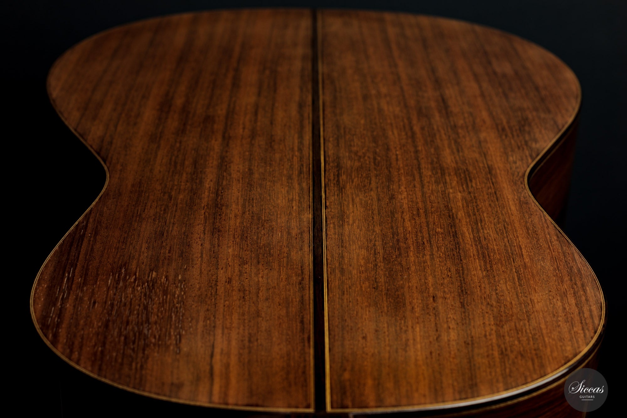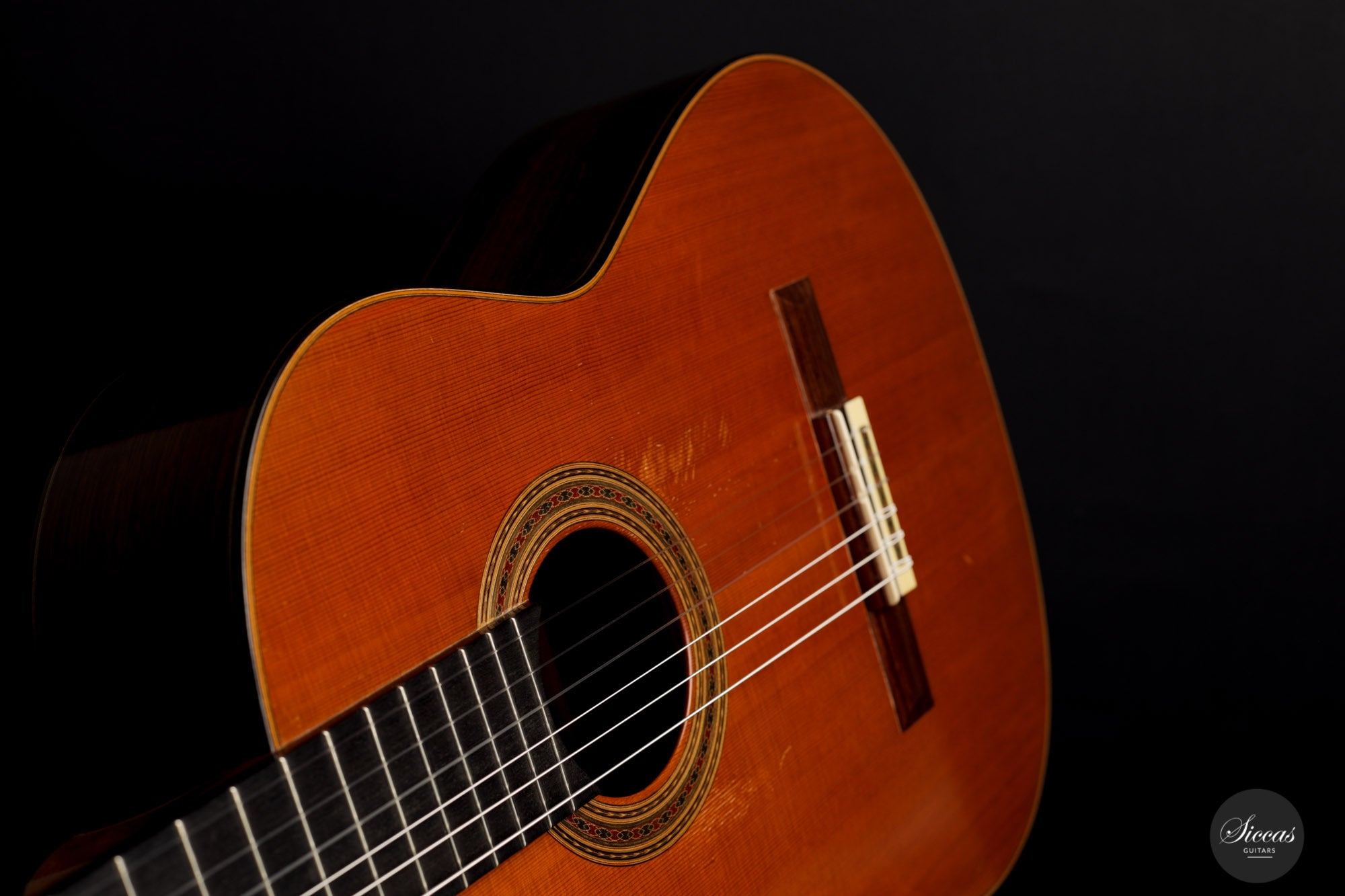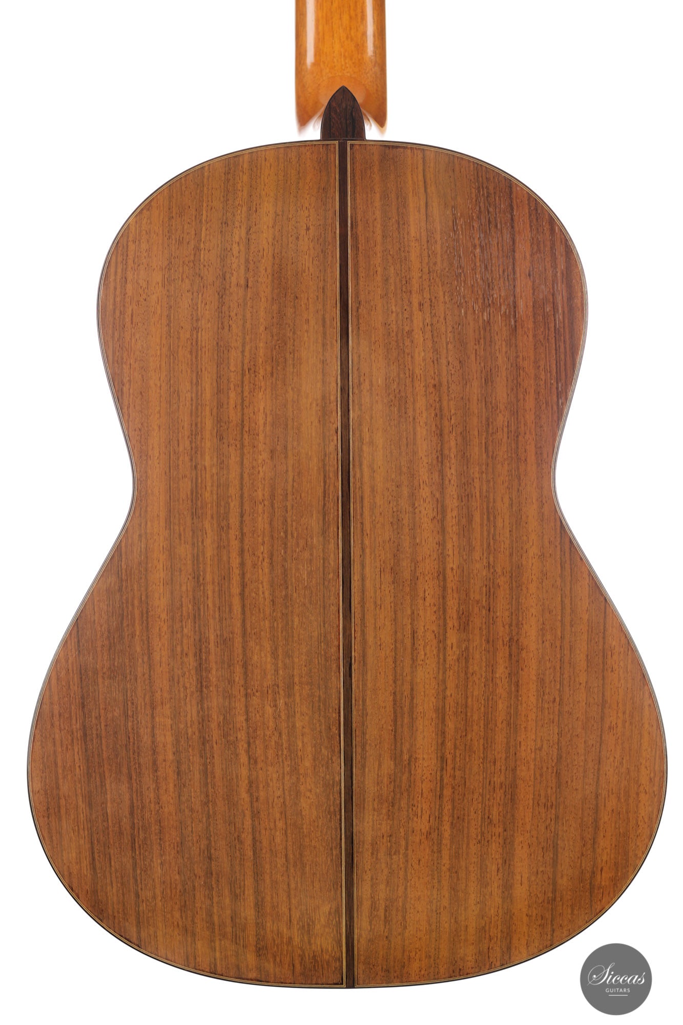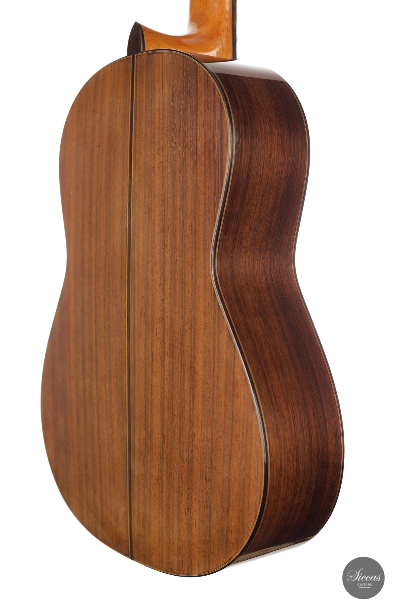 This guitar number 705, built in 1993, is a wonder of spontaneity, openness, and emotion. This sound masterpiece is in very good condition with only a tiny hairline crack on the lower bout of the soundboard, perfectly stable and hardly noticeable. No description can do justice to the quality of sound and charm of this guitar. Suffice to say that it is impeccable.