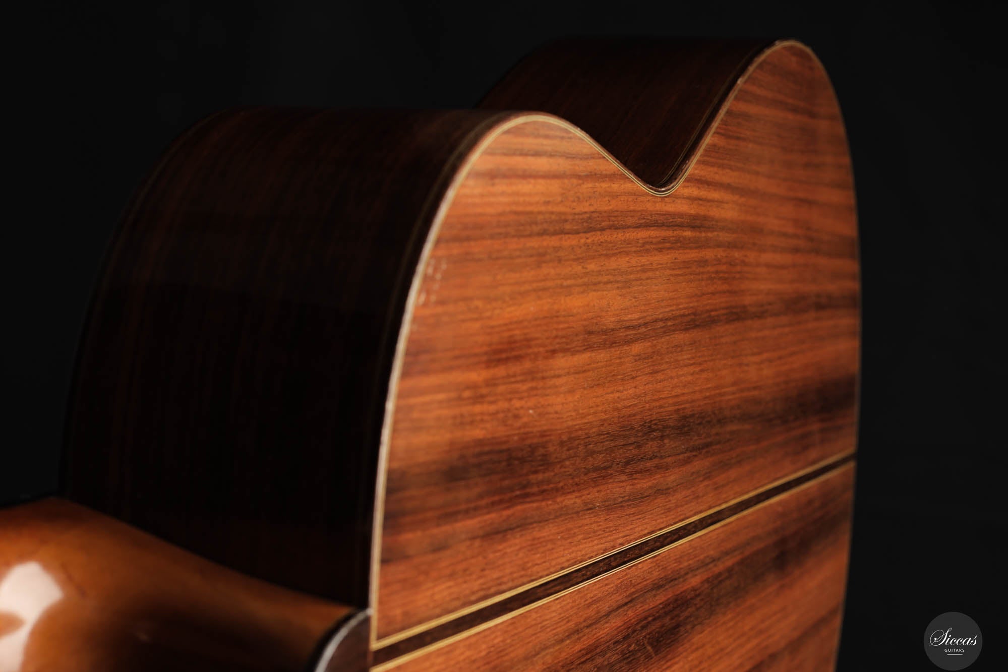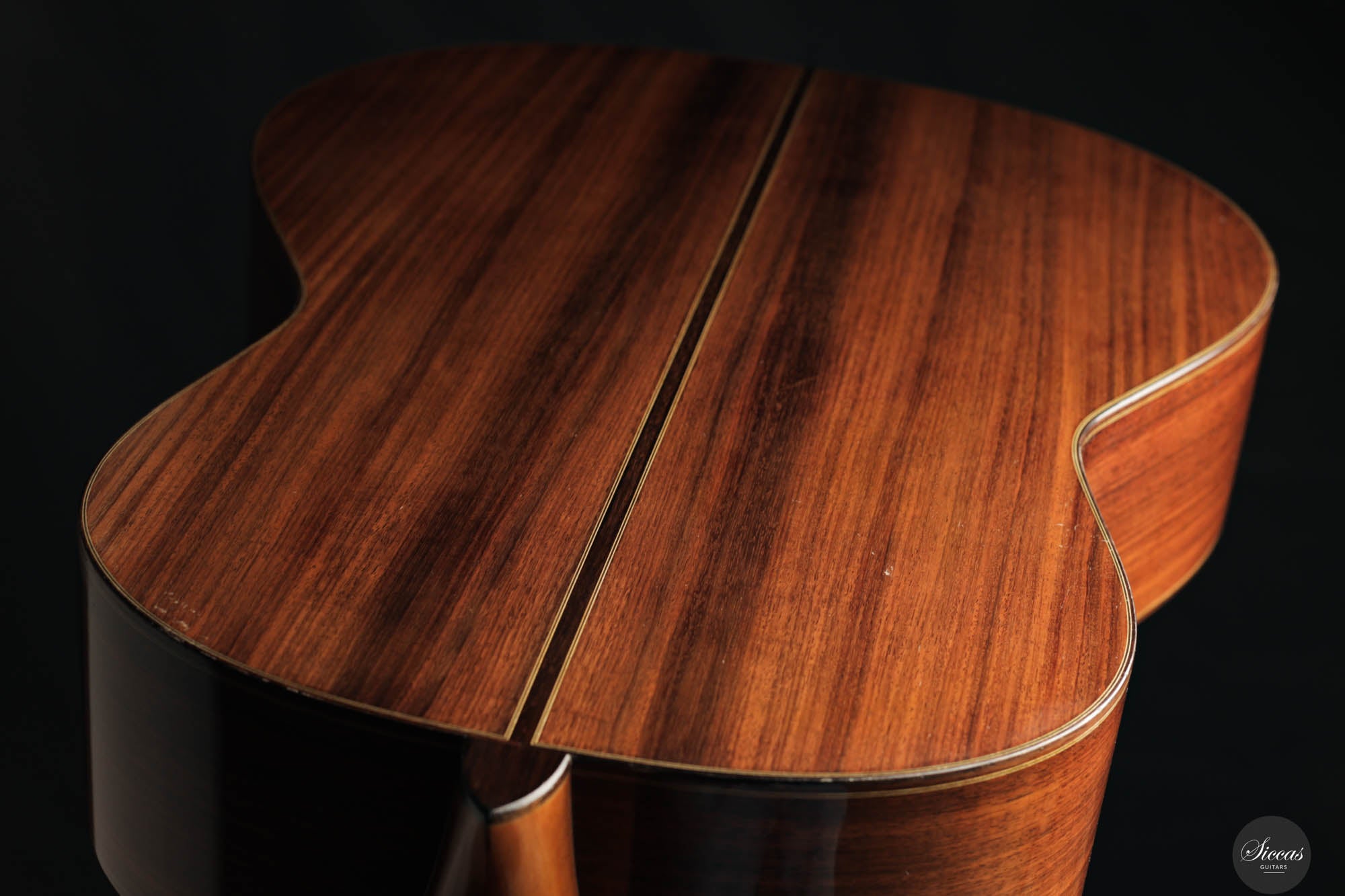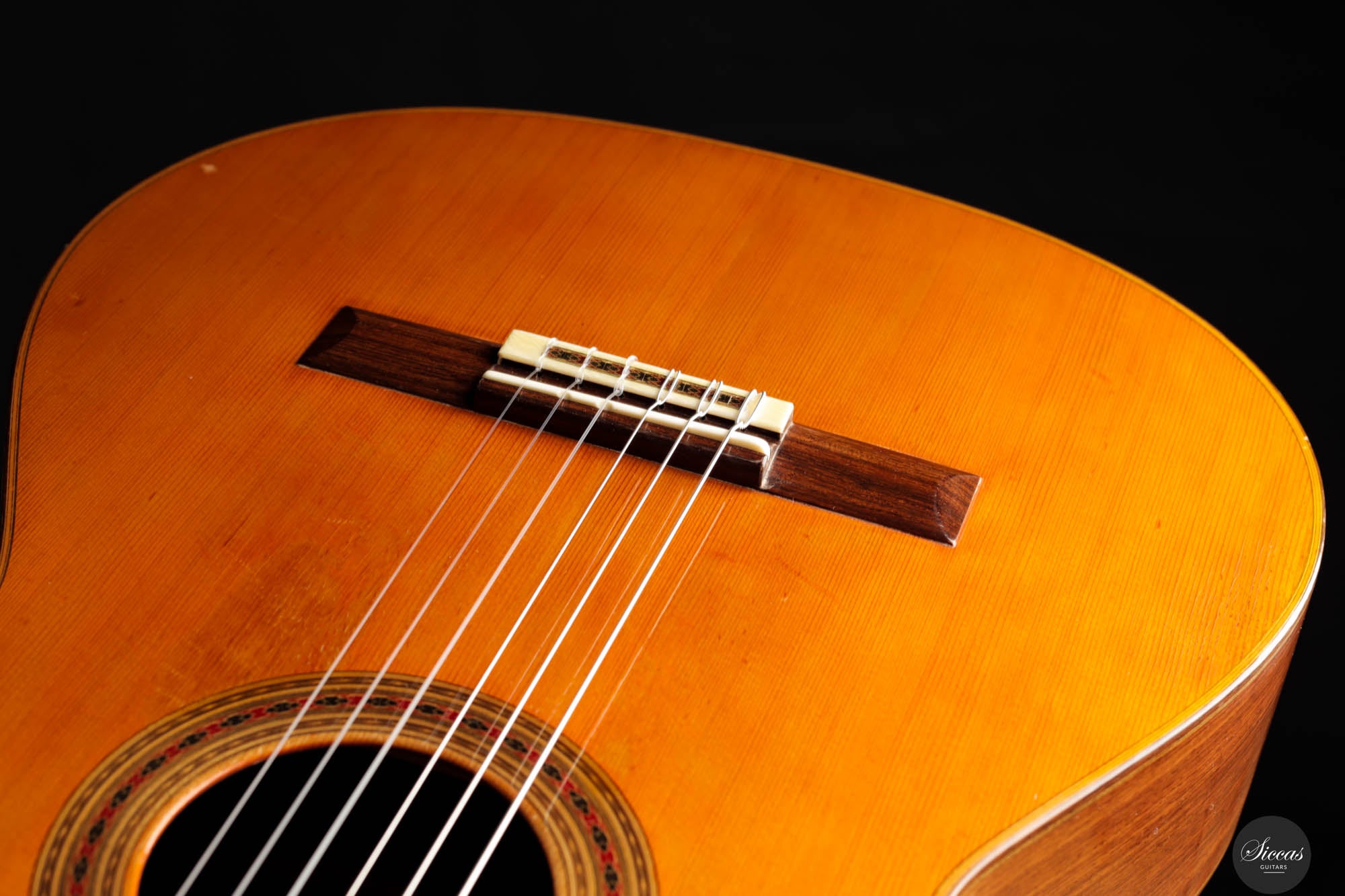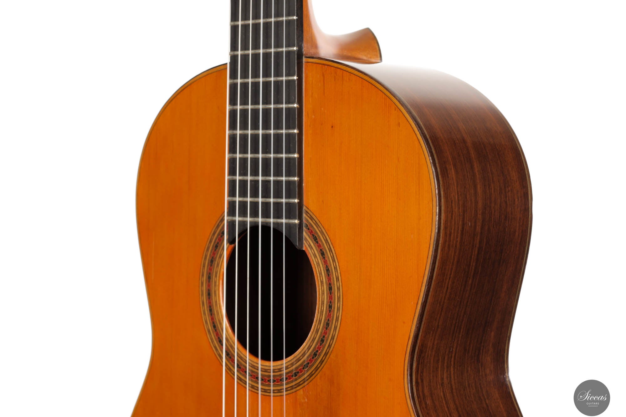 The aesthetic and acoustic beauty of this guitar is further elevated by its Indian rosewood back, a material renowned for its visual and tonal richness. The sides, doubled with mahogany, enhance the guitar's sound projection and resonance, contributing to its full-bodied character. The condition of this guitar is exemplary, with its original integrity preserved, barring several finishing retouch. It remains free from cracks or repairs. Owning the 1994 Daniel Friederich “Concert Model” No. 725 is not just about possessing a high-caliber guitar; it's about embracing a piece of history from one of the most revered guitar makers of our time. This instrument is not merely an object of beauty and sound; it is a legacy, a treasure for any musician or collector who appreciates the artistry and history embedded within the world of classical guitars.