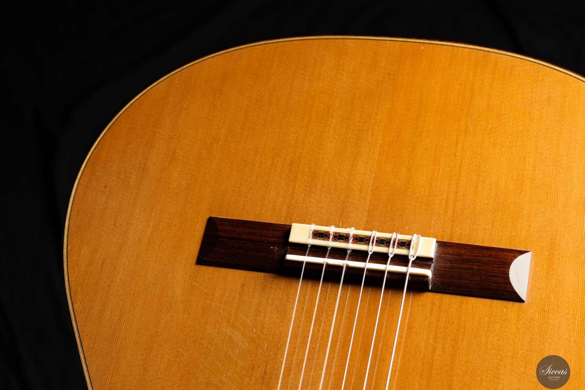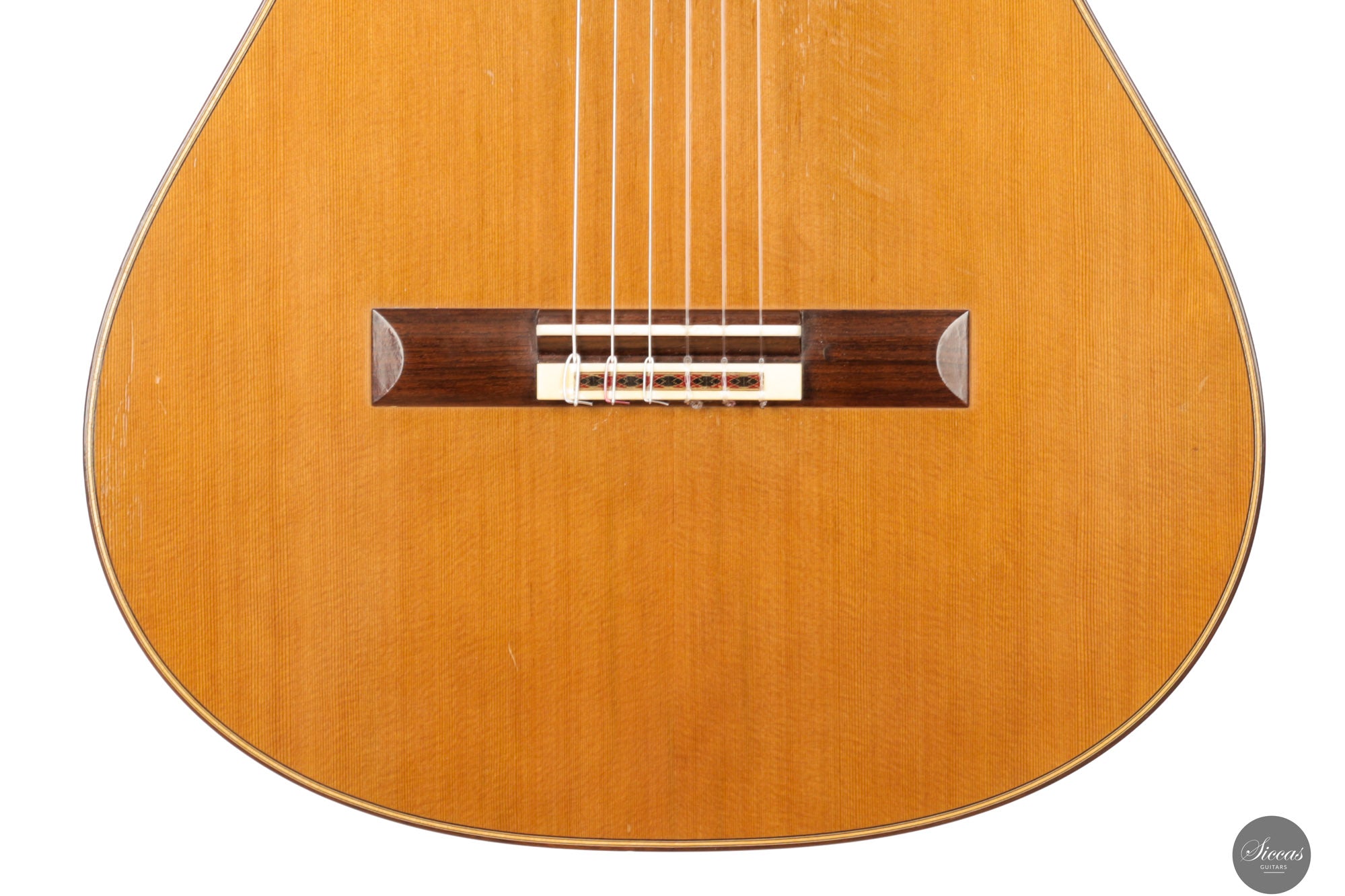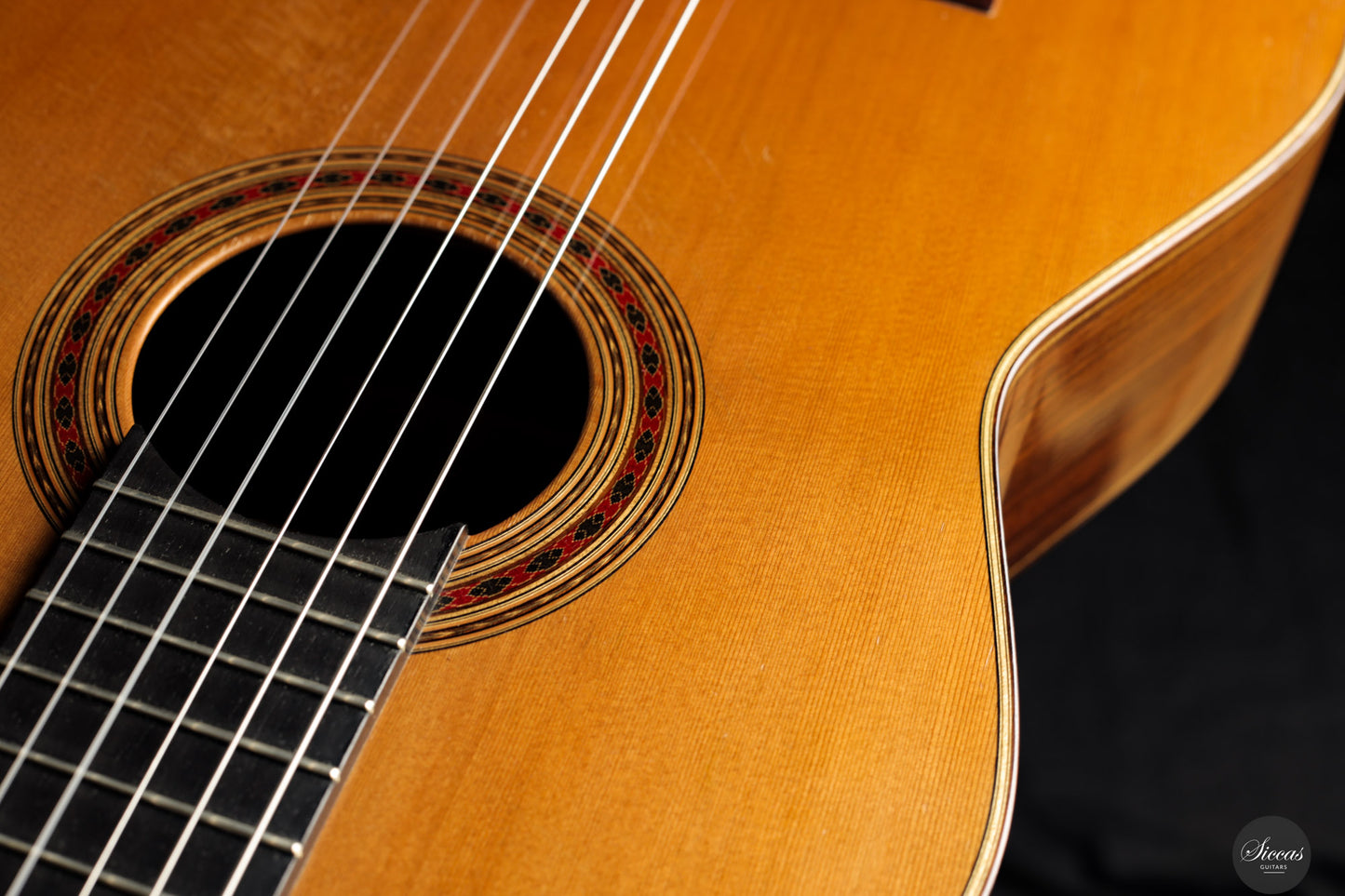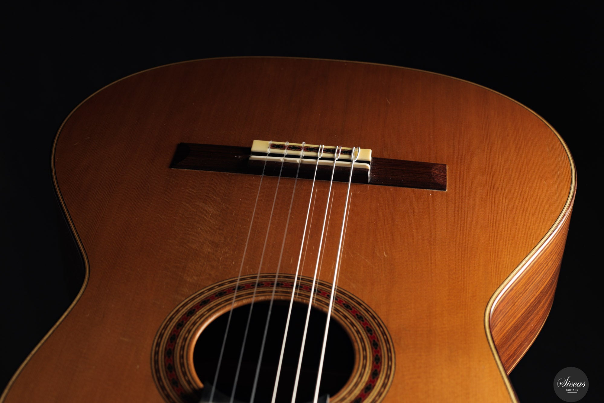 This guitar is in excellent condition and has been well maintained by its original owner. It exhibits normal playing marks from professional use. Three extremely fine hairline cracks beneath the bridge have been professionally glued without the need for reinforcements. These are nearly invisible and entirely stable. The instrument comes with a custom-made, high‑quality Accord case.Regular care extends the life of the instrument