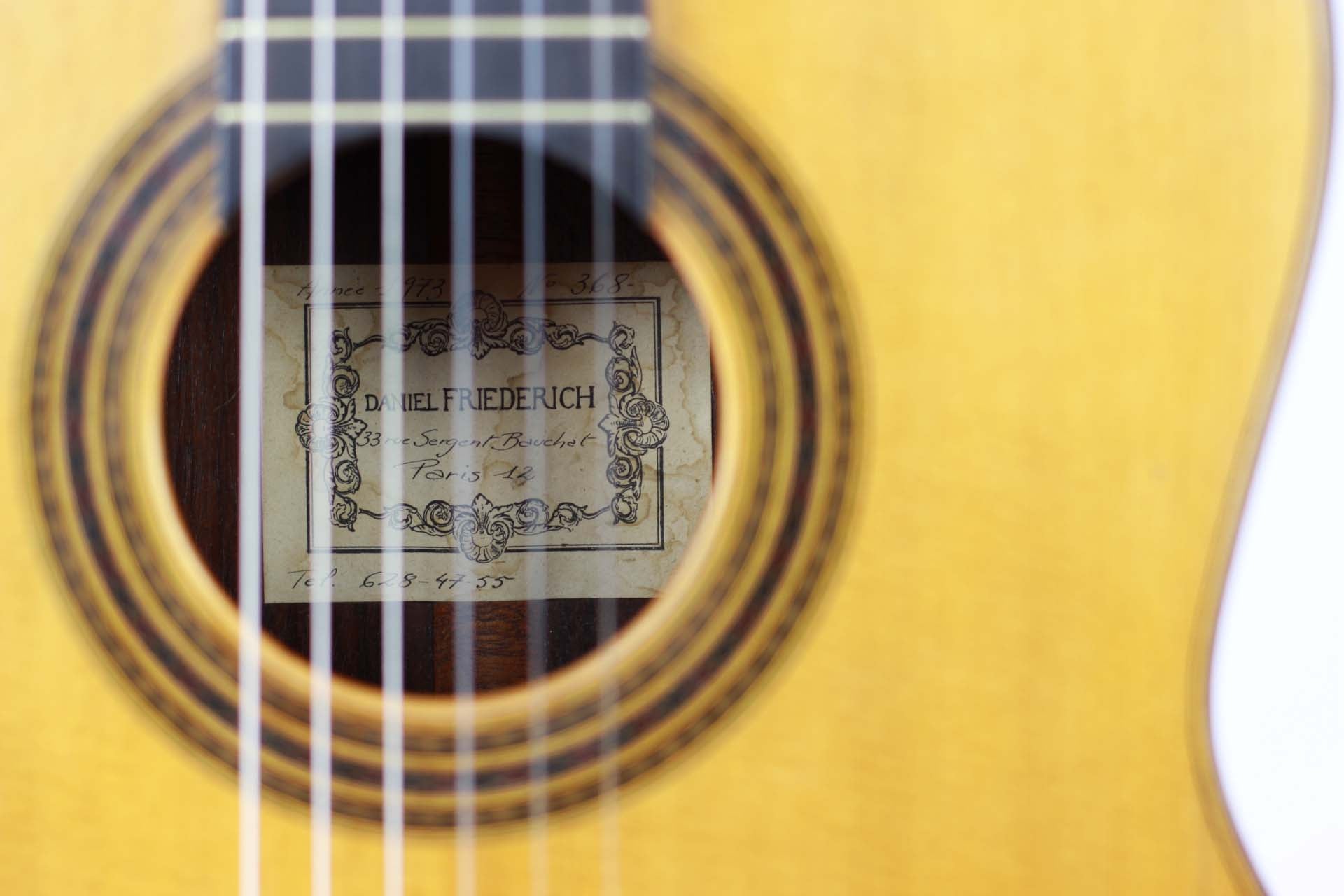 Daniel Friederich was born on January 16th in 1932. At the age of 23 years he built his first instrument (a copy of a Simplicio), because he wanted to learn to play the guitar. His guitar teacher Christian Aubin and the painter and guitar builder Robert Bouchet had a great influence on his work and Friederich developed their ideas further. For decades now, Friederich has been one of the world's most important luthiers and his guitars are played all over the world.