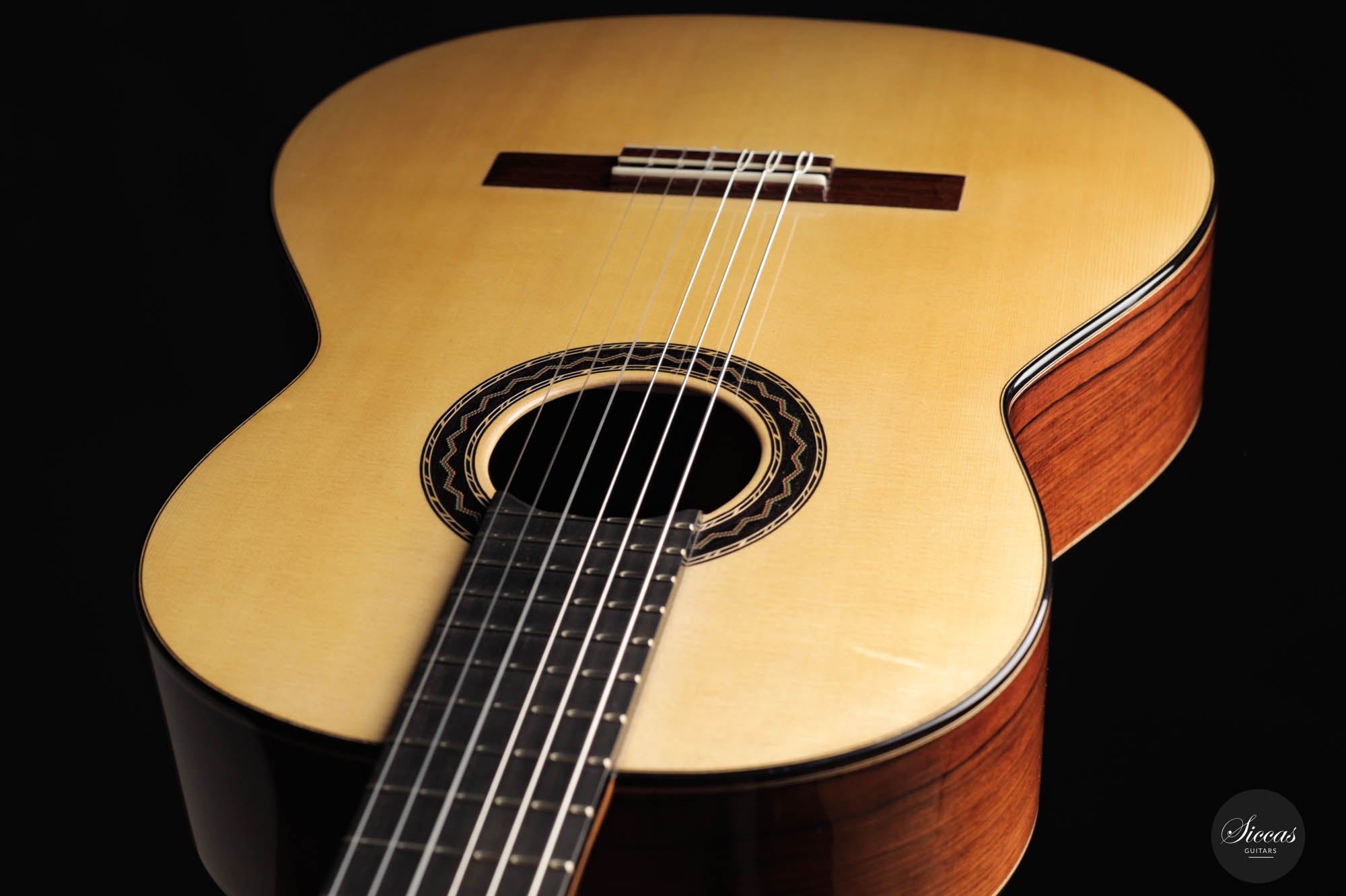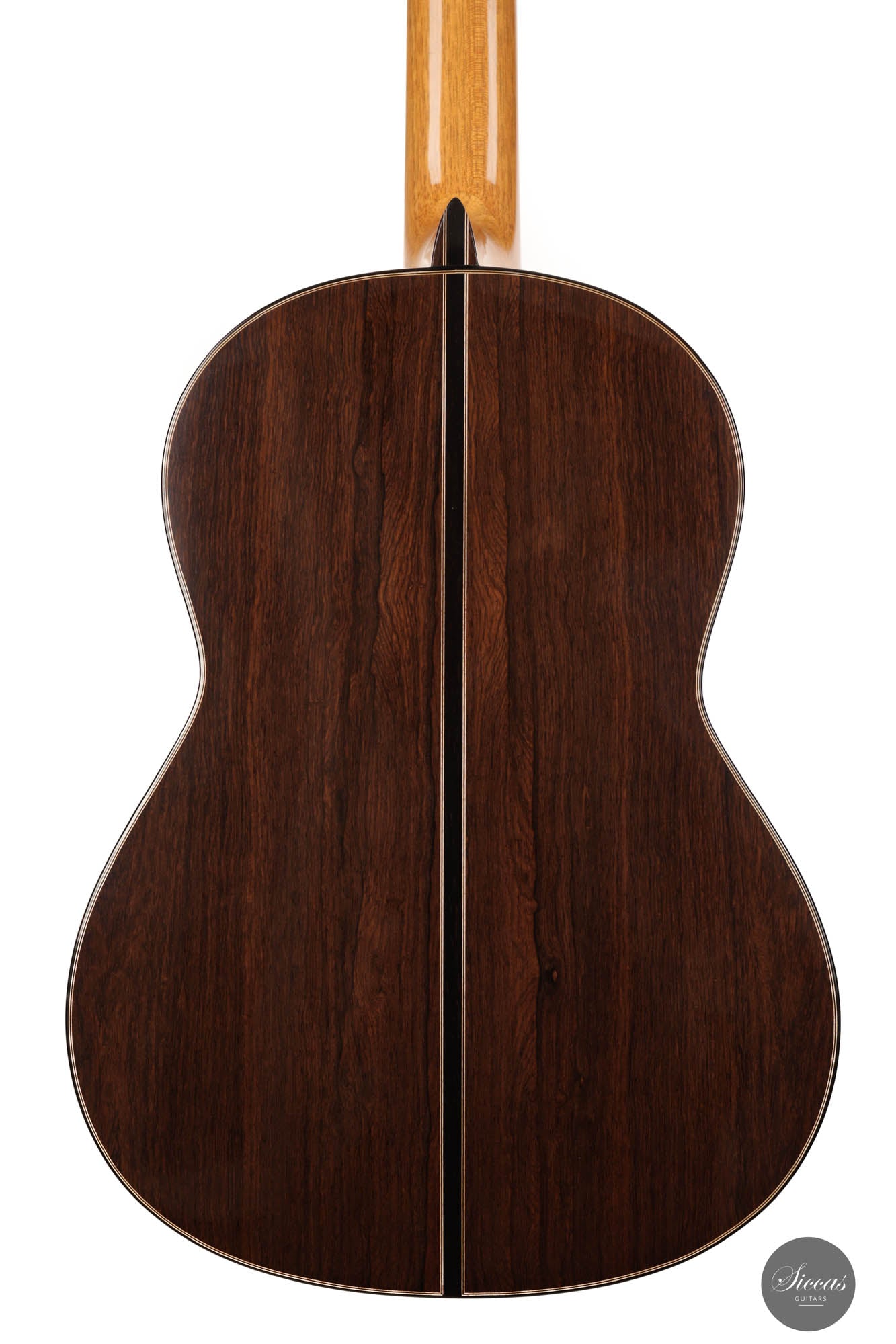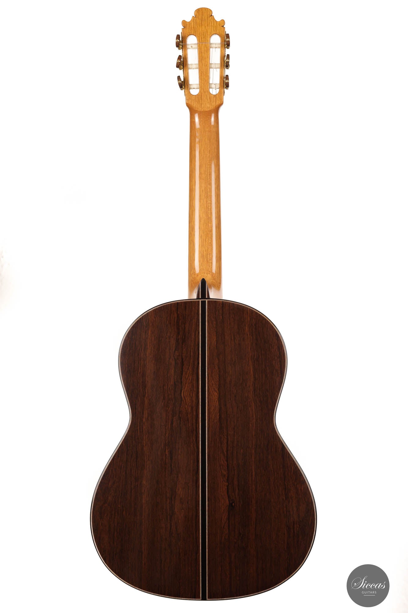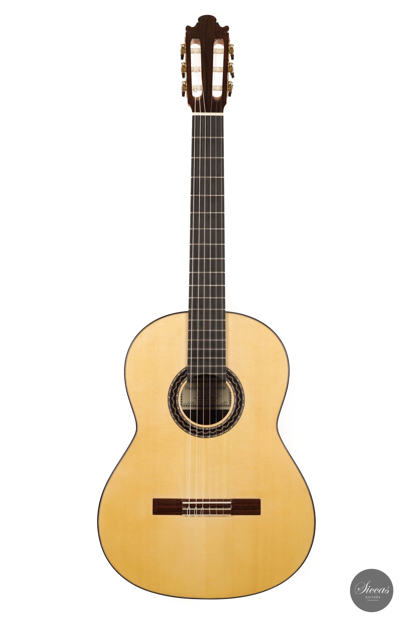 This brand-new guitar was handcrafted with meticulous attention to detail. This exquisite instrument boasts a spruce soundboard that produces crystal-clear yet sweet trebles and dark, crisp bass. The stunning Madagascar rosewood body is as visually striking as it is sonically impressive, adding a touch of elegance to any performance. The 2023 "Premium" guitar is versatile, offering a perfect balance between its voices for a wide range of musical styles. The exceptional tonal qualities will make any piece sing with life and character. Crafted with the finest materials, this “Premium” model has been thoughtfully considered, from the exquisite soundboard to the carefully carved bracing and meticulous finish. This guitar is a work of art that is both a joy to play and a pleasure to behold.