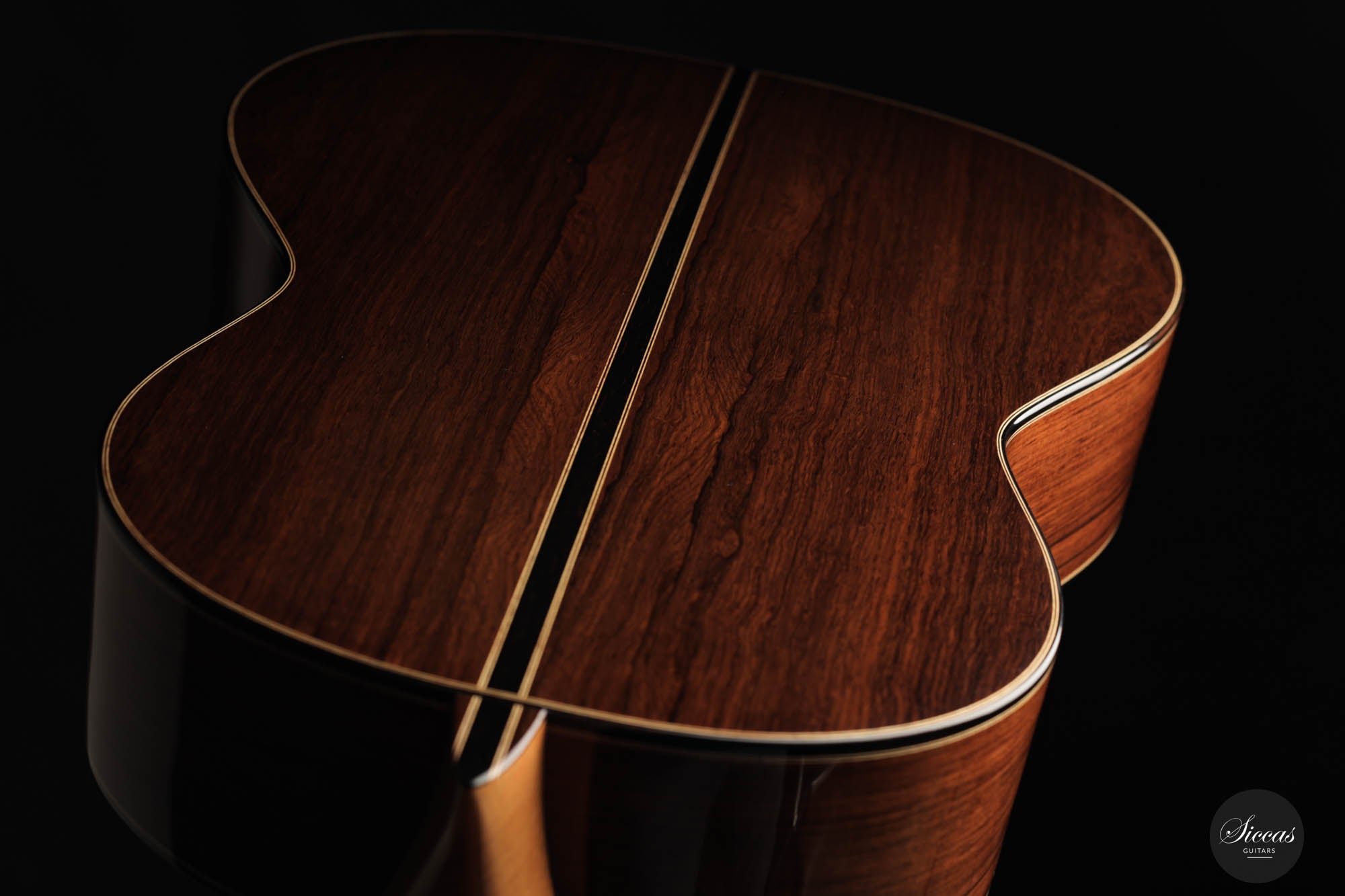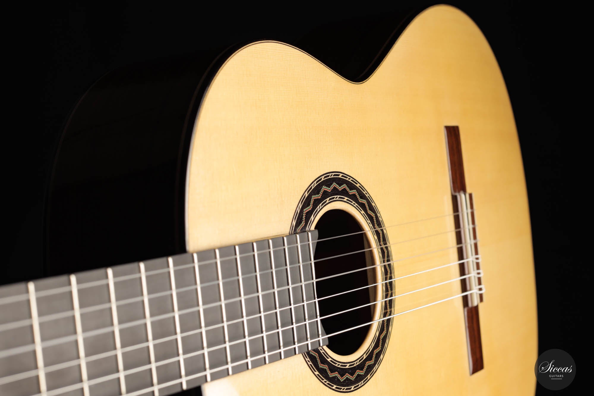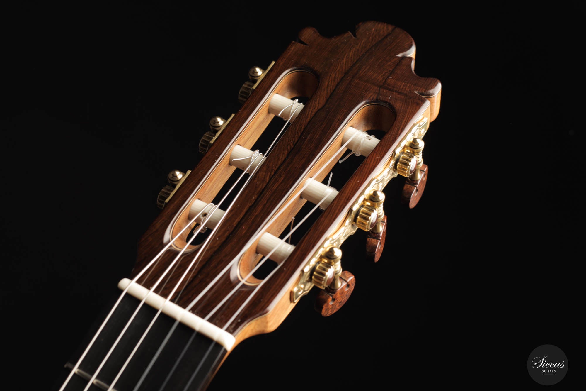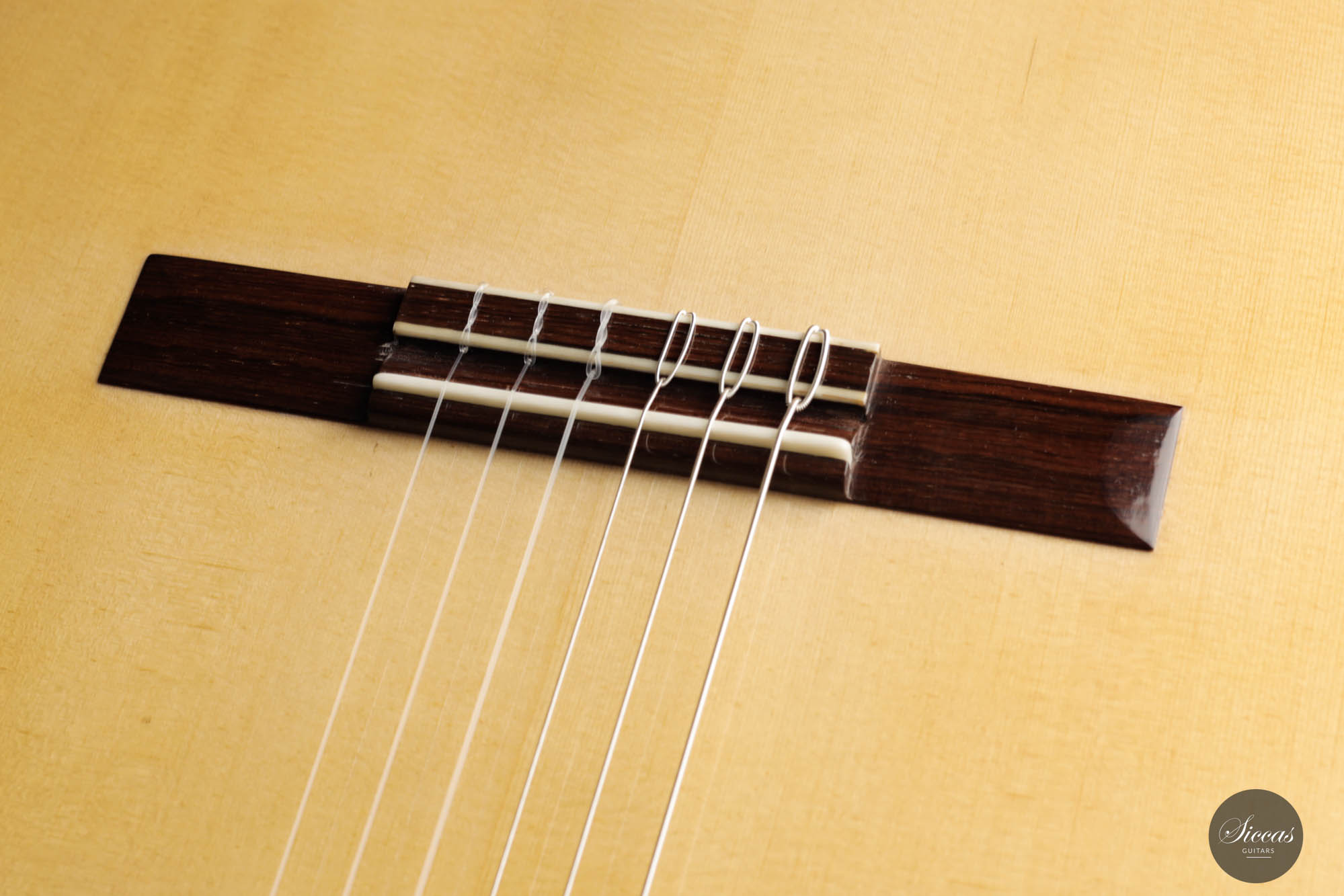 This brand-new guitar was handcrafted with meticulous attention to detail. This exquisite instrument boasts a spruce soundboard that produces crystal-clear yet sweet trebles and dark, crisp bass. The stunning Madagascar rosewood body is as visually striking as it is sonically impressive, adding a touch of elegance to any performance. The 2023 "Premium" guitar is versatile, offering a perfect balance between its voices for a wide range of musical styles. The exceptional tonal qualities will make any piece sing with life and character. Crafted with the finest materials, this “Premium” model has been thoughtfully considered, from the exquisite soundboard to the carefully carved bracing and meticulous finish. This guitar is a work of art that is both a joy to play and a pleasure to behold.
