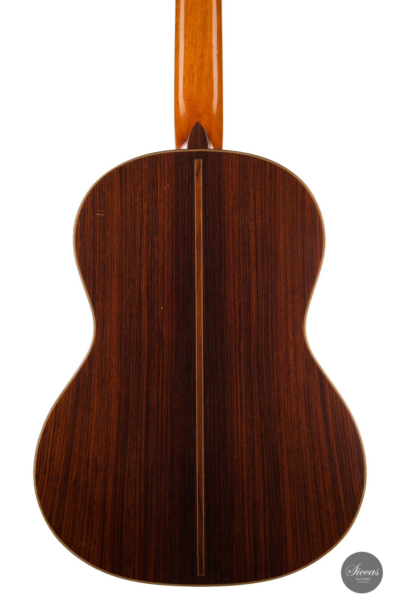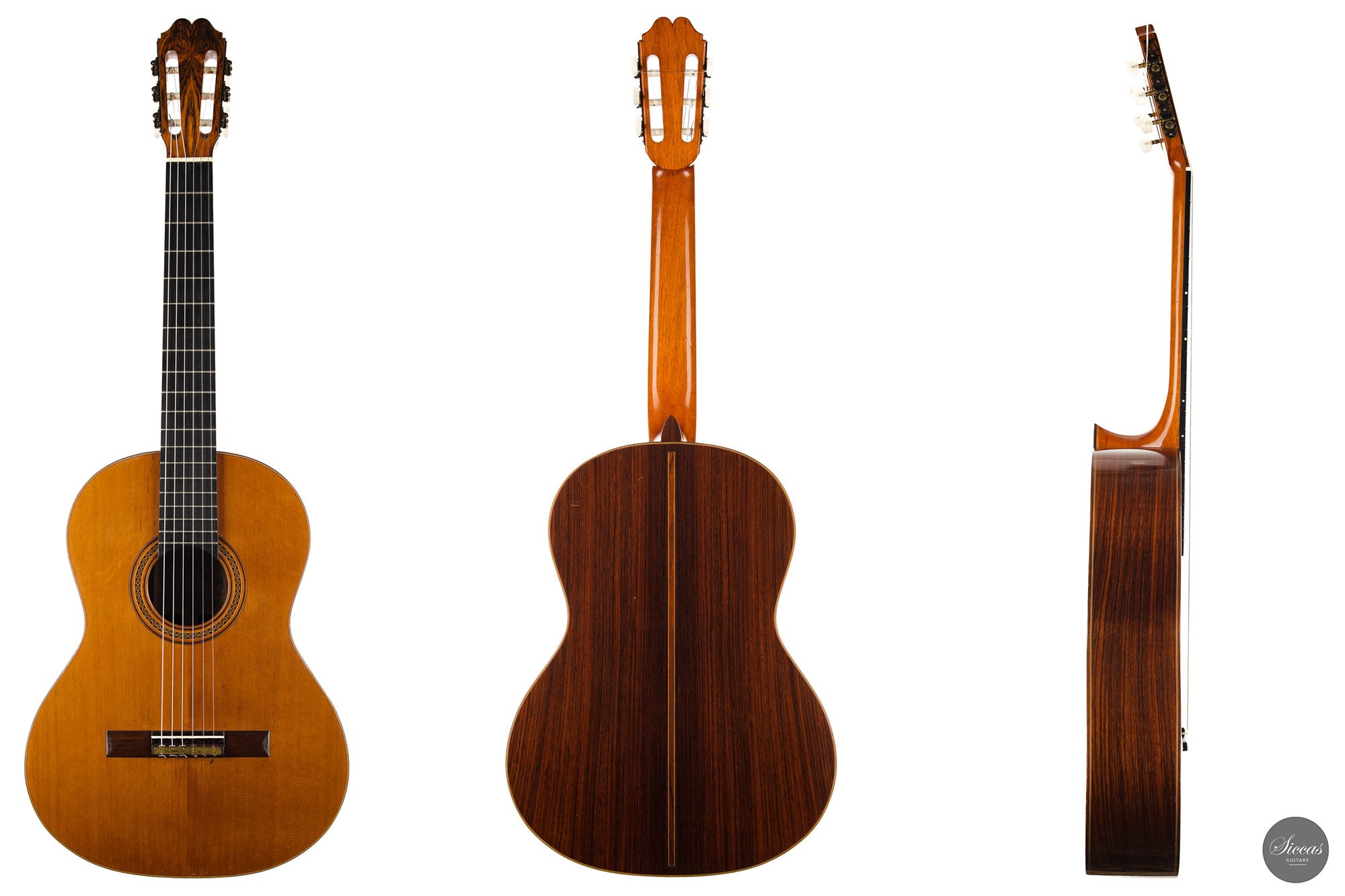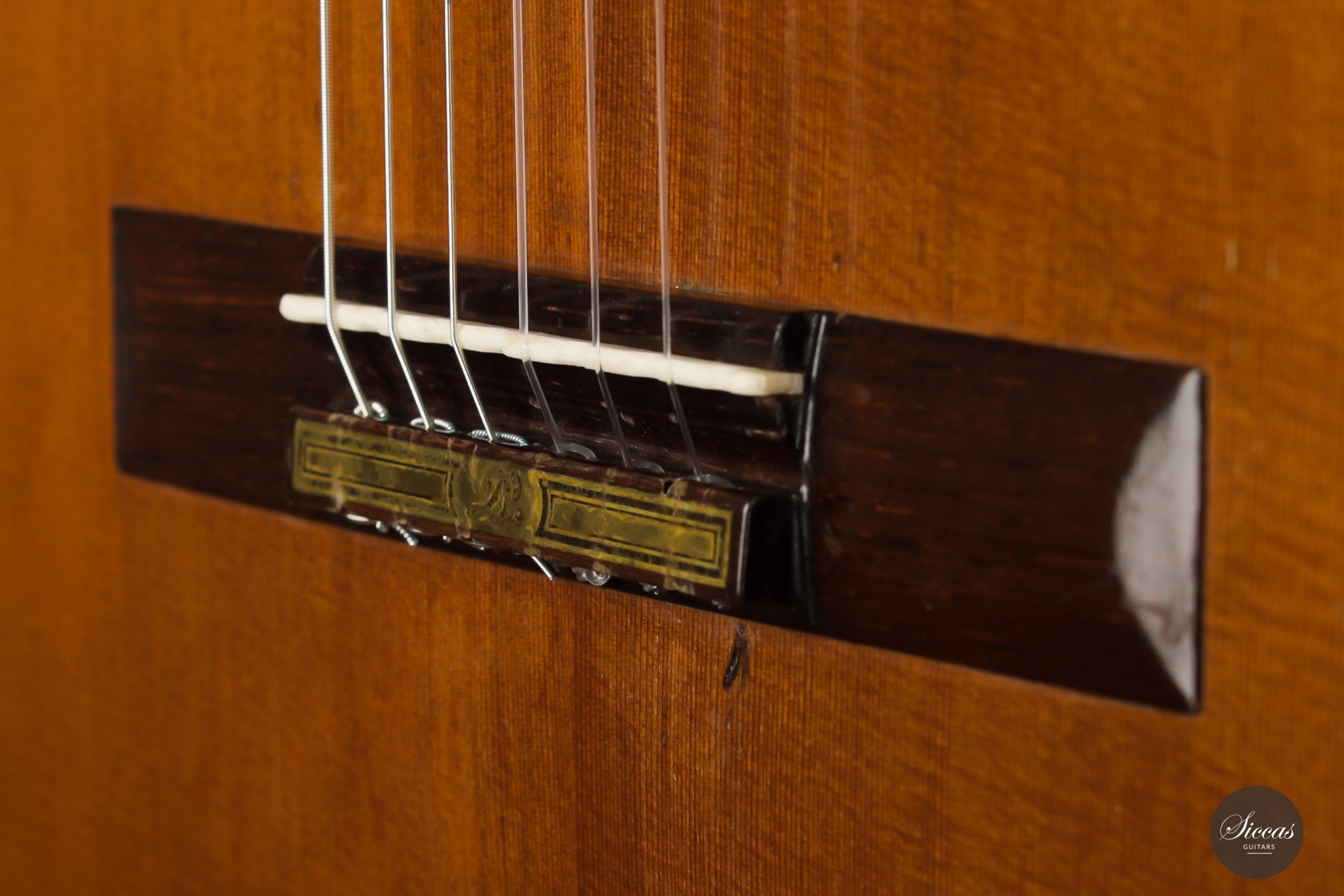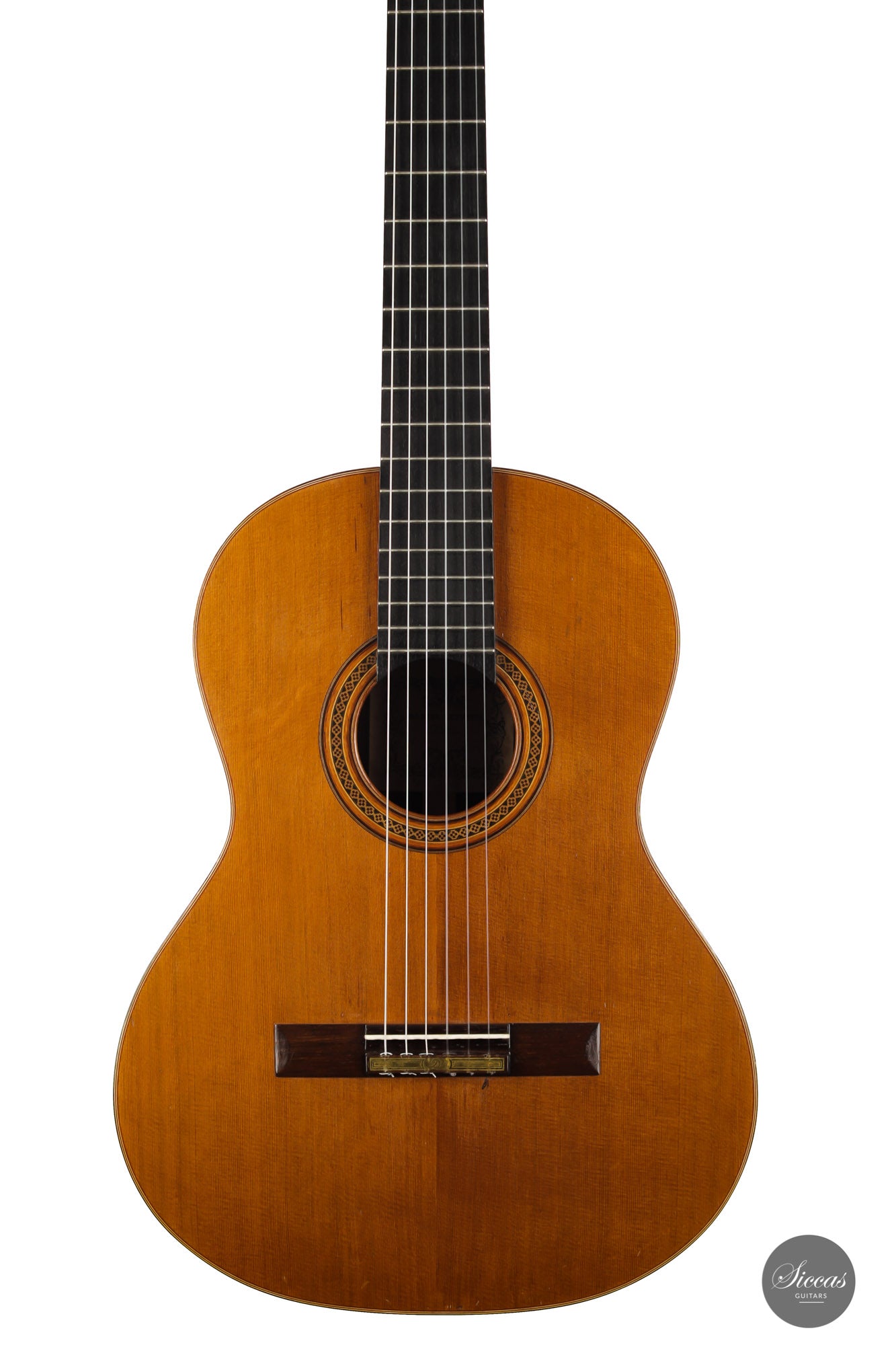 Built in 1986 and bearing the number 400, this magnificent instrument is a perfect example of Daniel Lesueur's guitars at their finest. Undoubtedly inspired in its bracing by Daniel Friederich, we find the same character in the timbre and balance of this guitar. The power and warmth of the tones is astonishing, and the sound color possibilities are inspiring. This guitar is in very good condition with no cracks and was refinished a few years ago. With its exciting sound, this guitar takes us back to Paris and the golden age of French-built cedar top guitars with a refined, elegant, and expressive character.
