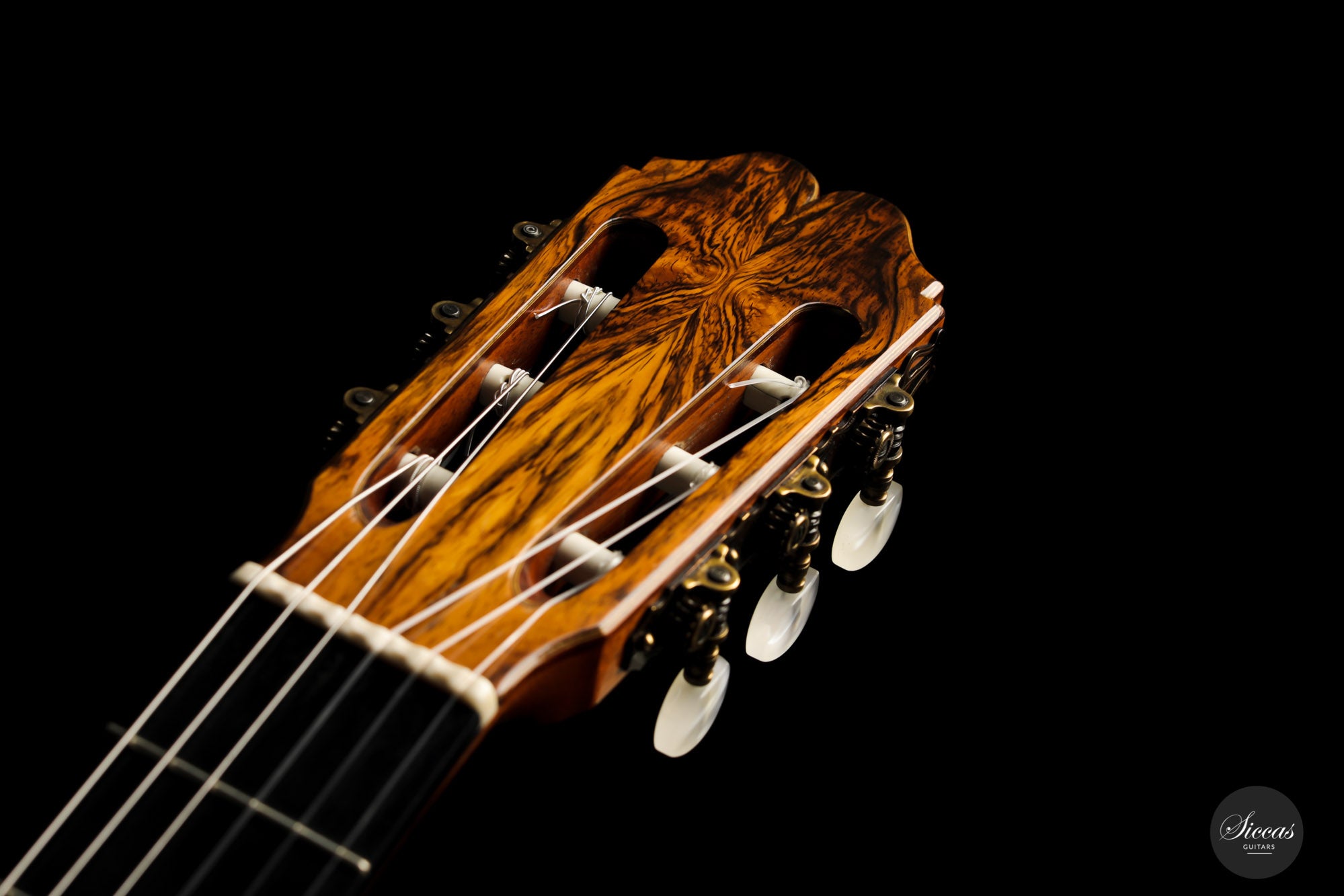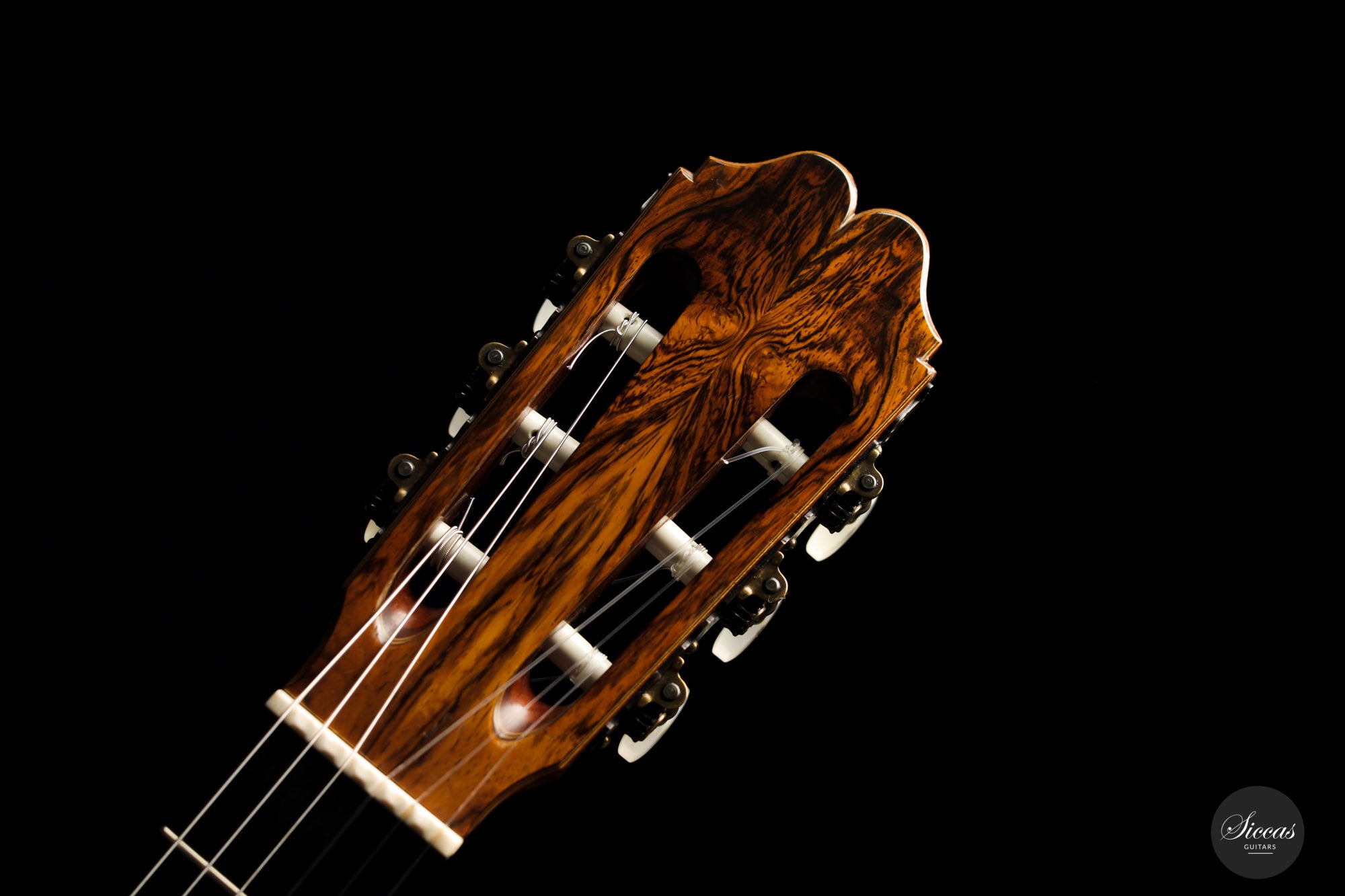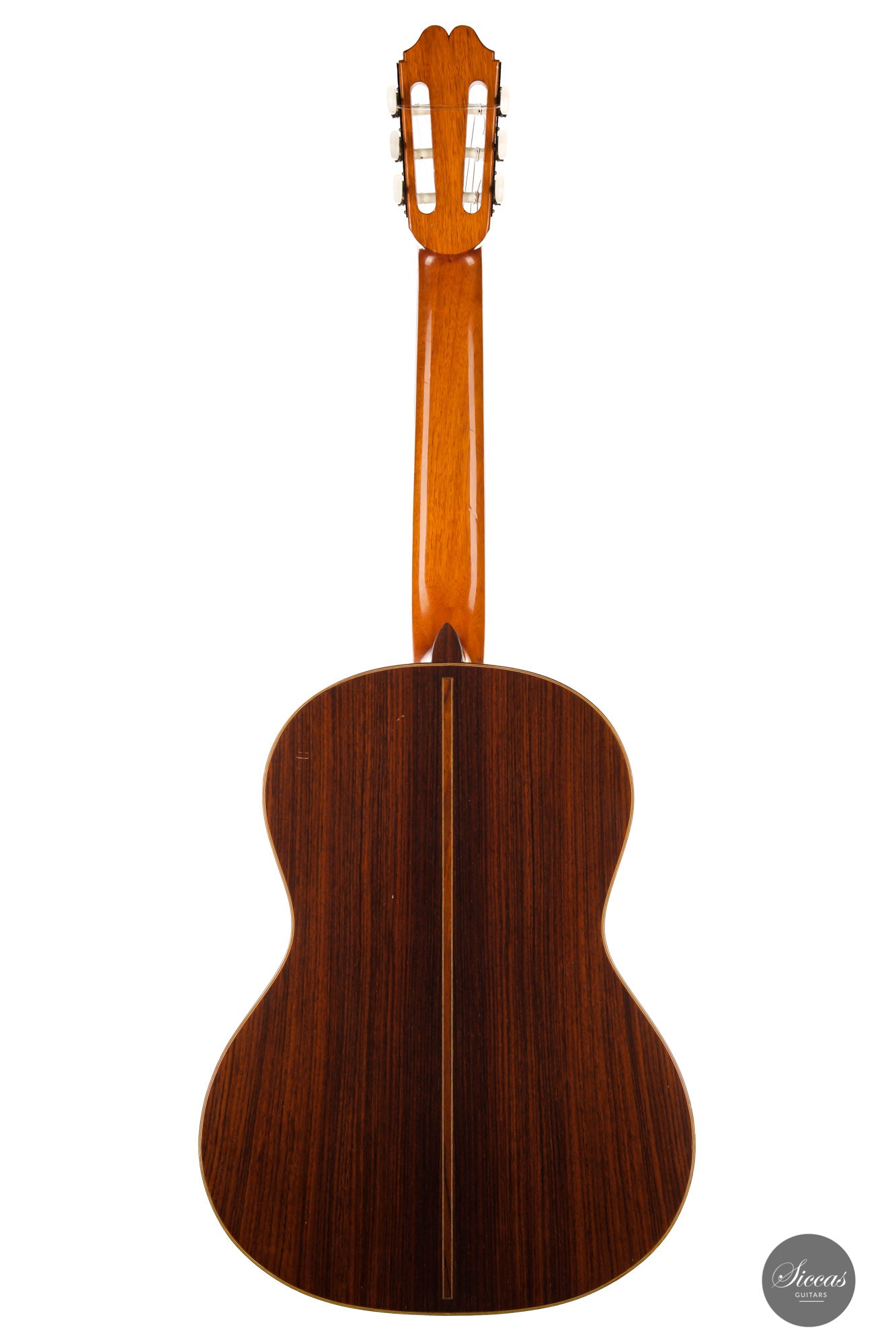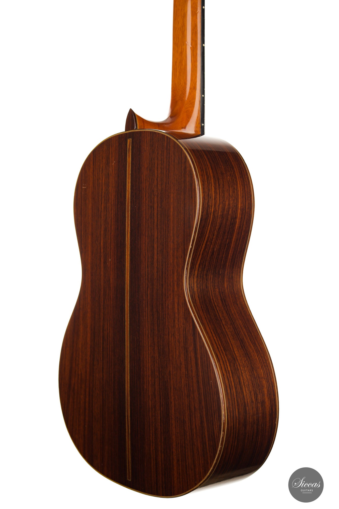 Built in 1986 and bearing the number 400, this magnificent instrument is a perfect example of Daniel Lesueur's guitars at their finest. Undoubtedly inspired in its bracing by Daniel Friederich, we find the same character in the timbre and balance of this guitar. The power and warmth of the tones is astonishing, and the sound color possibilities are inspiring. This guitar is in very good condition with no cracks and was refinished a few years ago. With its exciting sound, this guitar takes us back to Paris and the golden age of French-built cedar top guitars with a refined, elegant, and expressive character.