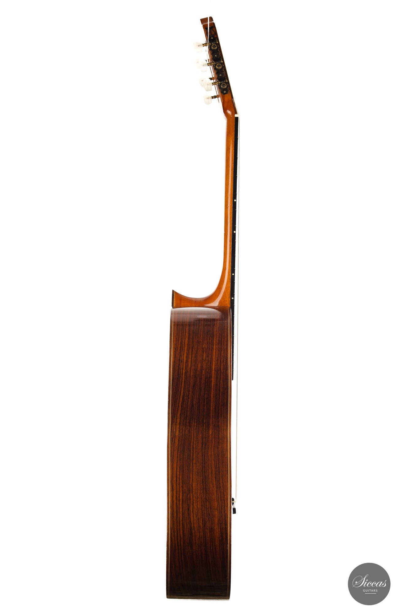 Daniel Lesueur (1933-2021) was a particularly renowned French guitar maker. He was befriended with Daniel Friederich when the latter was still working as a carpenter in Paris and became his apprentice at the age of 39. His guitars quickly gained international interest and many professional guitarists chose his instruments. In the 1980s, his fame was at its peak, and he was awarded the prestigious title of "Meilleur ouvrier de France" (Best Artisan of France). We were saddened to hear of his passing this year and are honored to present this guitar from his heyday to our collection.