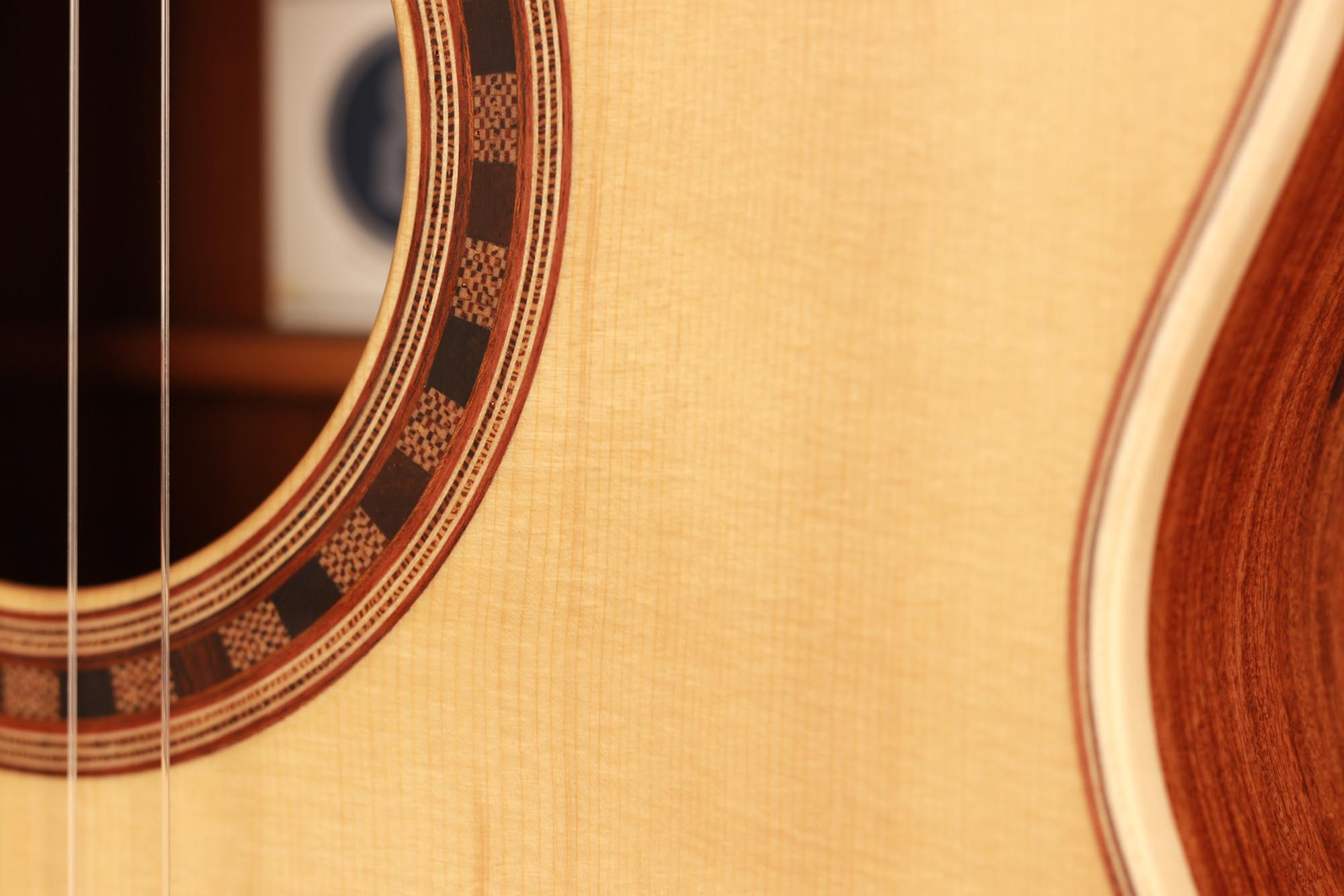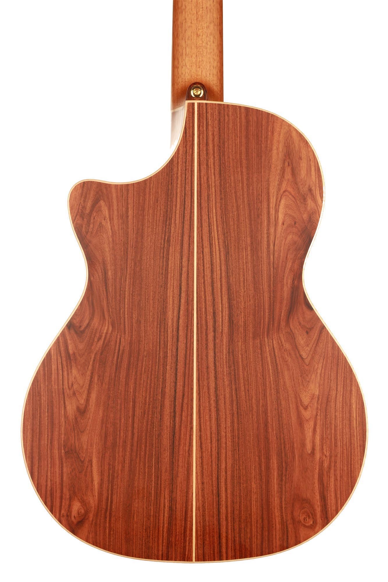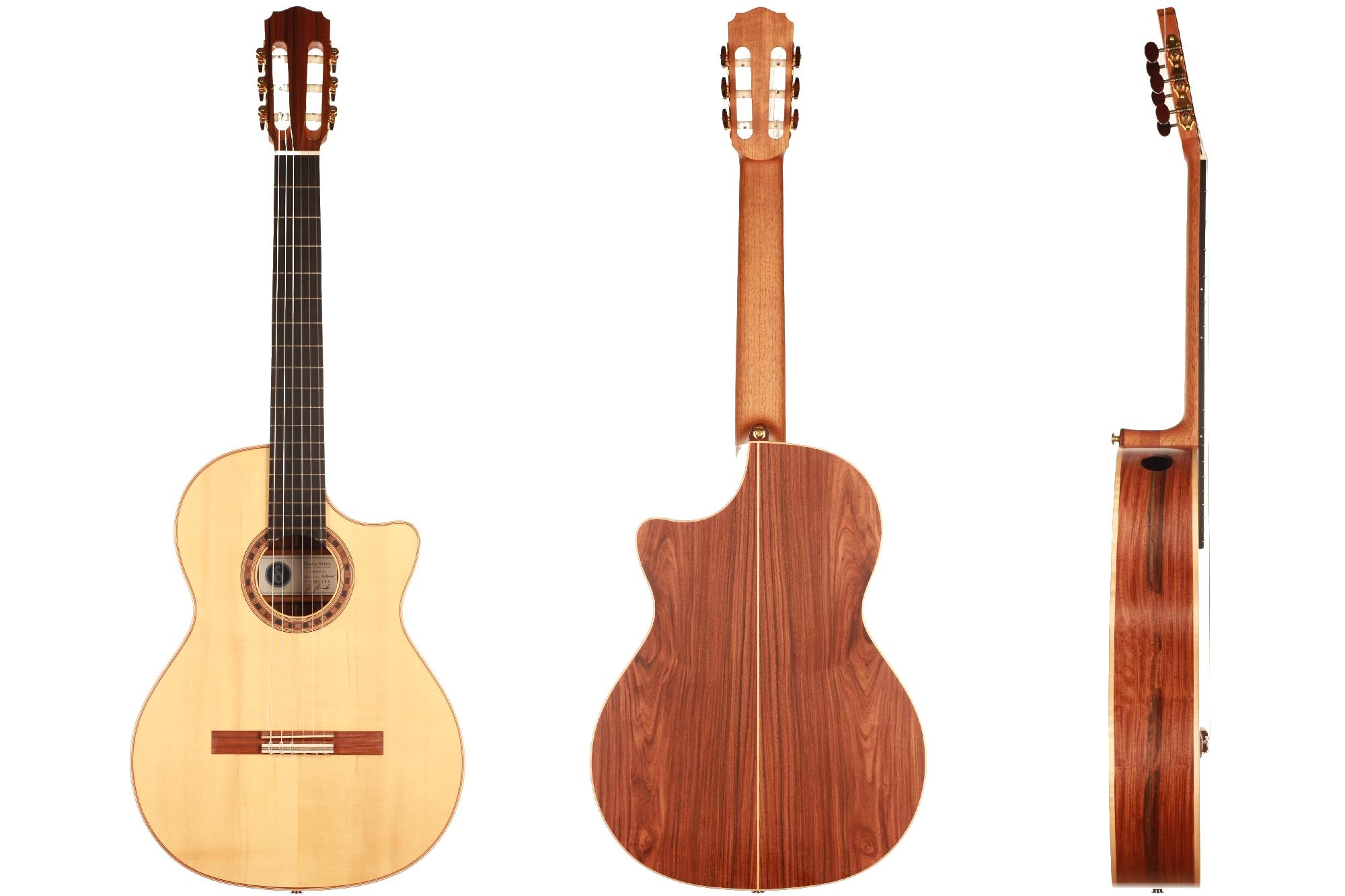 In addition, the guitar has an additional frame sound hole so that the guitarist can hear himself better when playing. The pickup is a high-quality Carlos VIP DM, with coaxial (VIP) transducer and mini-micro, MONO output, 3 controls on the sound hole (master, sound, micro amplification). This versatile model is also CITES-free.